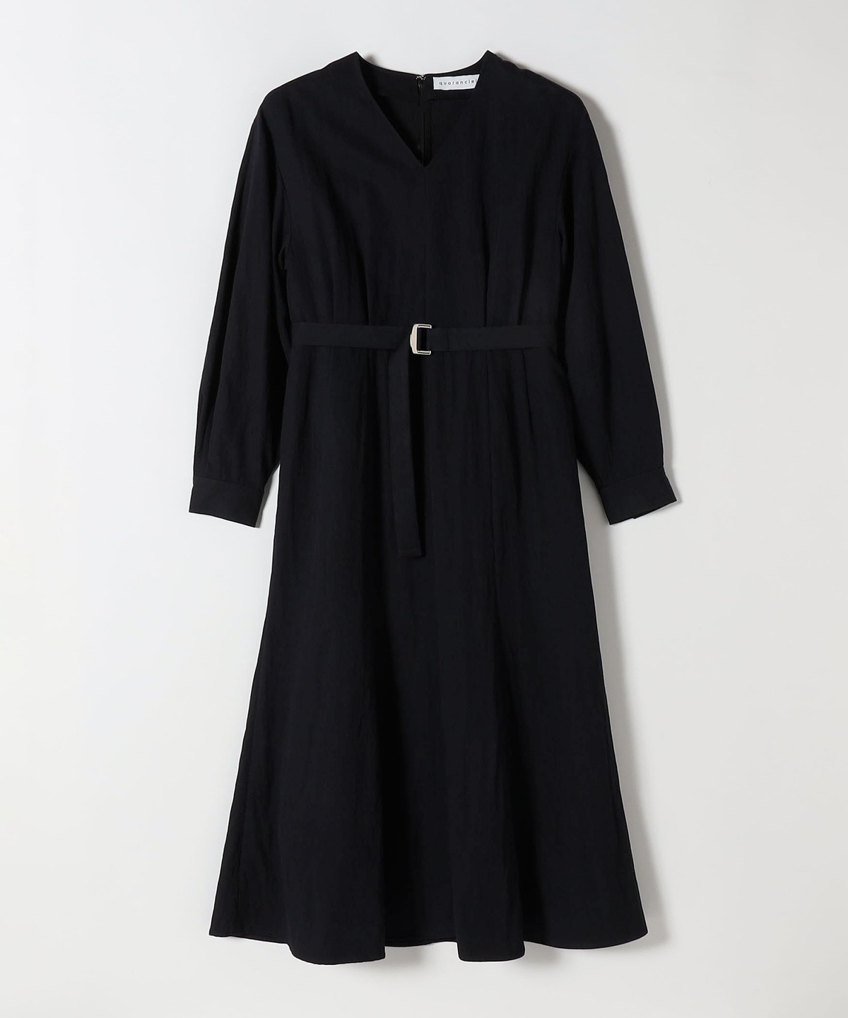 10. 《予約》quaranciel:〈洗濯機可能〉ツイル Vネック ベルト フレア ワンピース