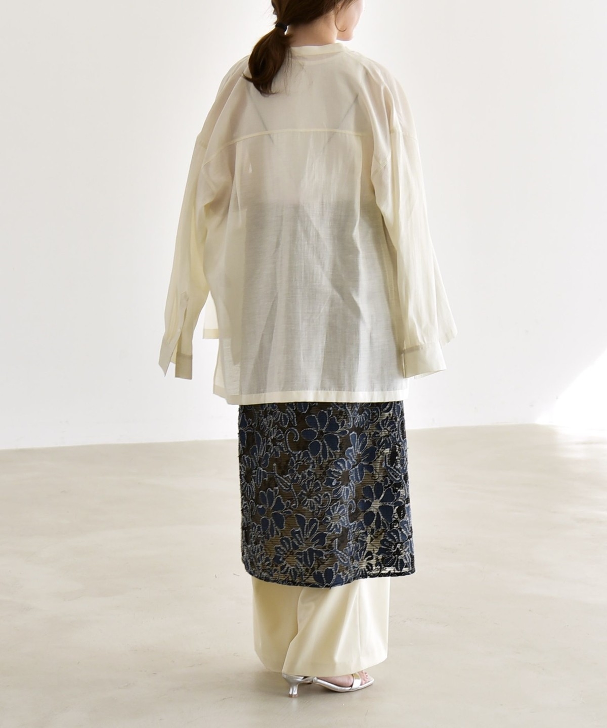 ブラウスやシャツと合わせると、洗練されたモードな印象に。
