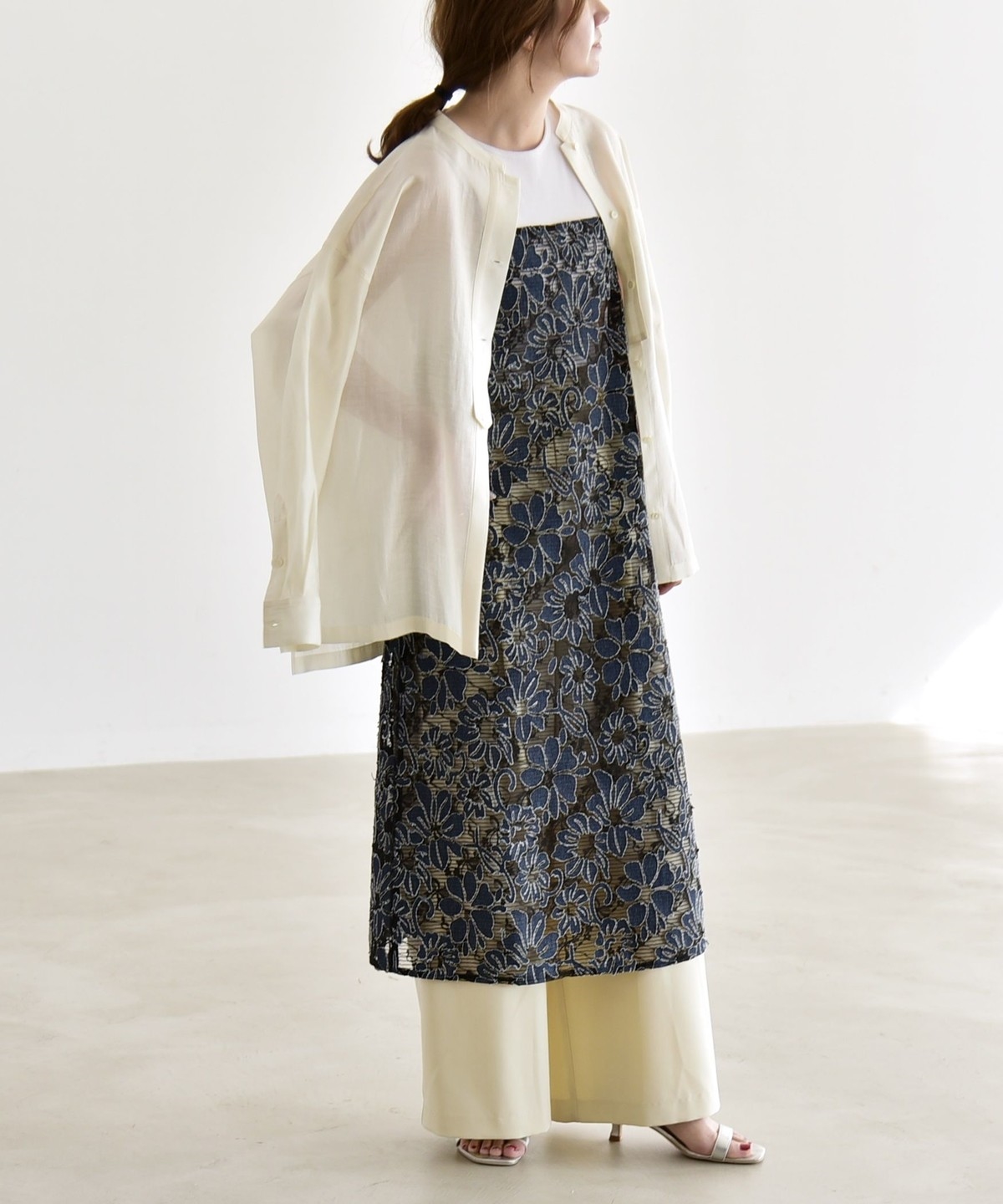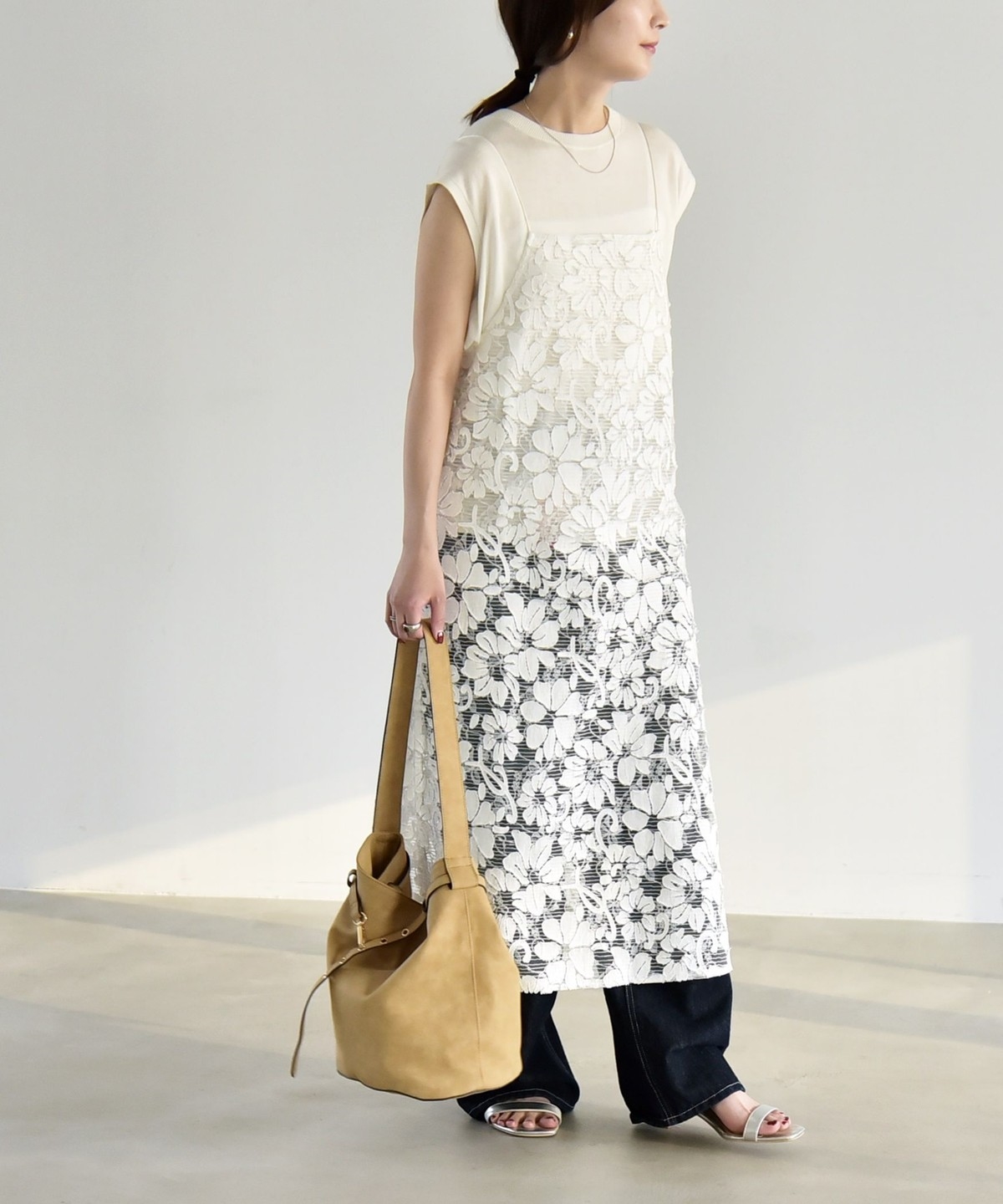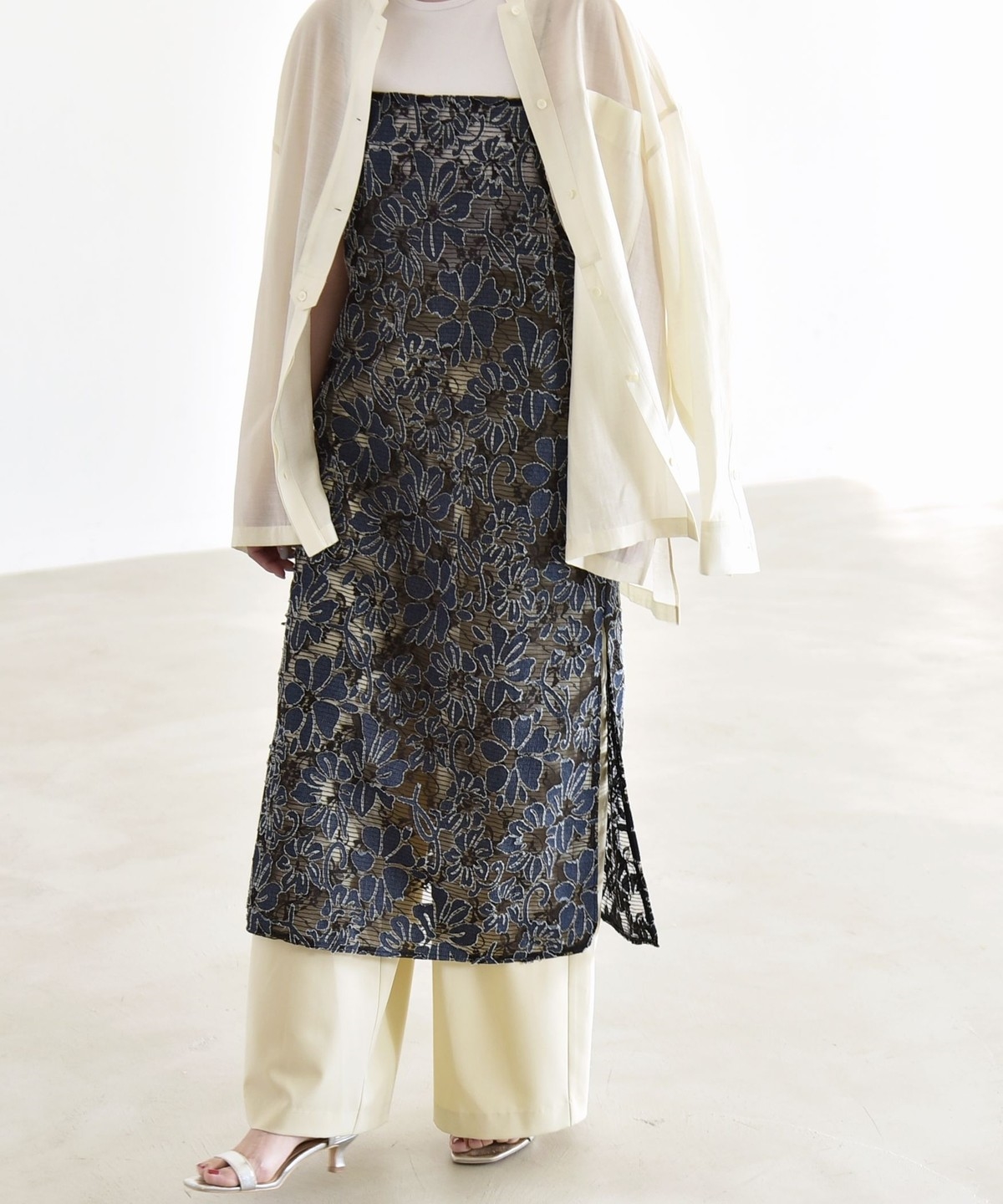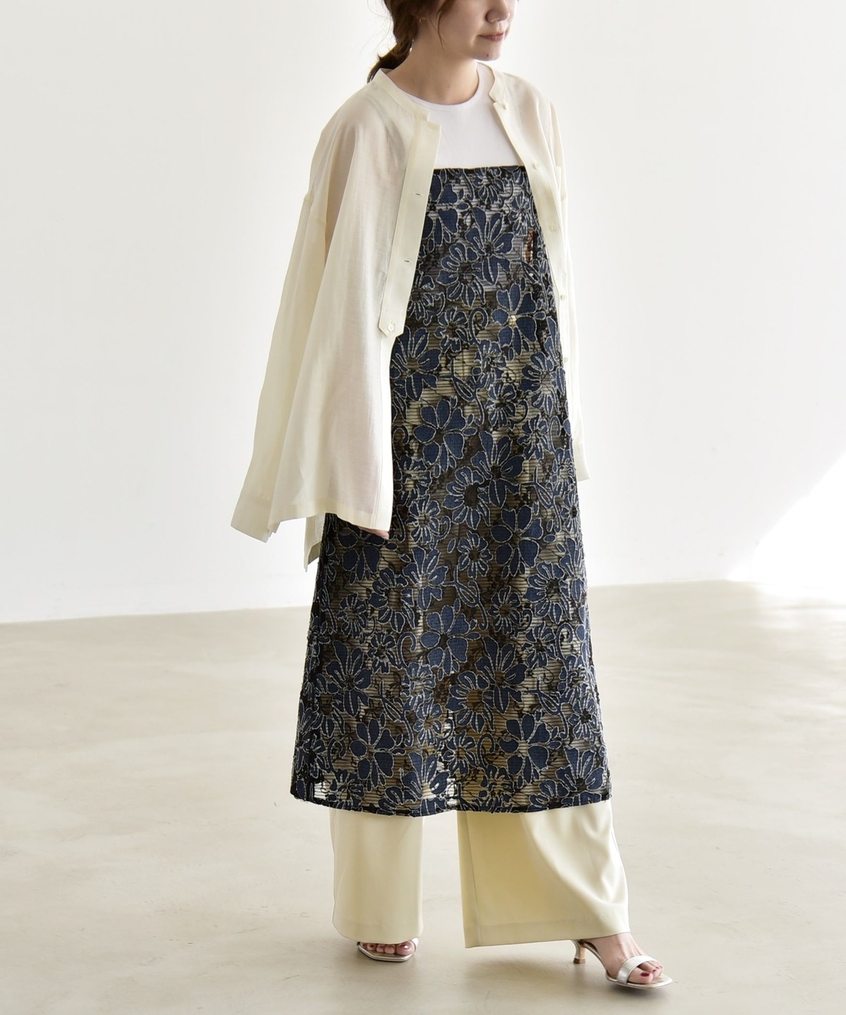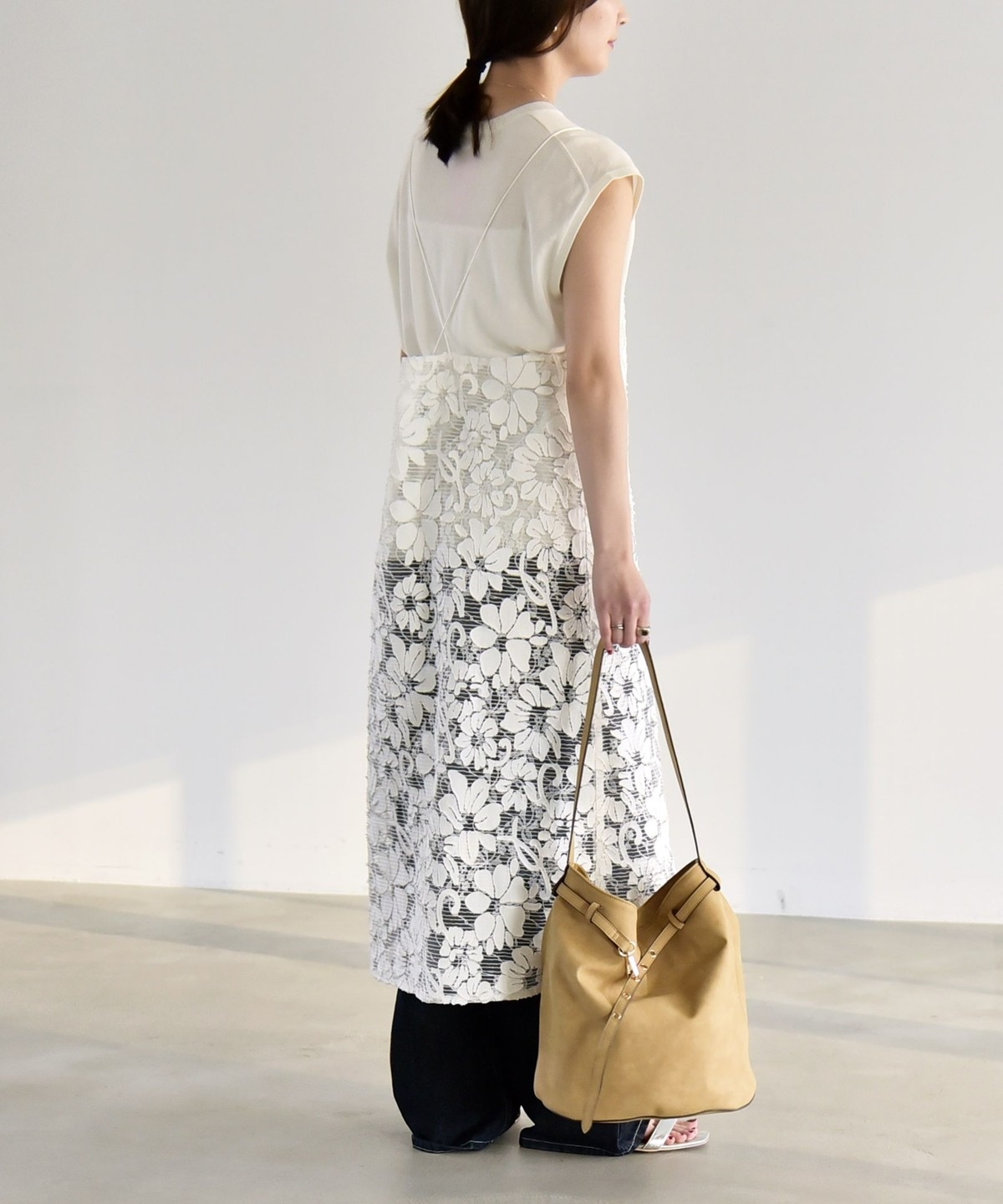 2. 《予約》quaranciel:〈手洗い可能〉デニム フラワー レース キャミ ワンピース オフホワイト
