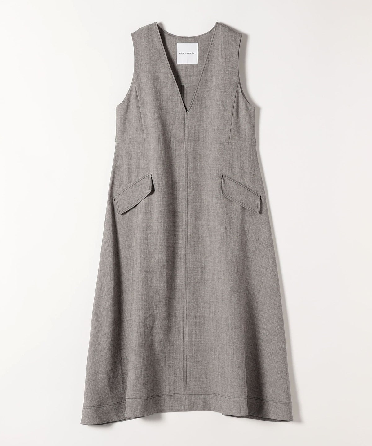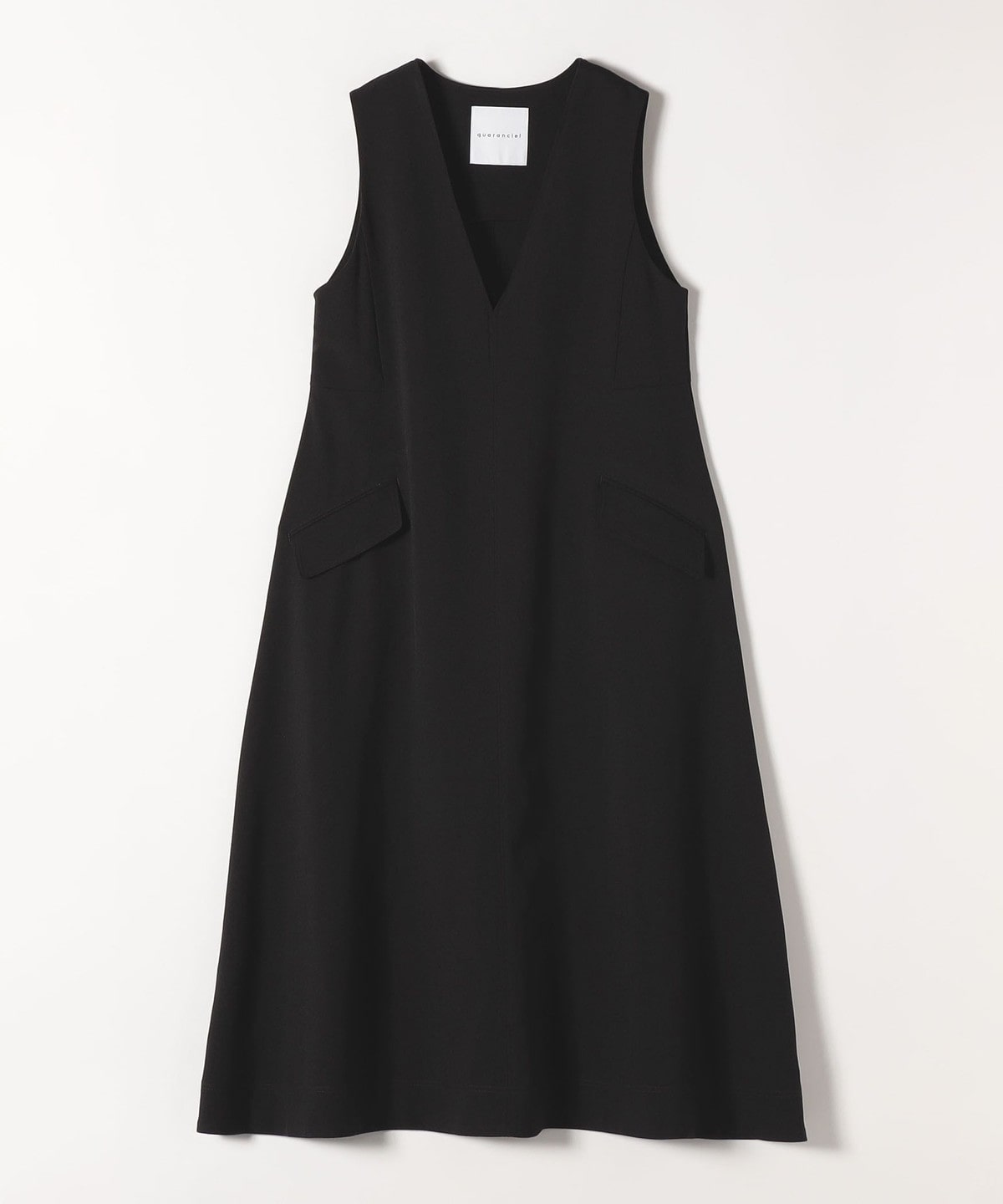 quaranciel:〈洗濯機可能〉ウーステッド ステッチワーク ポケット フレア Vネック ワンピース