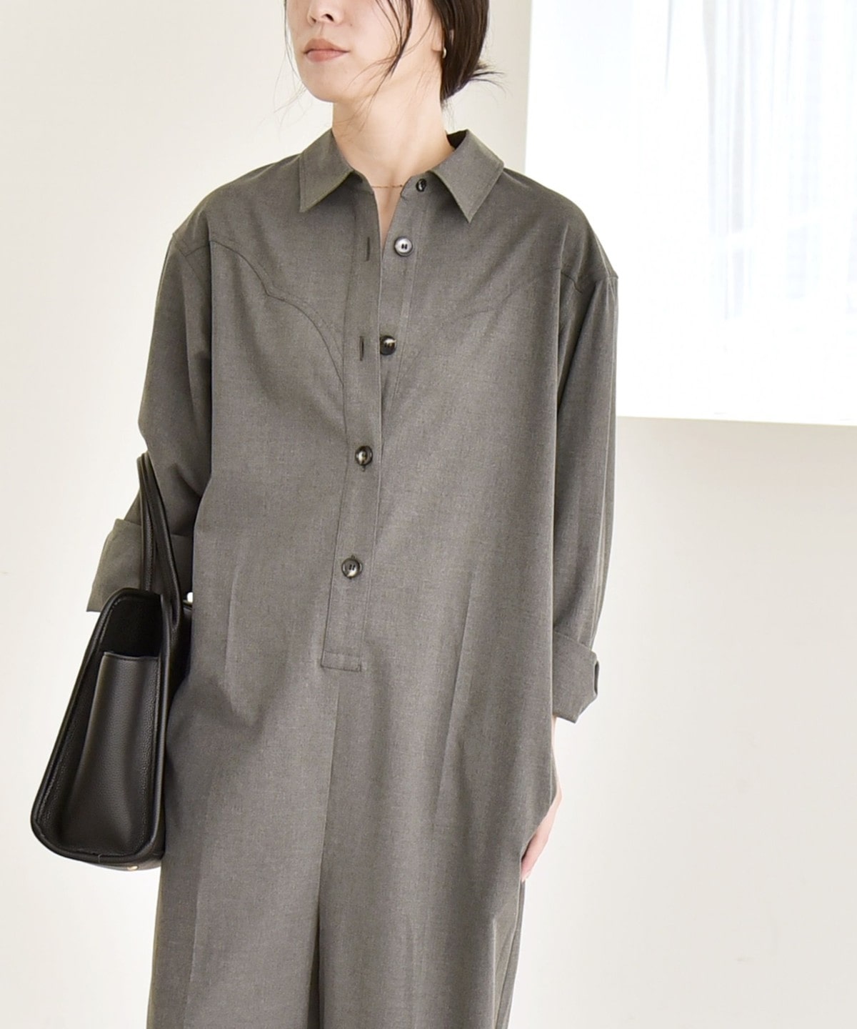 quaranciel:〈洗濯機可能〉レギュラーカラー ジャンプスーツ