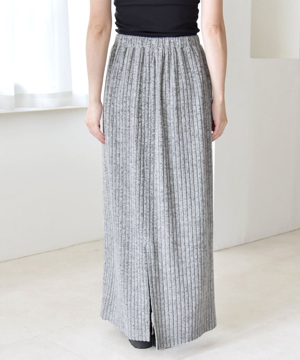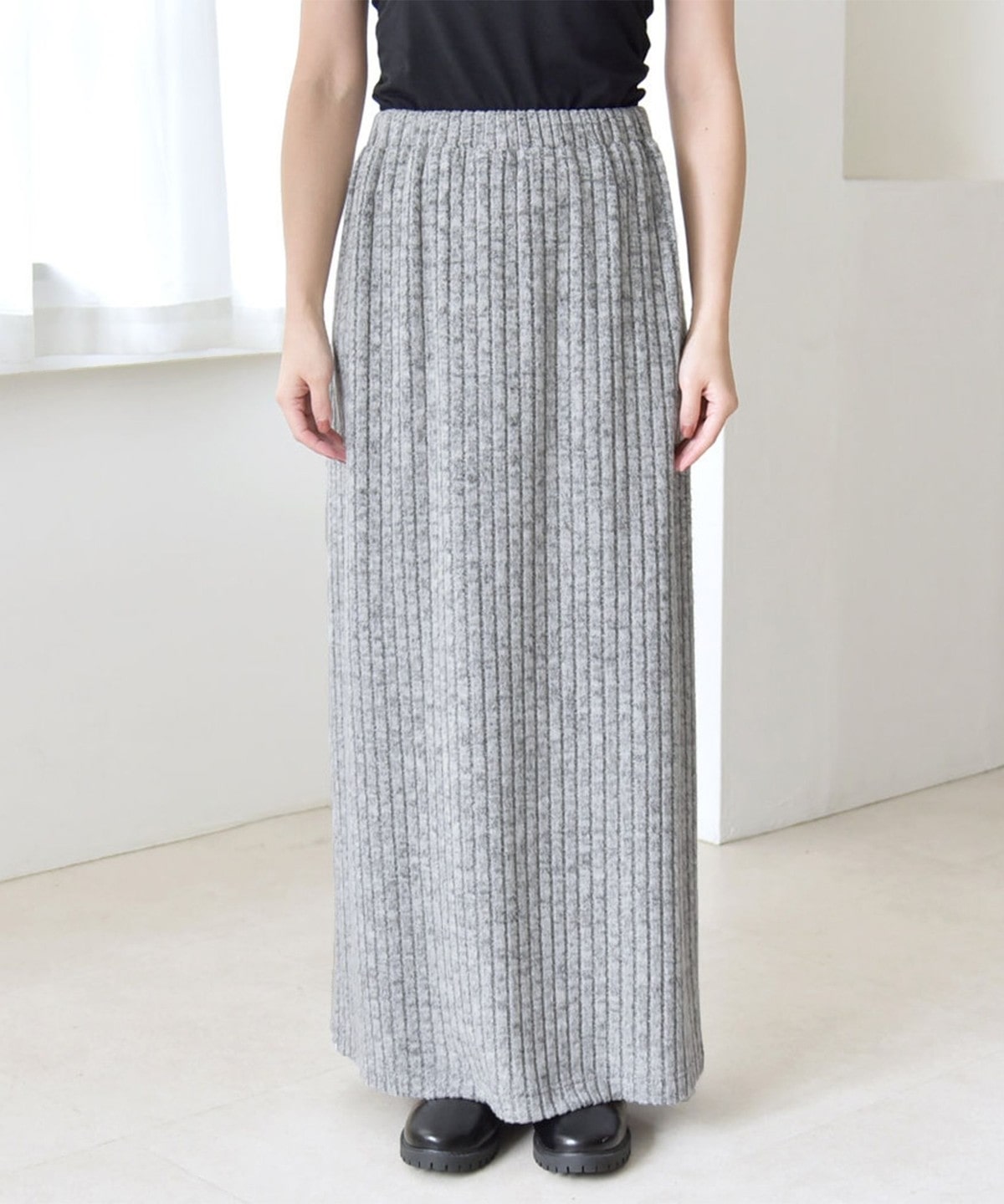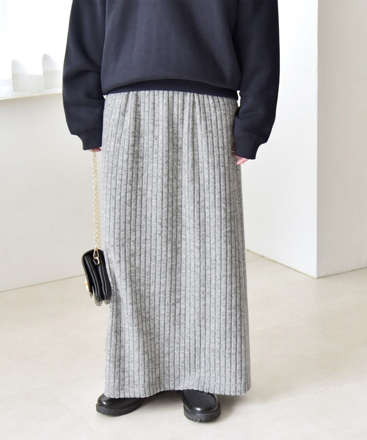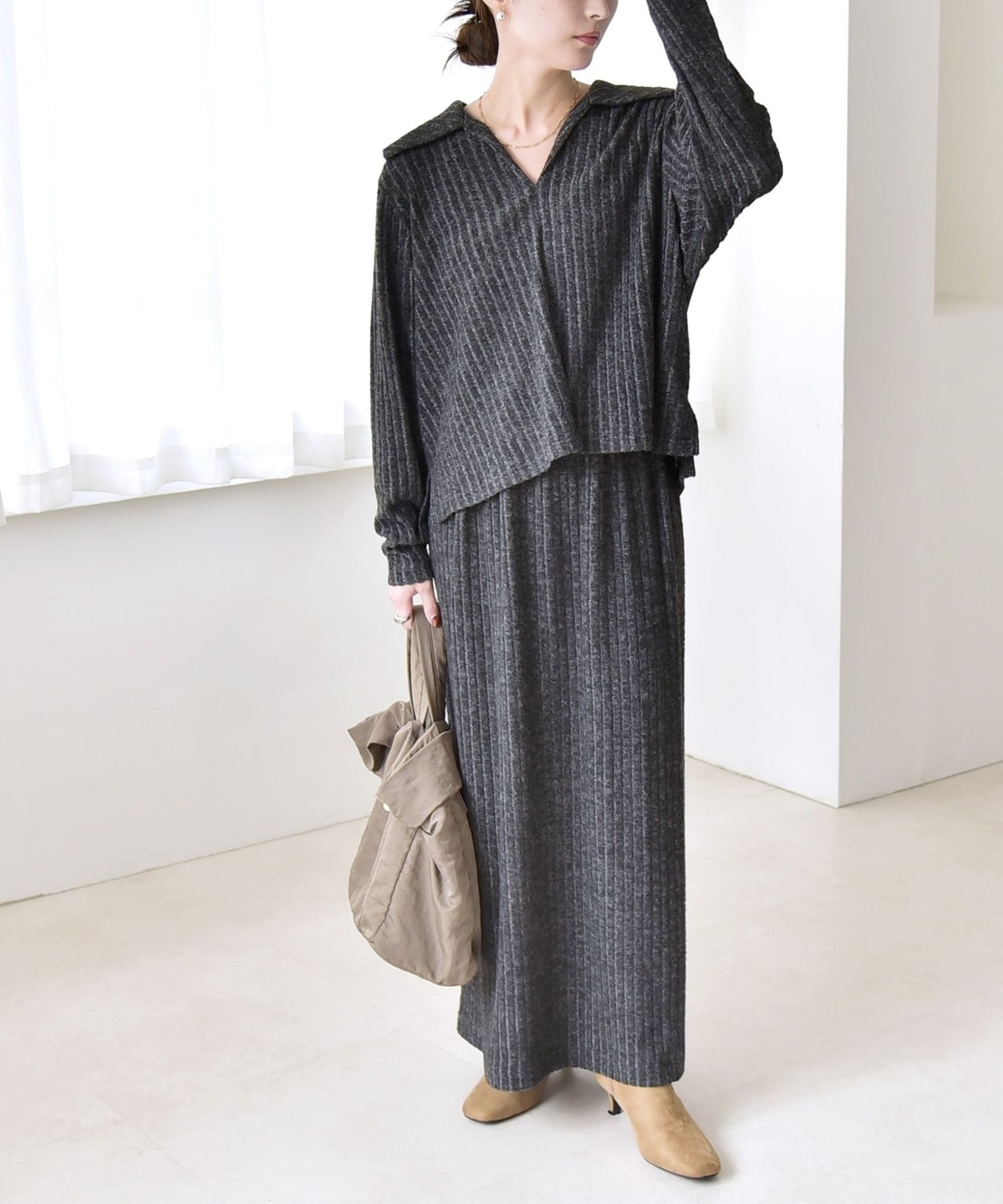 起毛感があり、柔らかく着心地の良いリブニット素材のトップス×スカートセットアップ。