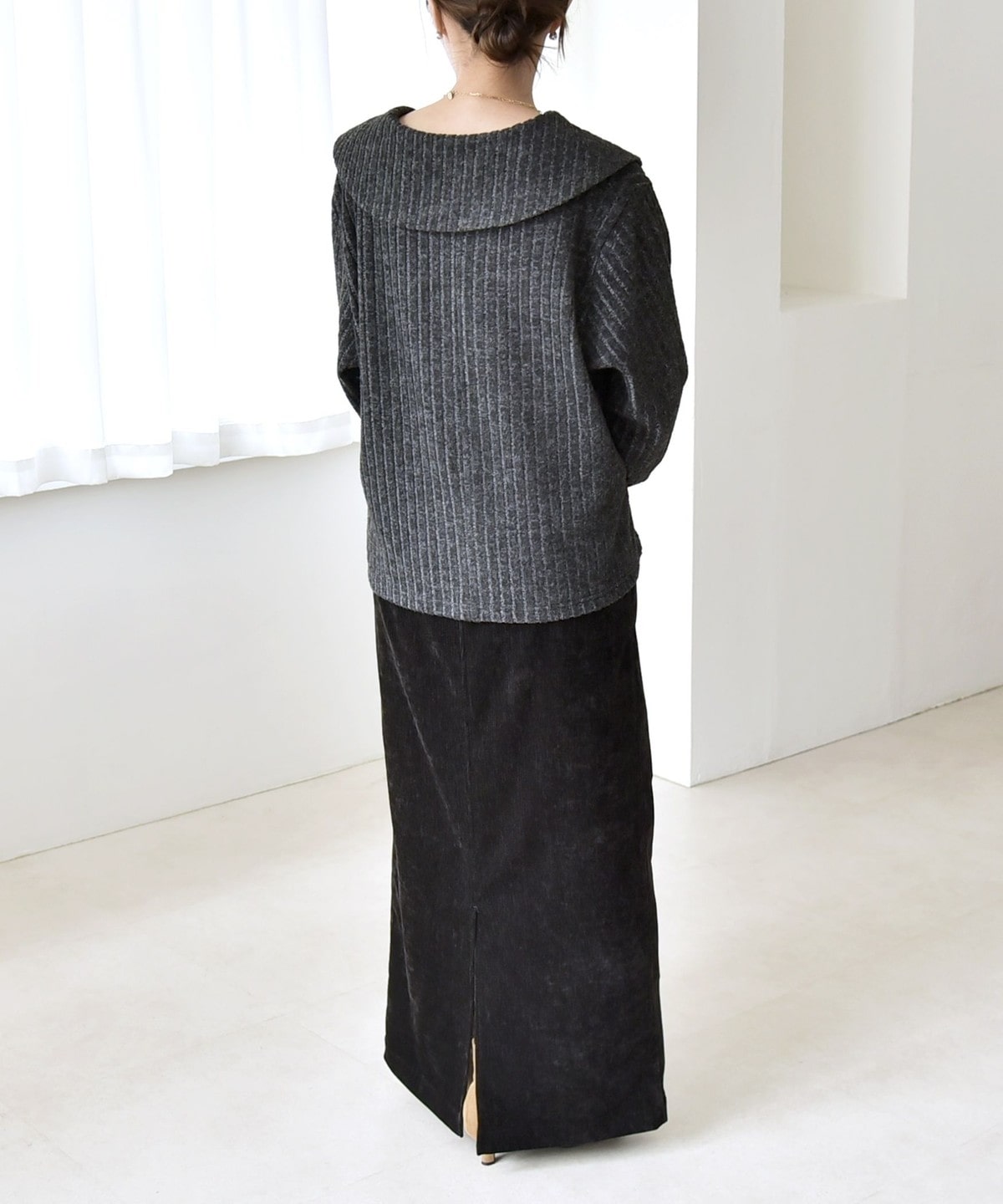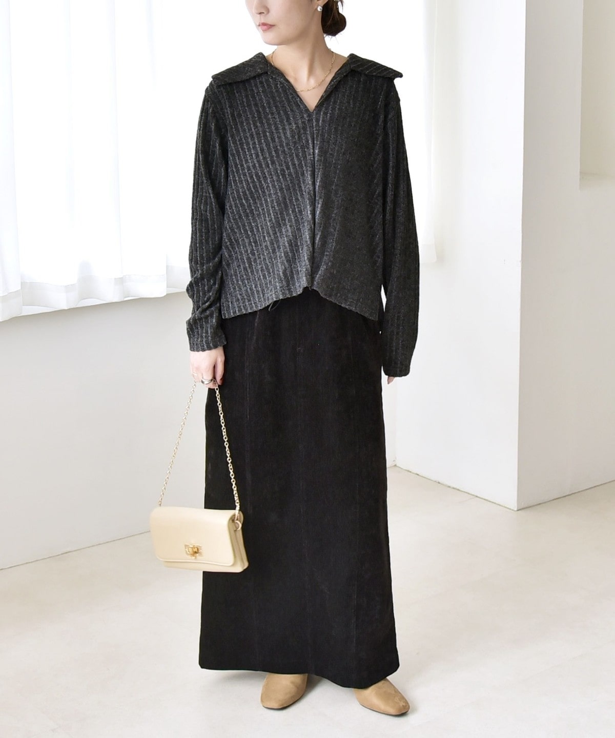 quaranciel:〈手洗い可能〉リブニット ポロ プルオーバー & スカート セットアップ