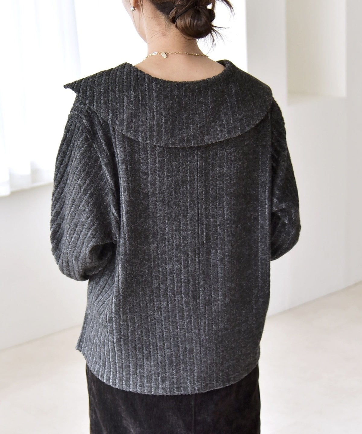 首元は詰まりすぎず抜け感があり、広めの襟が顔や首回りを華奢に見せてくれます。
