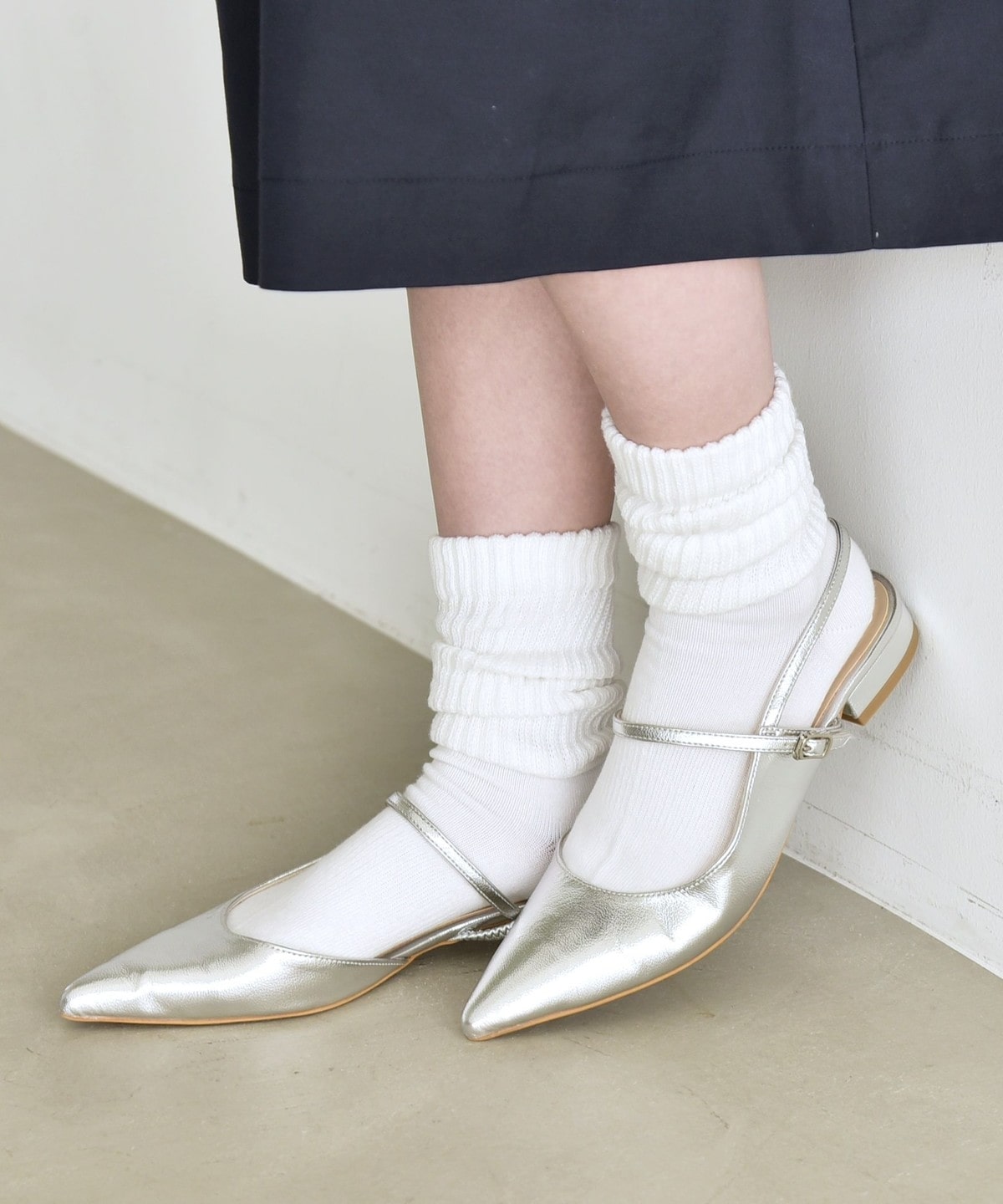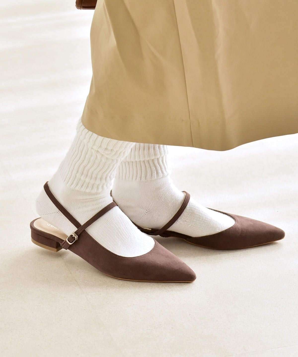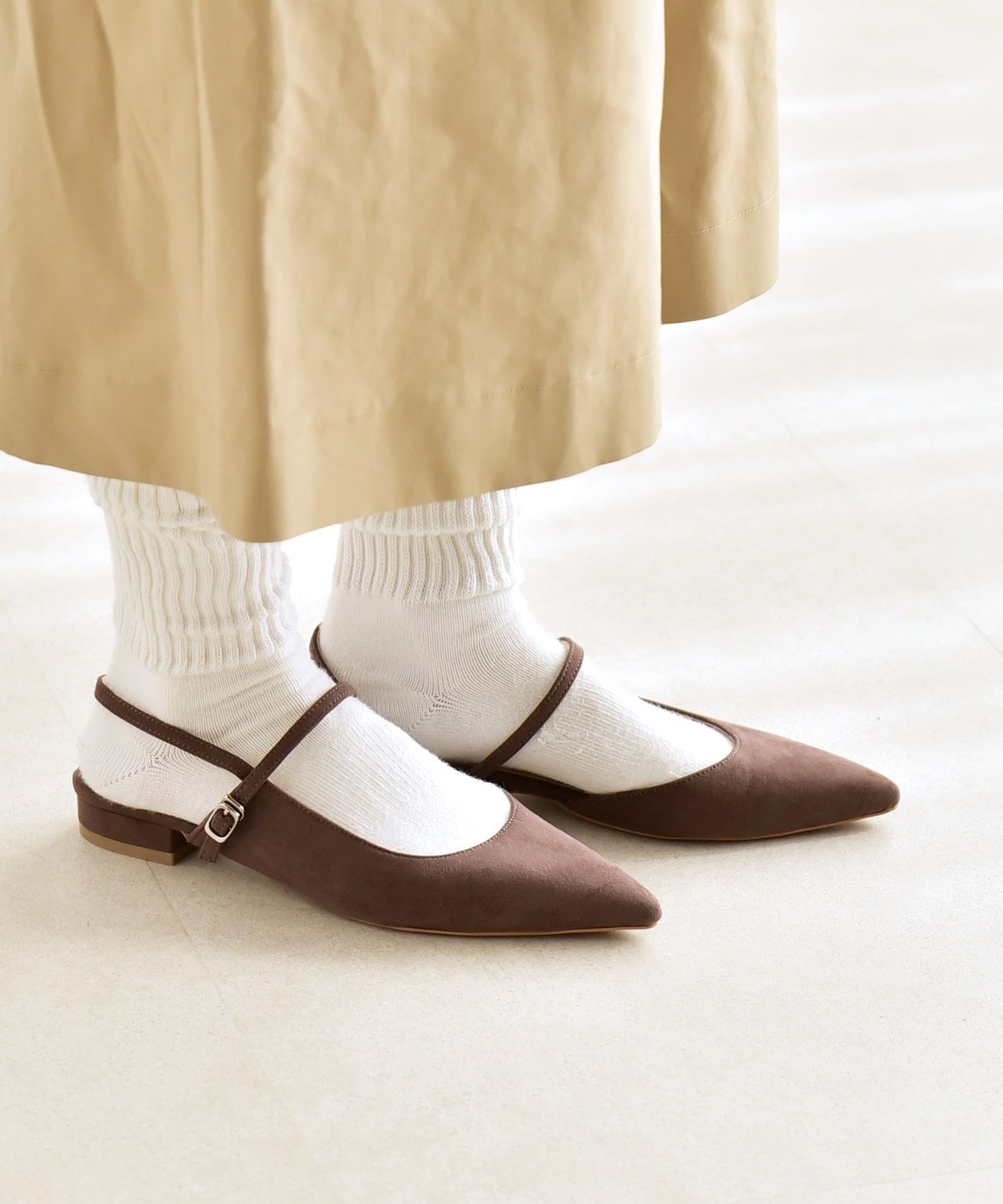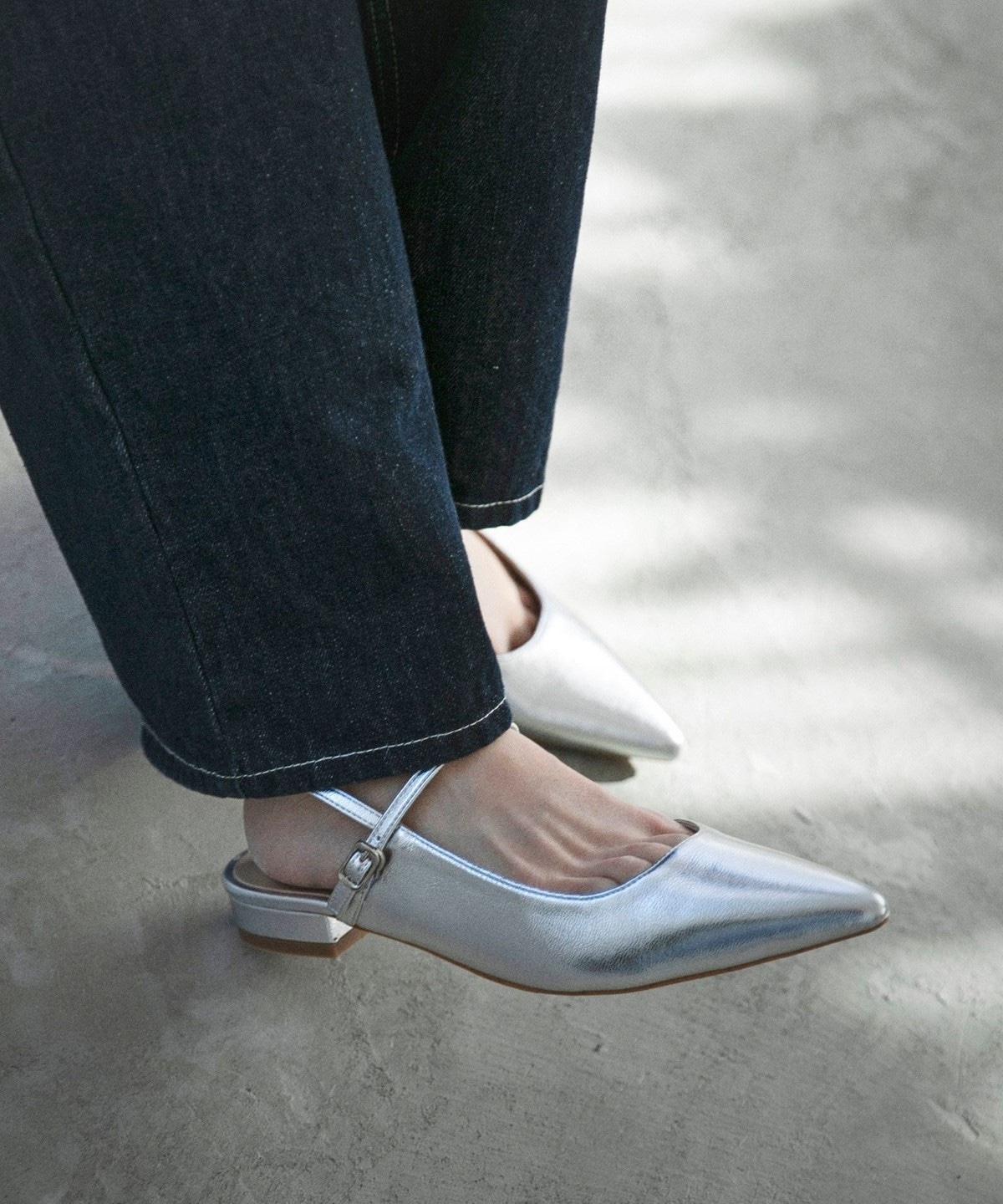 quaranciel: ポインテッド スリングバック フラット パンプス