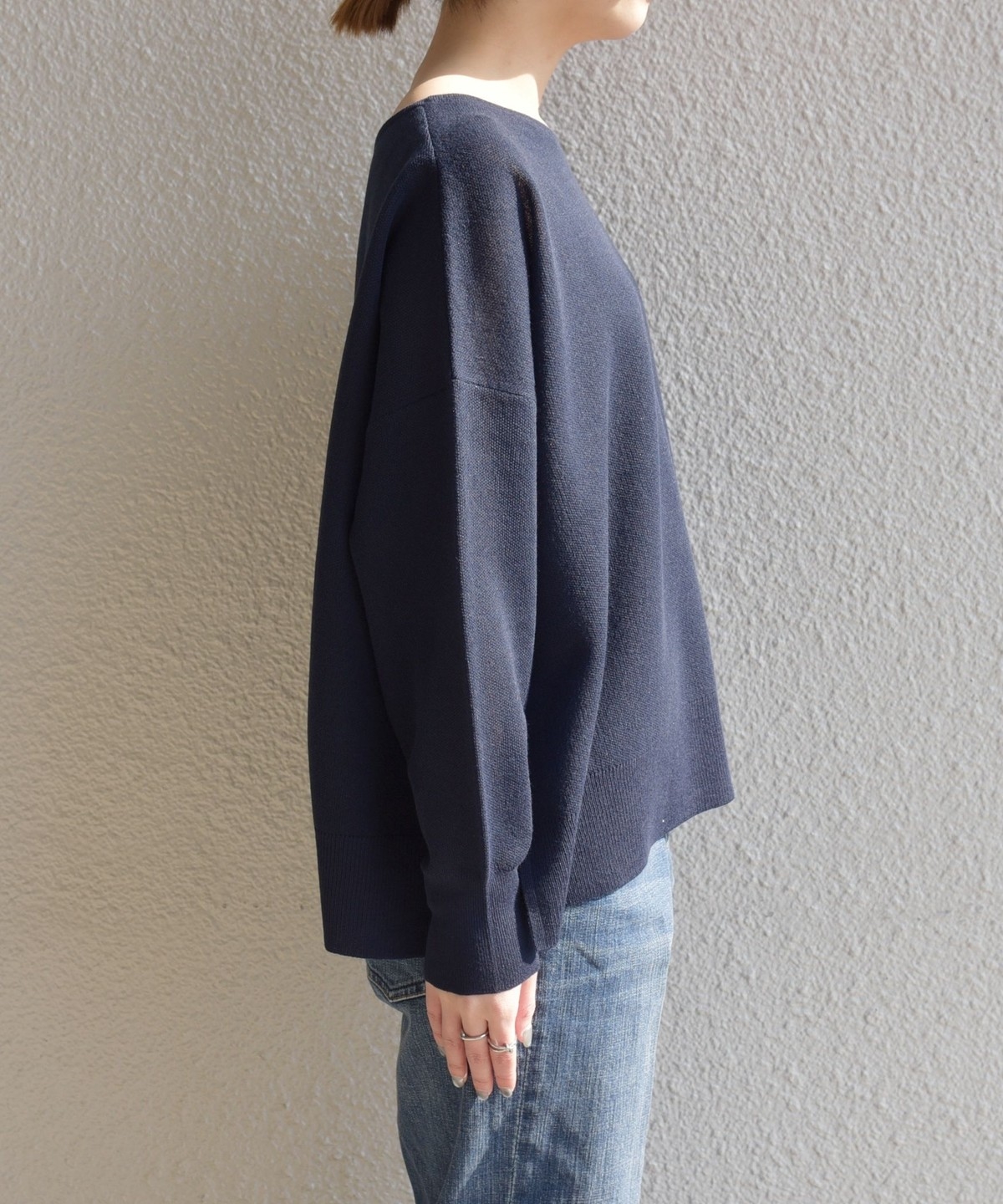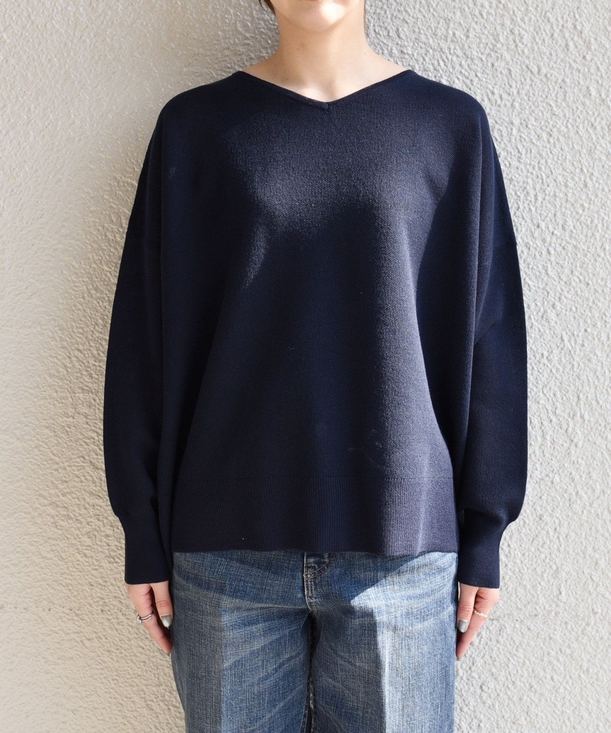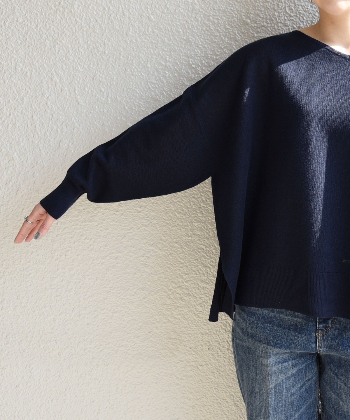 quaranciel:〈手洗い可能〉シアー 2way Vネック ドルマン ニット プルオーバー