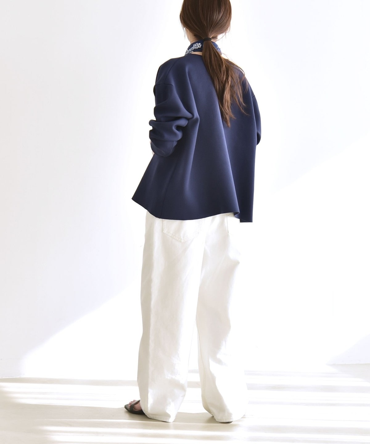 通勤用としてキレイ目なボトムと着ていただくのはもちろん、デニムなどのカジュアルアイテムと合わせるのもおすすめ。