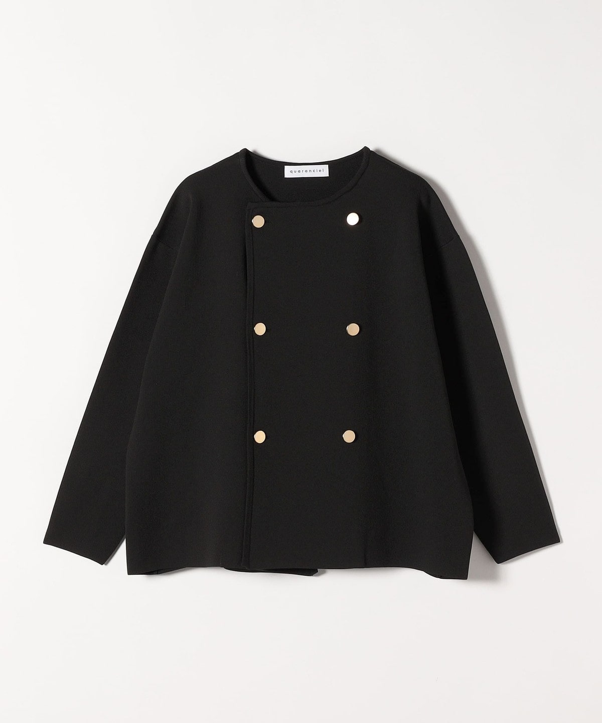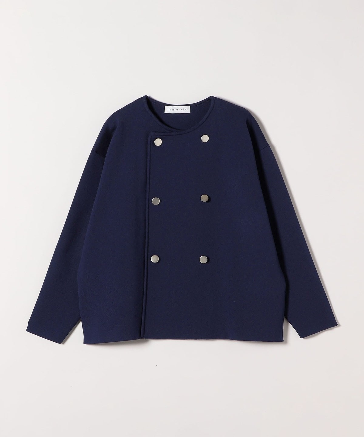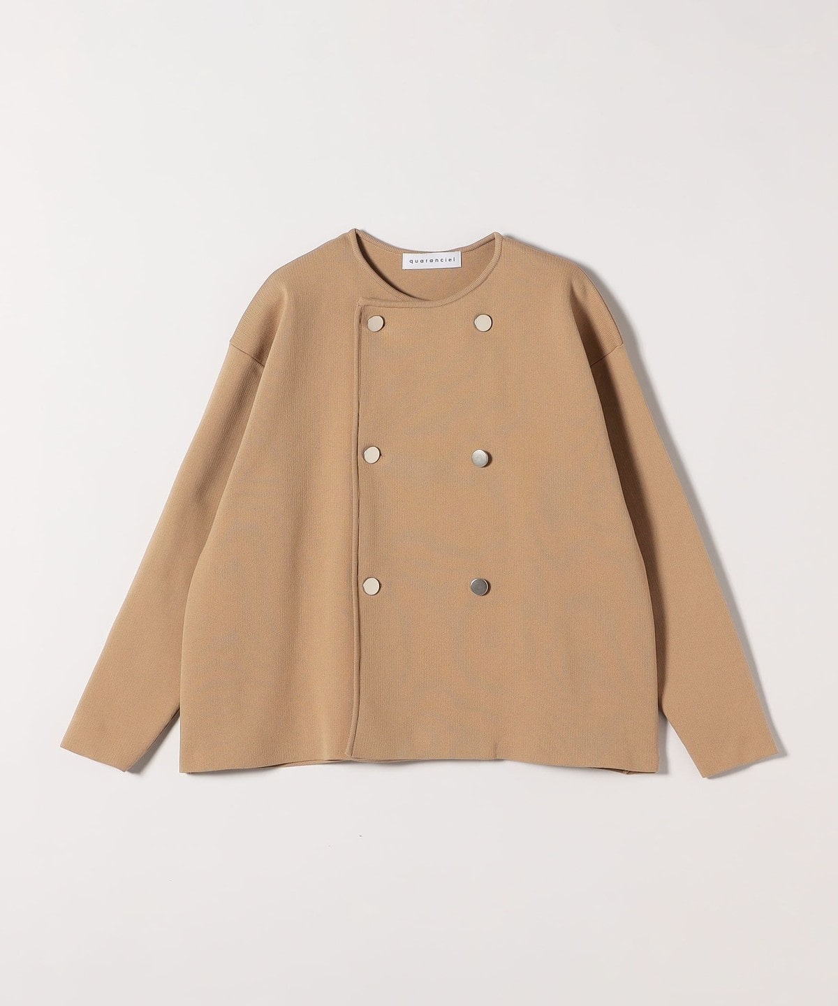quaranciel:〈手洗い可能〉ニット ノーカラー ダブル ジャケット カーディガン