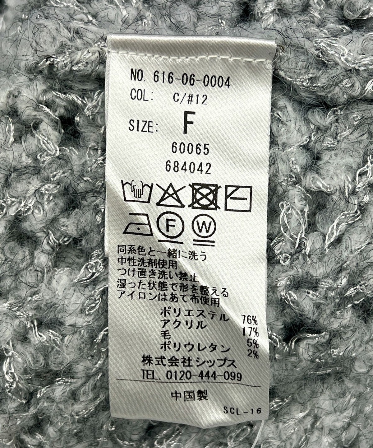 素材:ポリエステル76%, アクリル17%, 毛5%, ポリウレタン2%