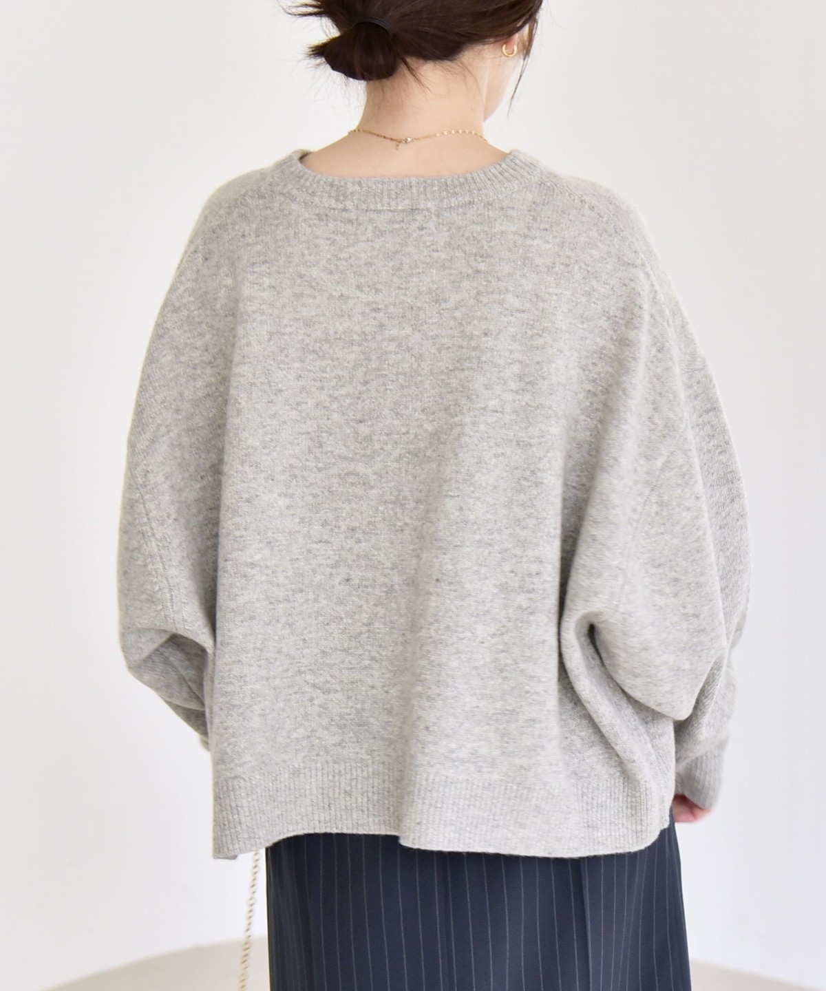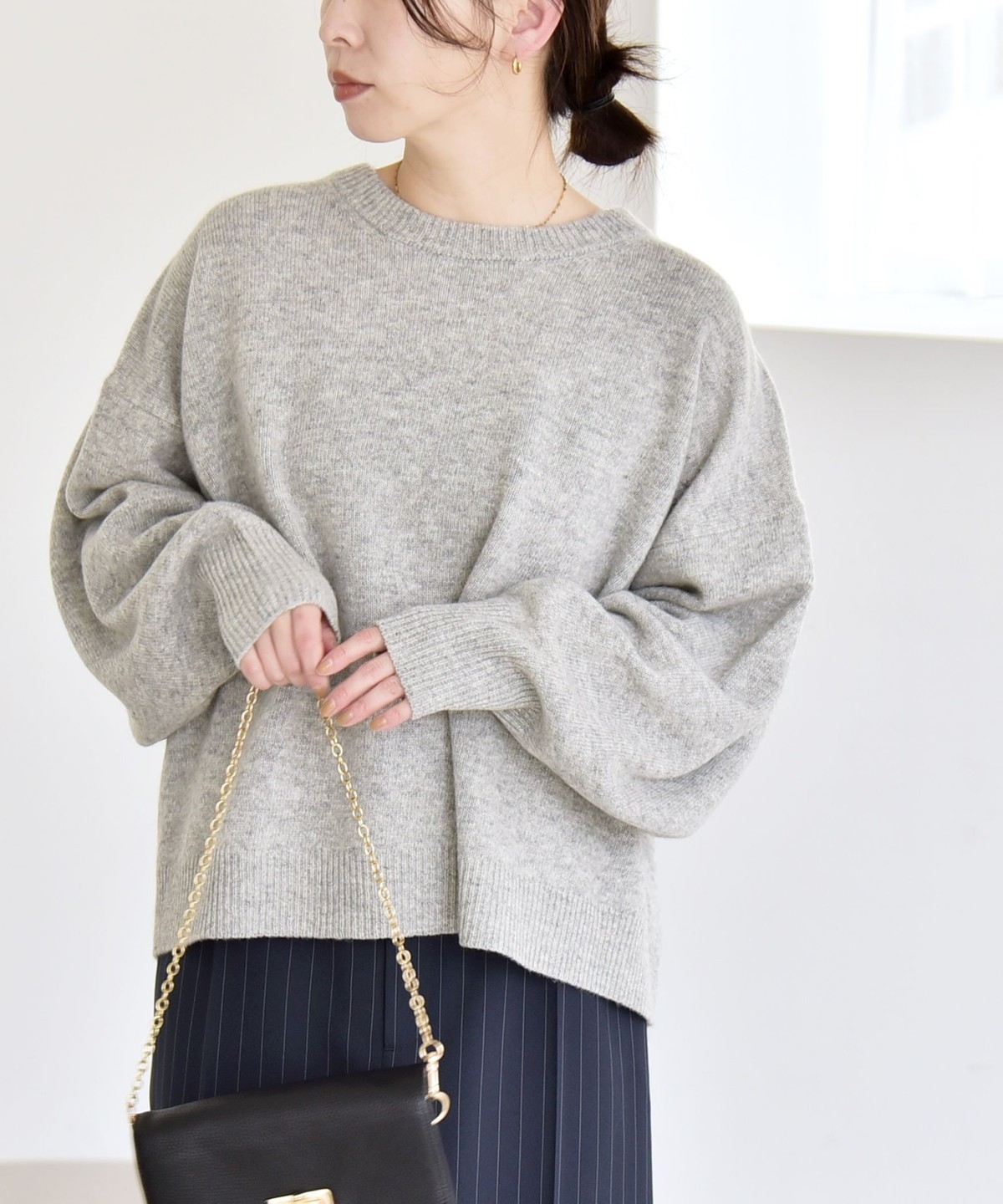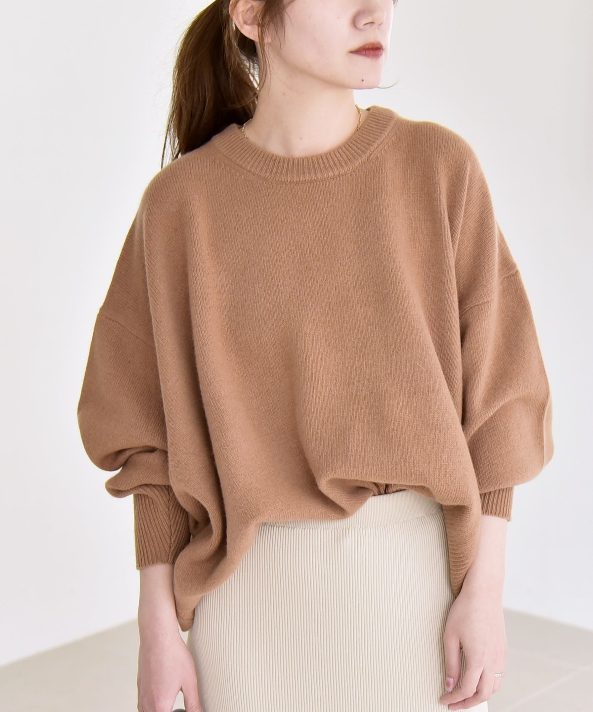 程良いボリューム感のドルマンスリーブが特徴のクルーネックニット。