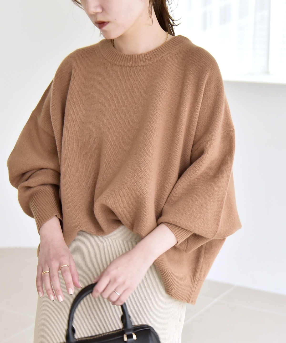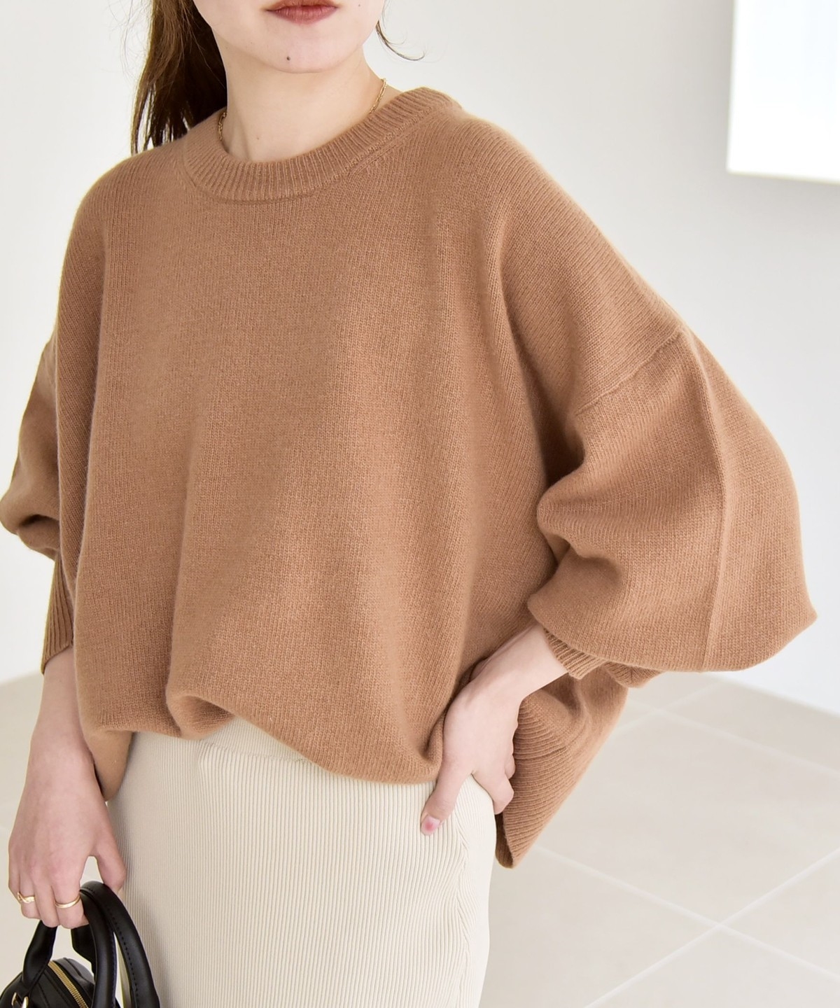 一枚でさらっと着るだけで、こなれ感のある着こなしになってくれる着映えニットです。