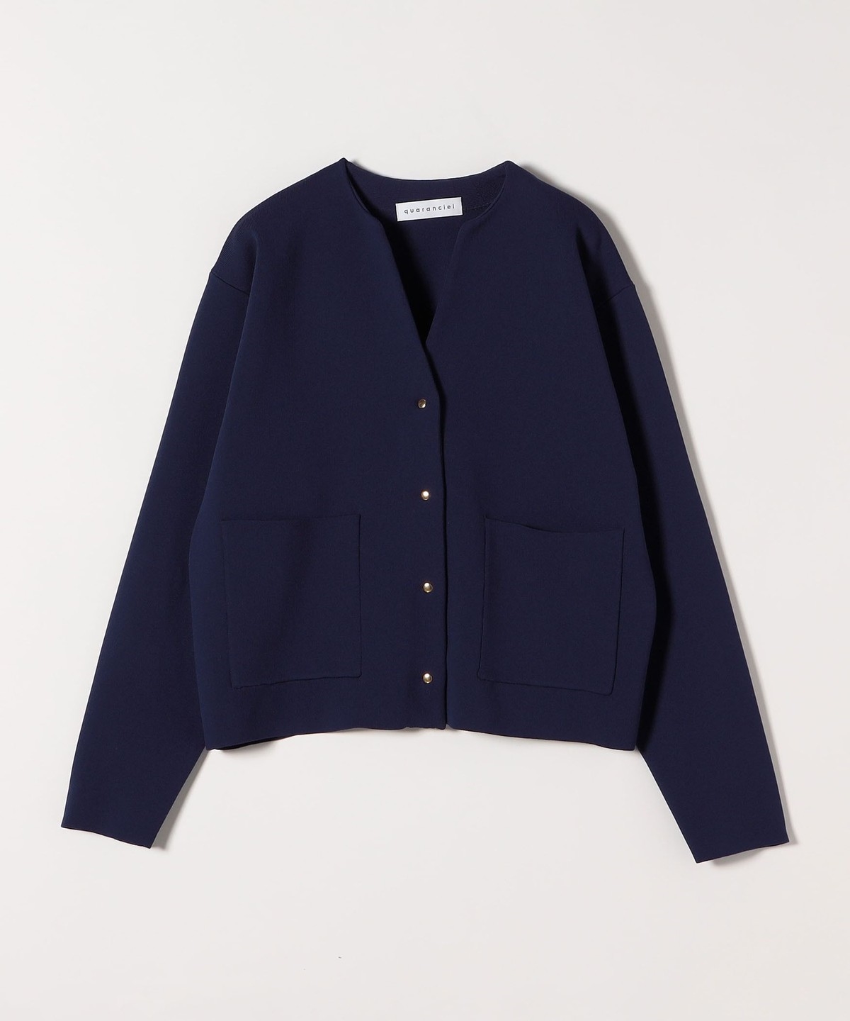 quaranciel:〈手洗い可能〉ノーカラー ポケット ニット ジャケット