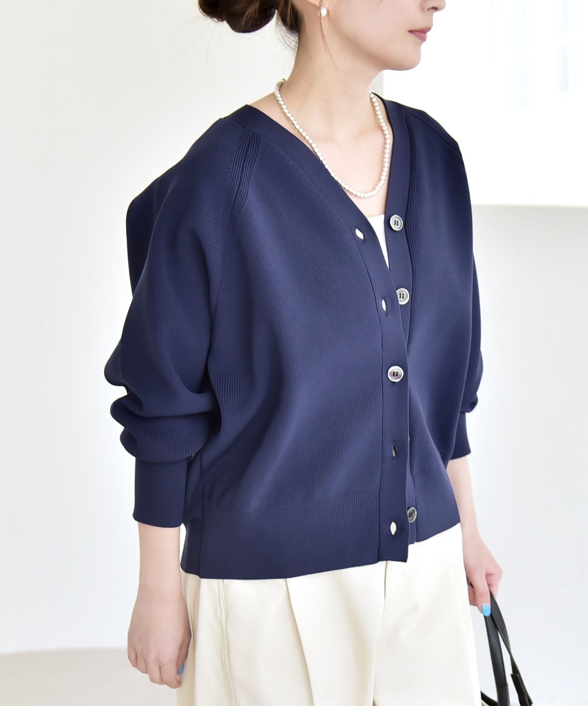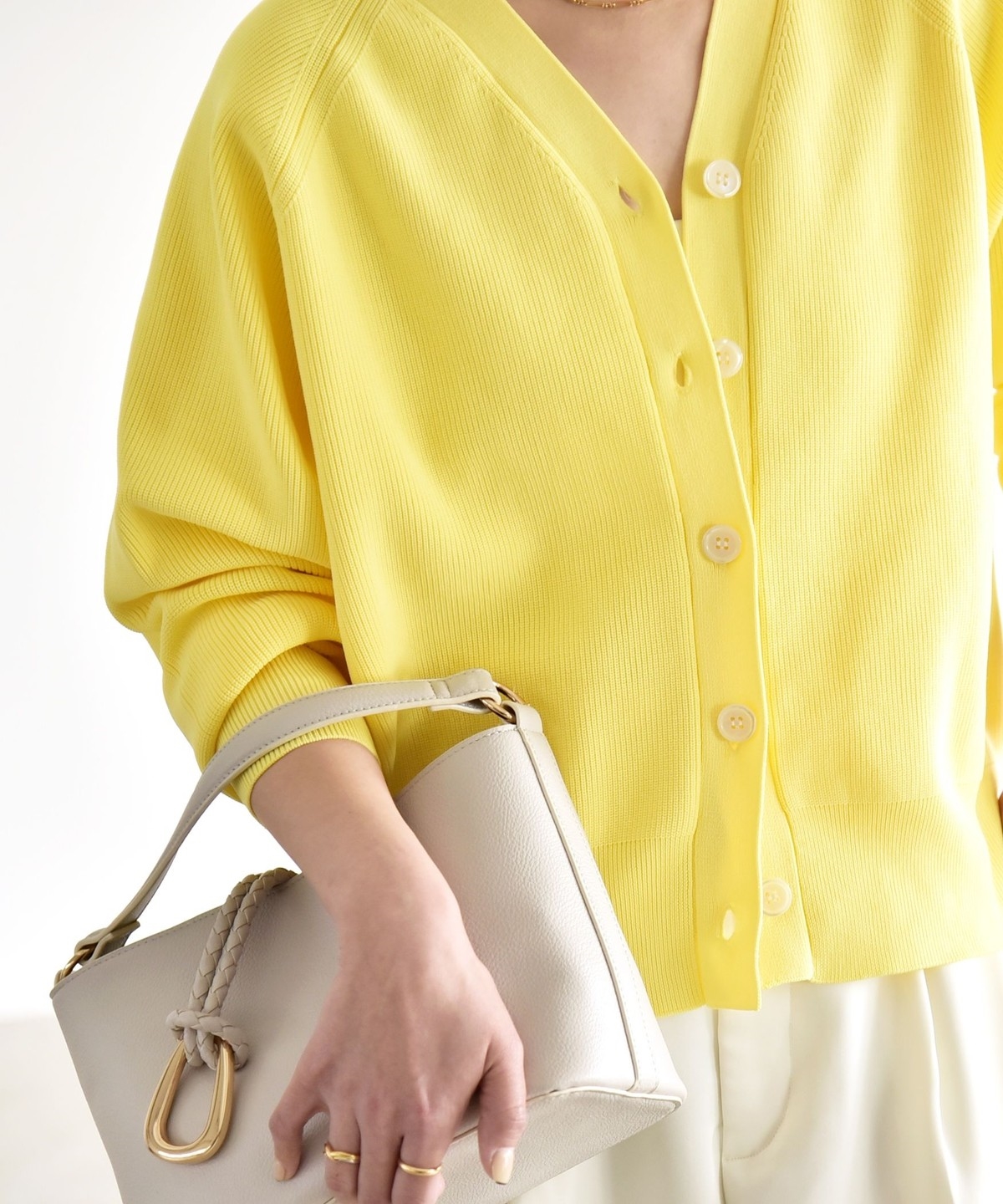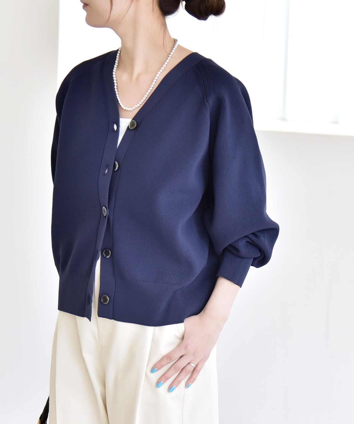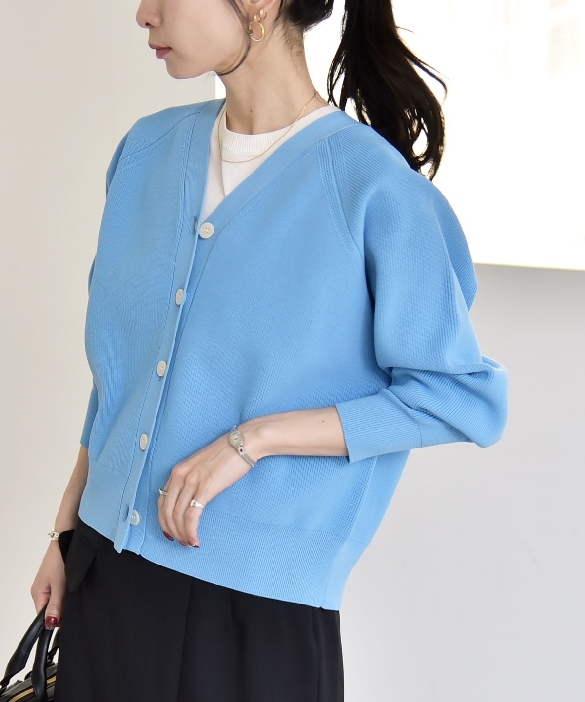 《予約》quaranciel:〈手洗い可能〉アゼ Vネック コンパクト ニット カーディガン