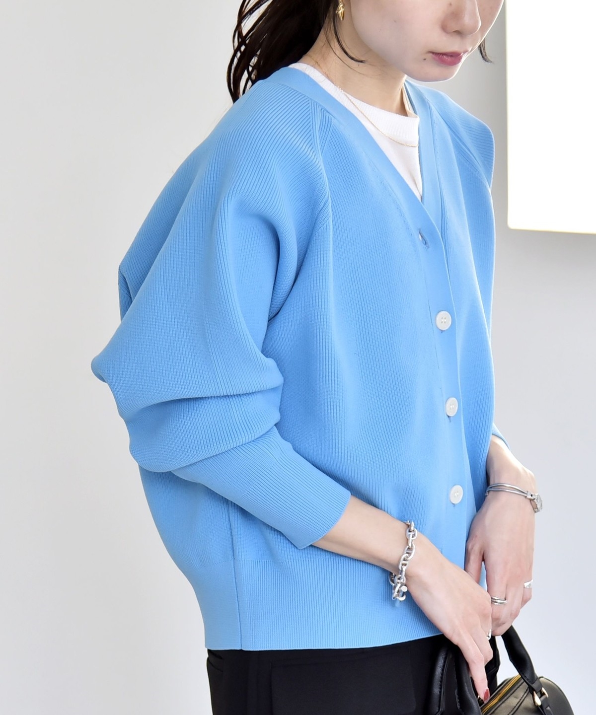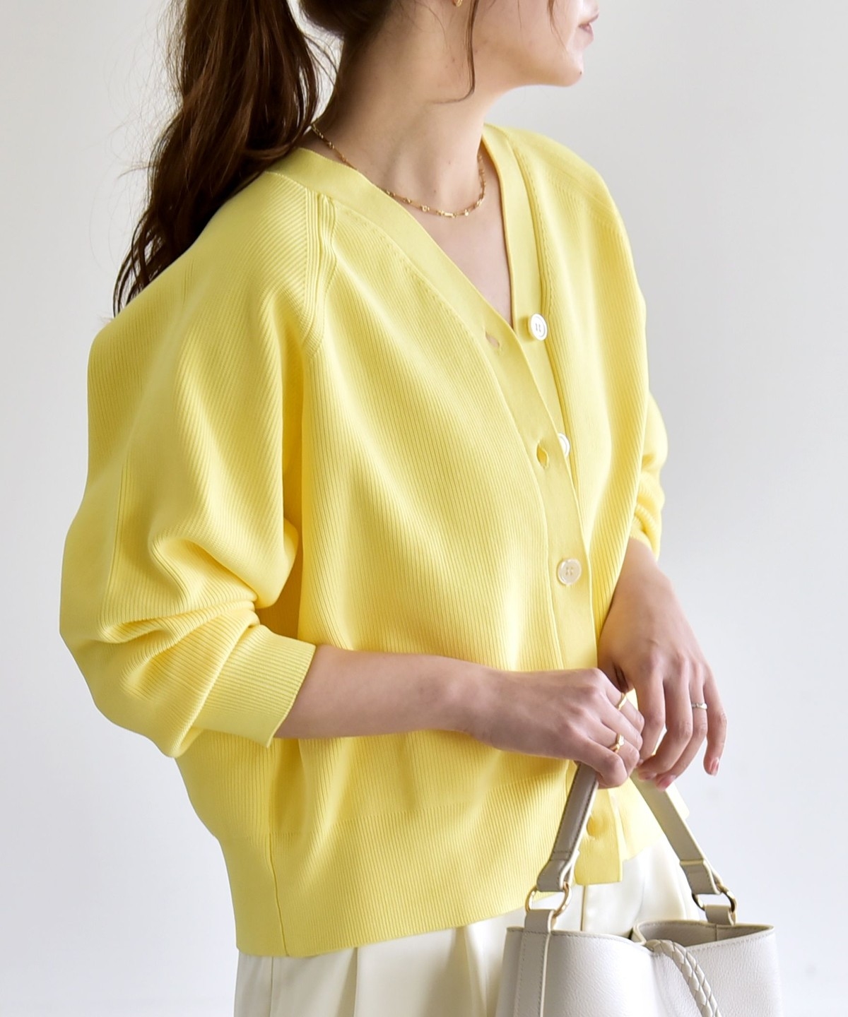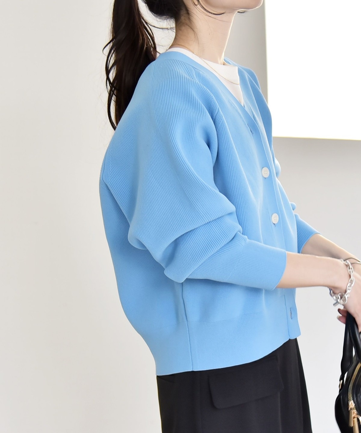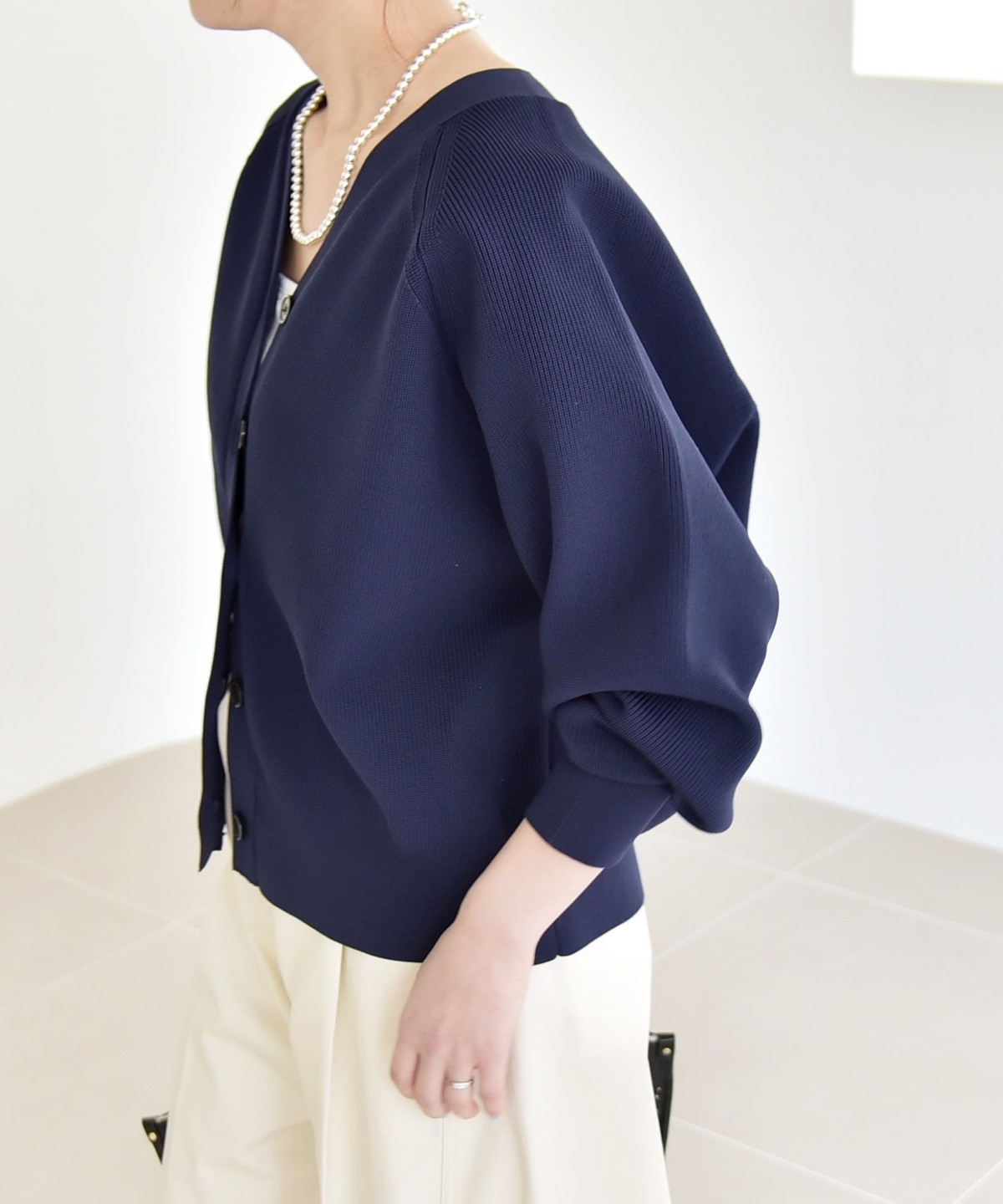 《予約》quaranciel:〈手洗い可能〉アゼ Vネック コンパクト ニット カーディガン