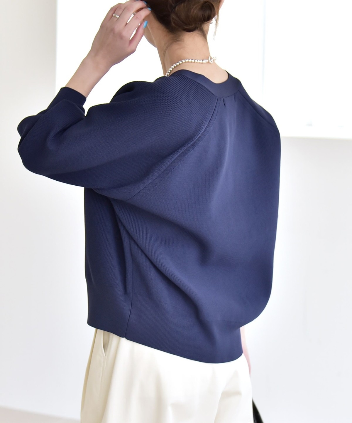 ラグラン切り替えなので、肩や腕周りはゆったりとしておりさっと楽に着られます。