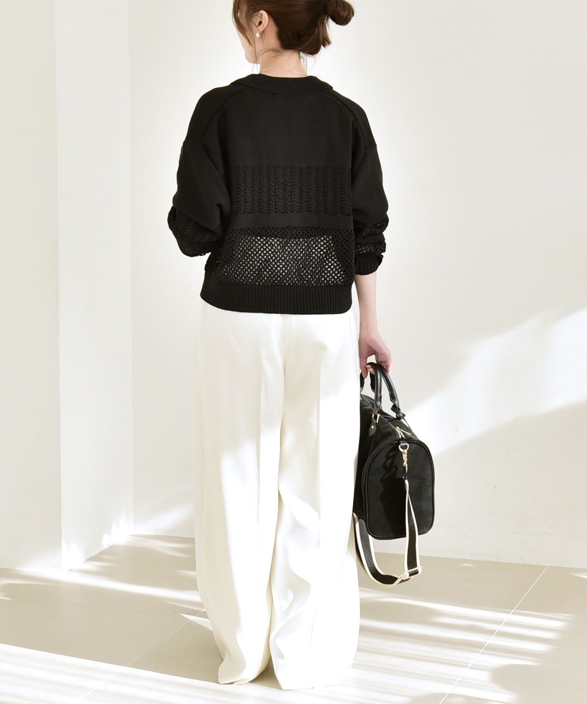 ショート丈なのでハイウエストのパンツやスカートと合わせると、スタイルアップ効果も◎
