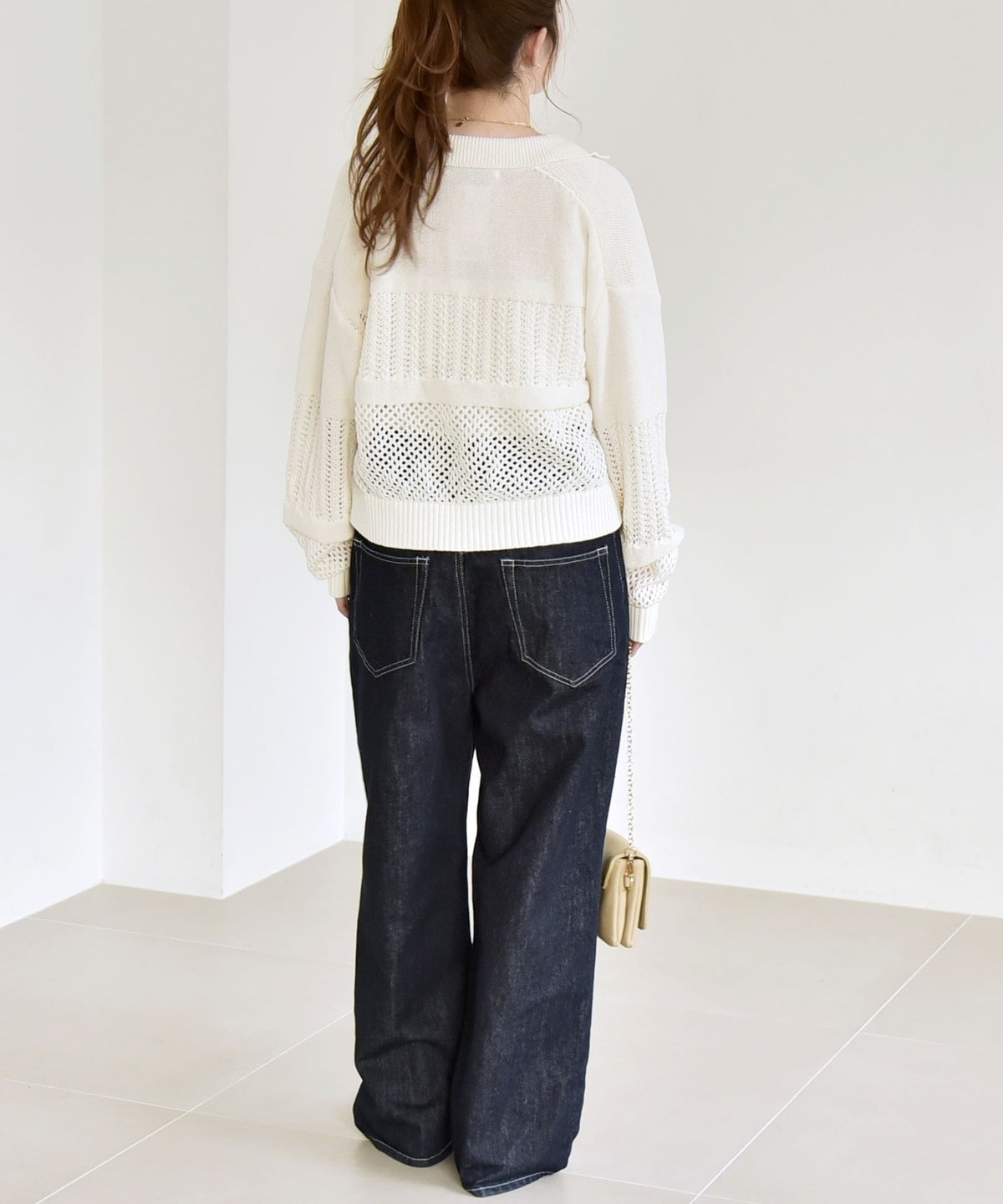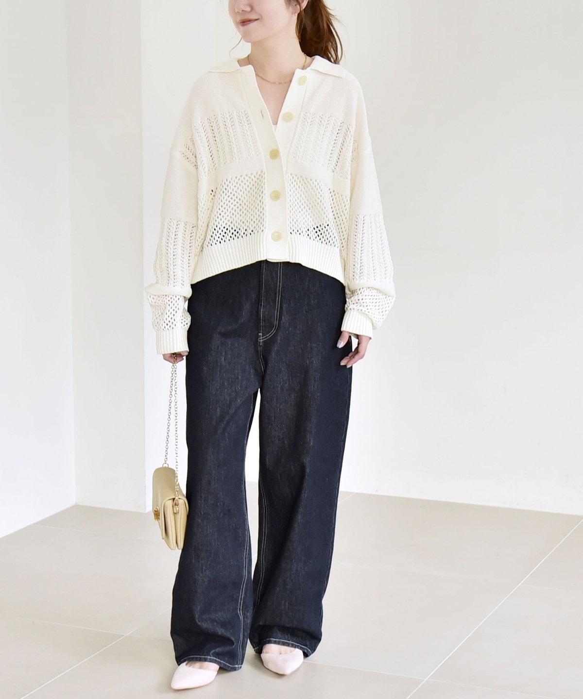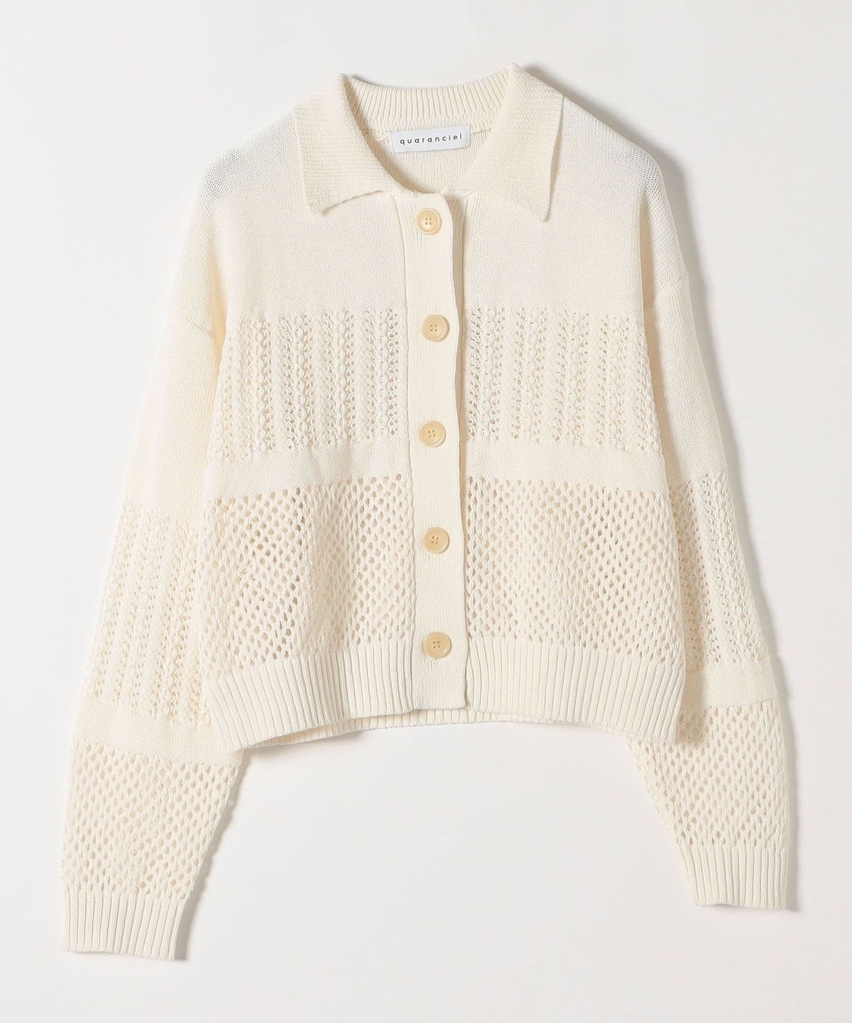 2. 《予約》quaranciel:〈手洗い可能〉透かし編み 襟付き ニット カーディガン オフホワイト
