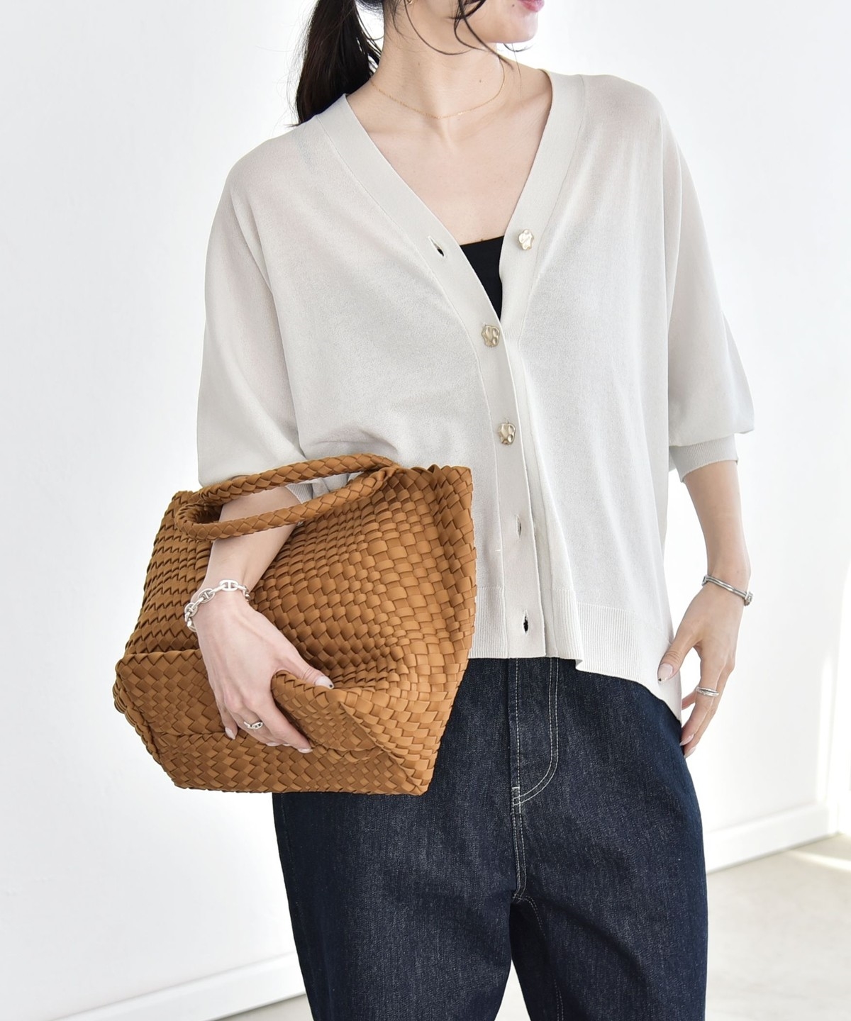 28. 《予約》quaranciel:〈接触冷感/手洗い可能〉メタルボタン Vネック シアー ニット カーディガン