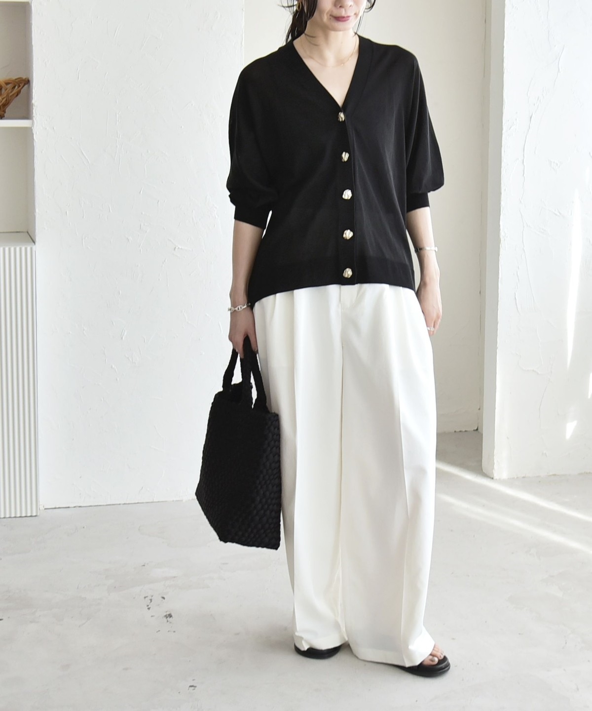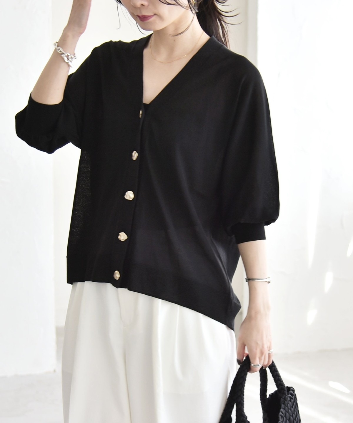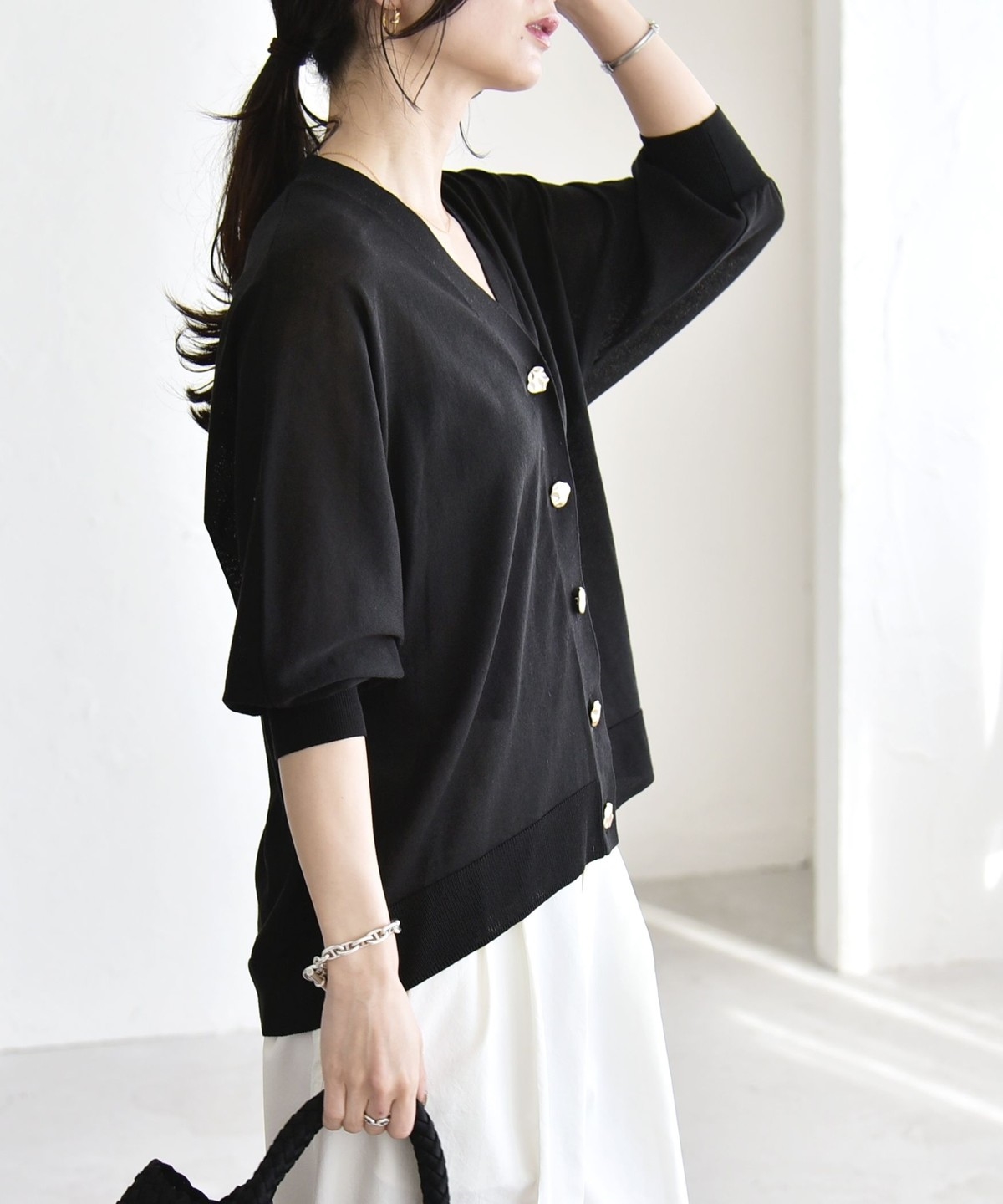 > > >  > 《予約》quaranciel:〈接触冷感/手洗い可能〉メタルボタン Vネック シアー ニット カーディガン