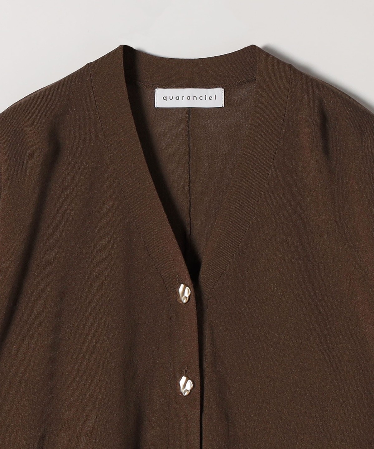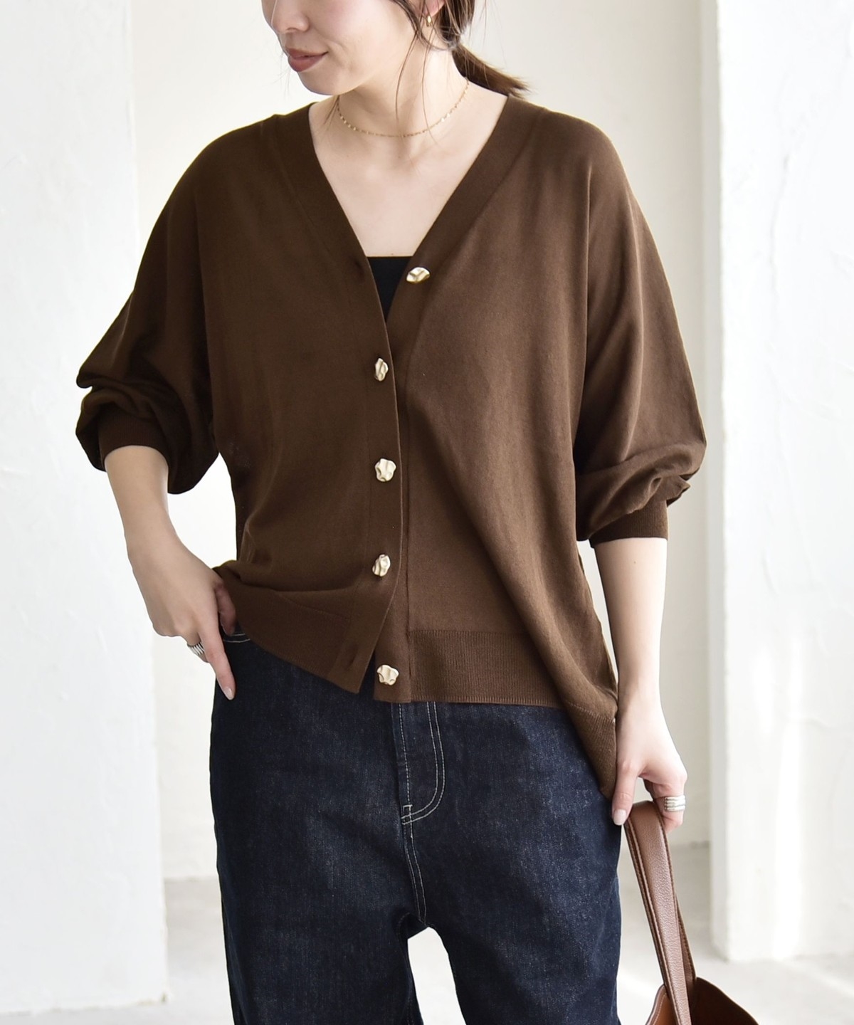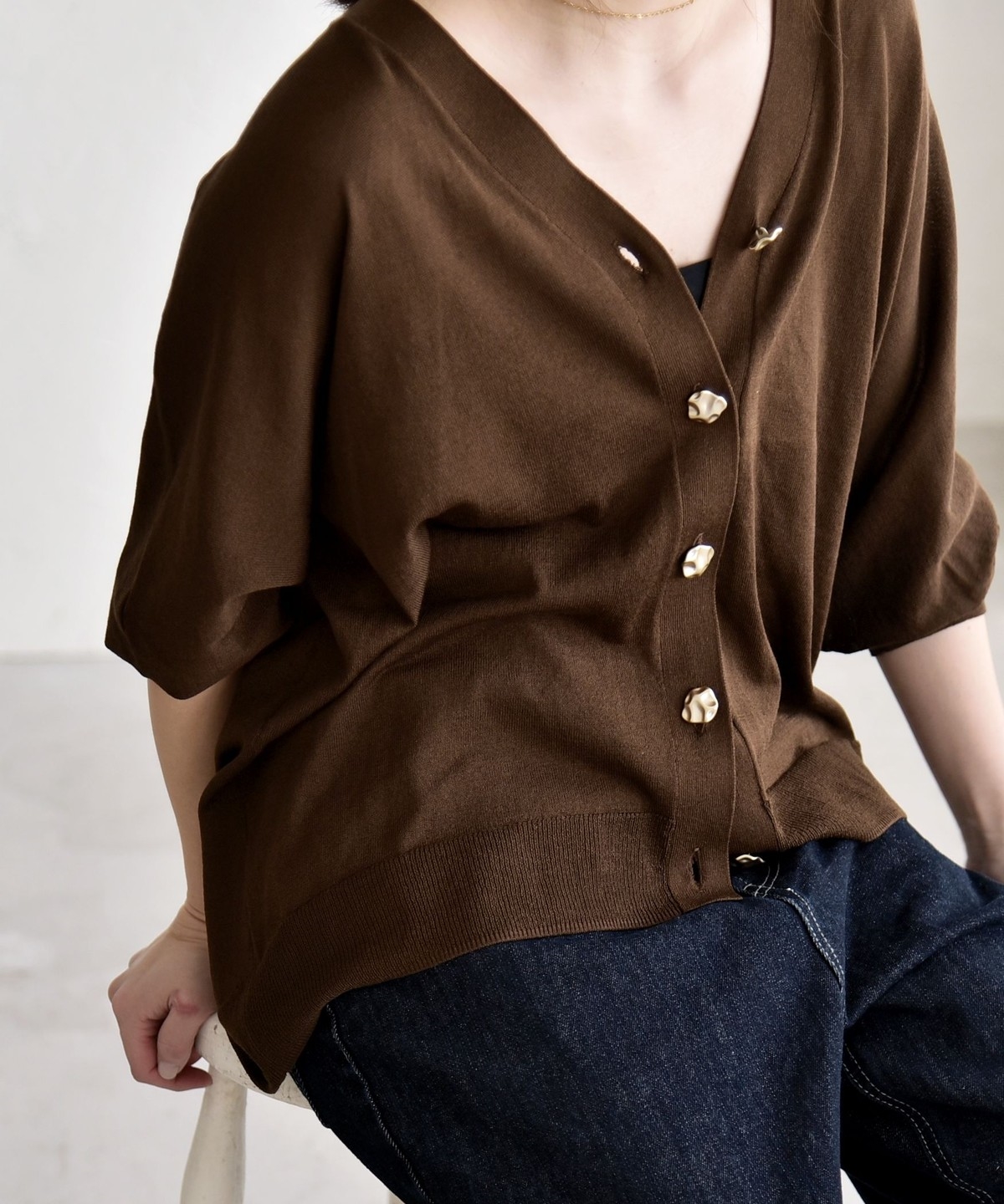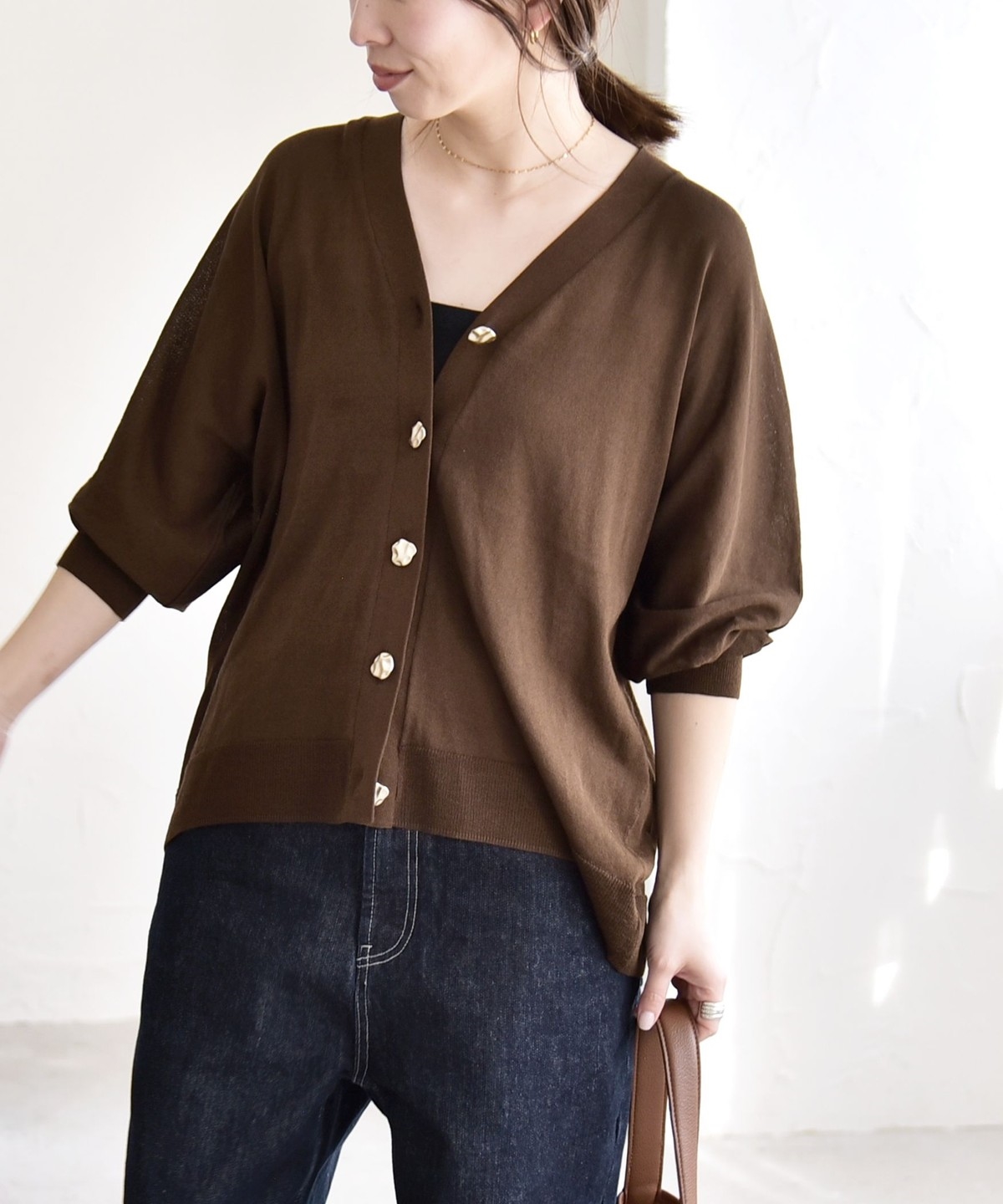 2. 《予約》quaranciel:〈接触冷感/手洗い可能〉メタルボタン Vネック シアー ニット カーディガン ブラウン