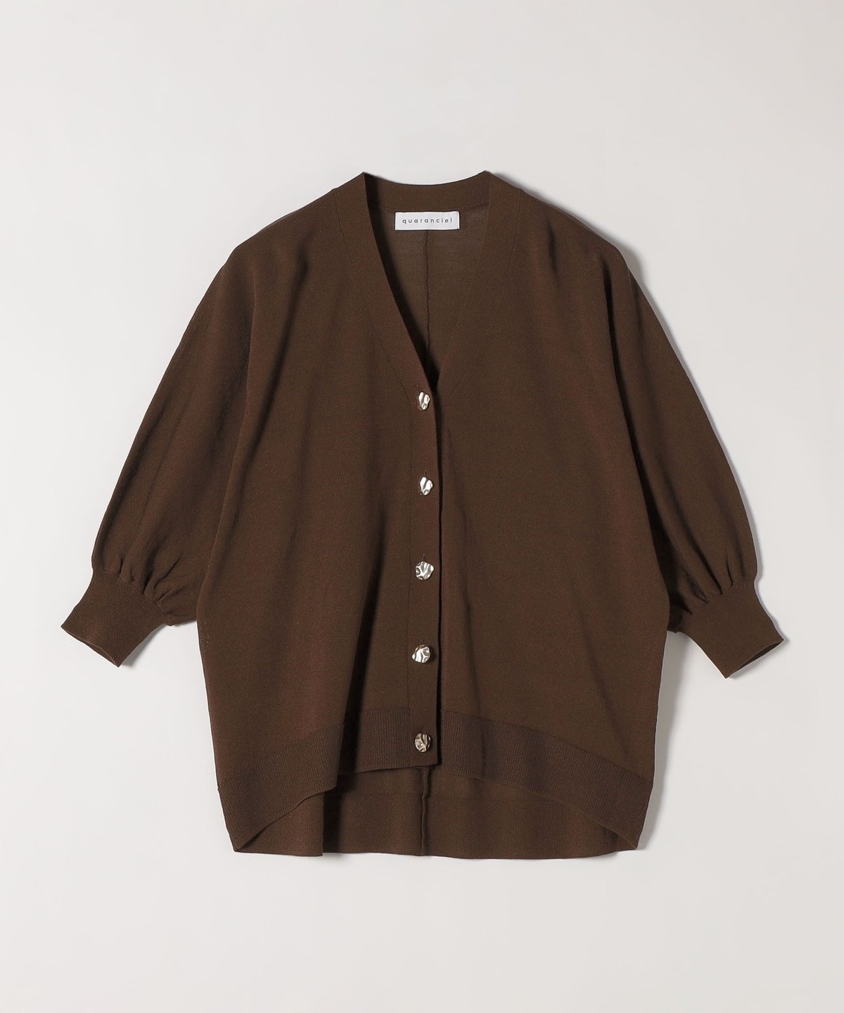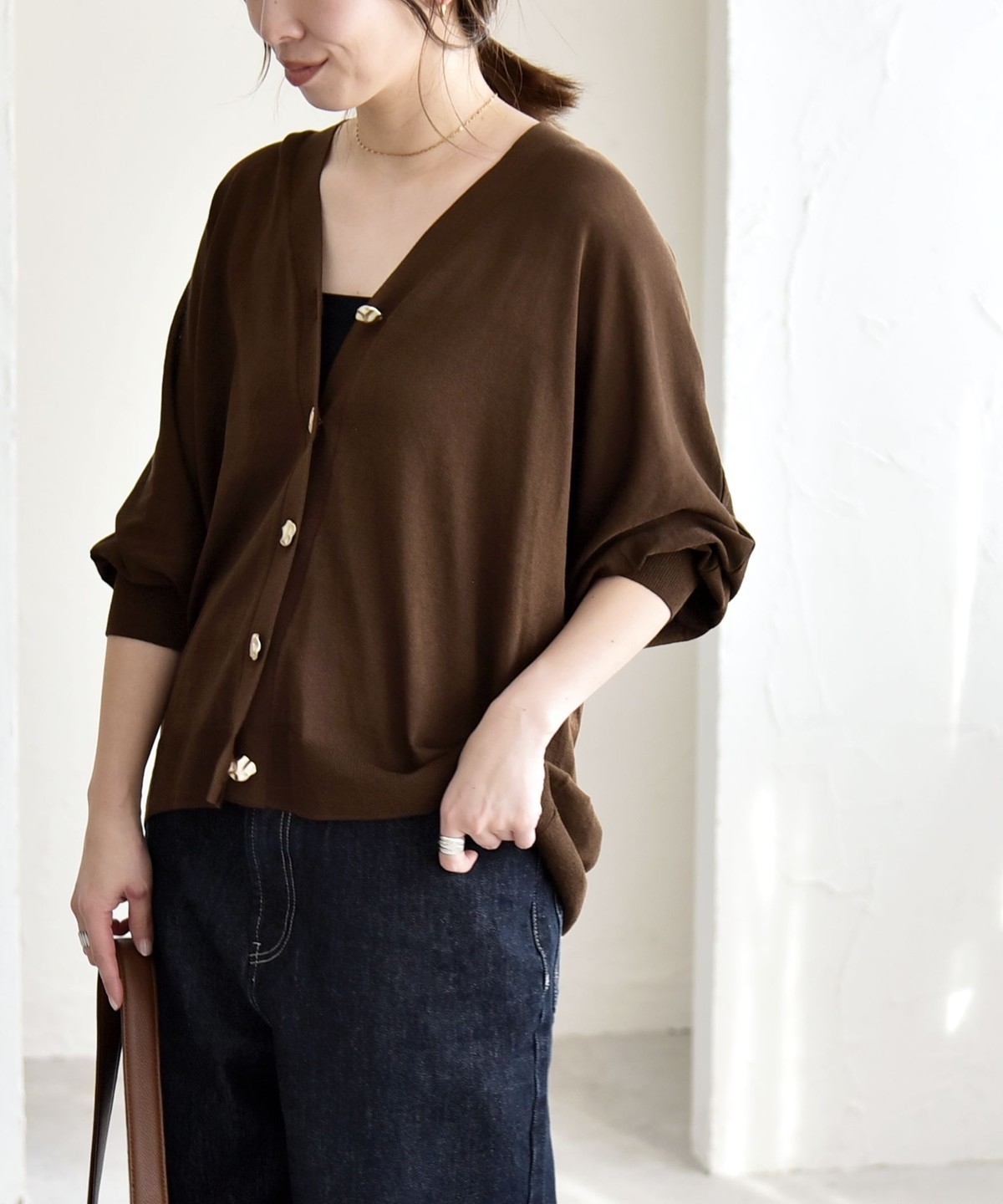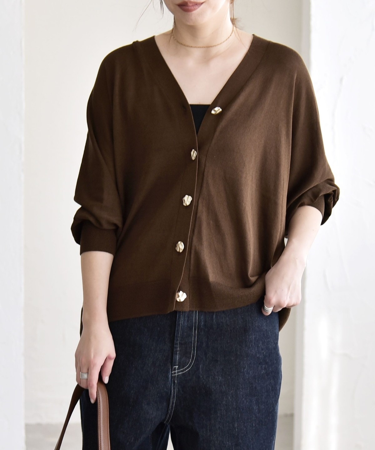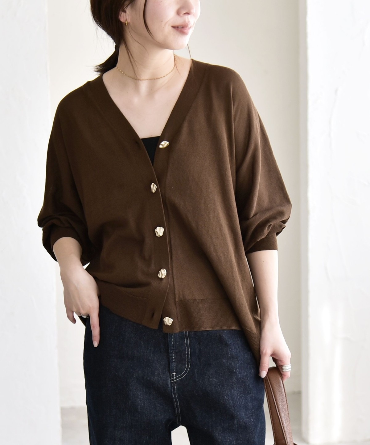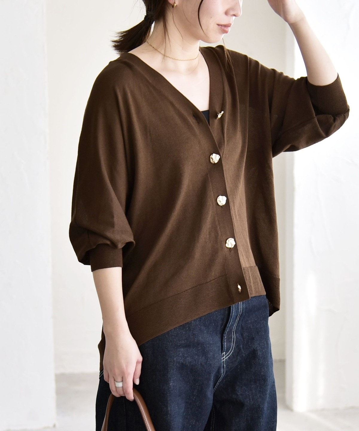 2. 《予約》quaranciel:〈接触冷感/手洗い可能〉メタルボタン Vネック シアー ニット カーディガン ブラウン