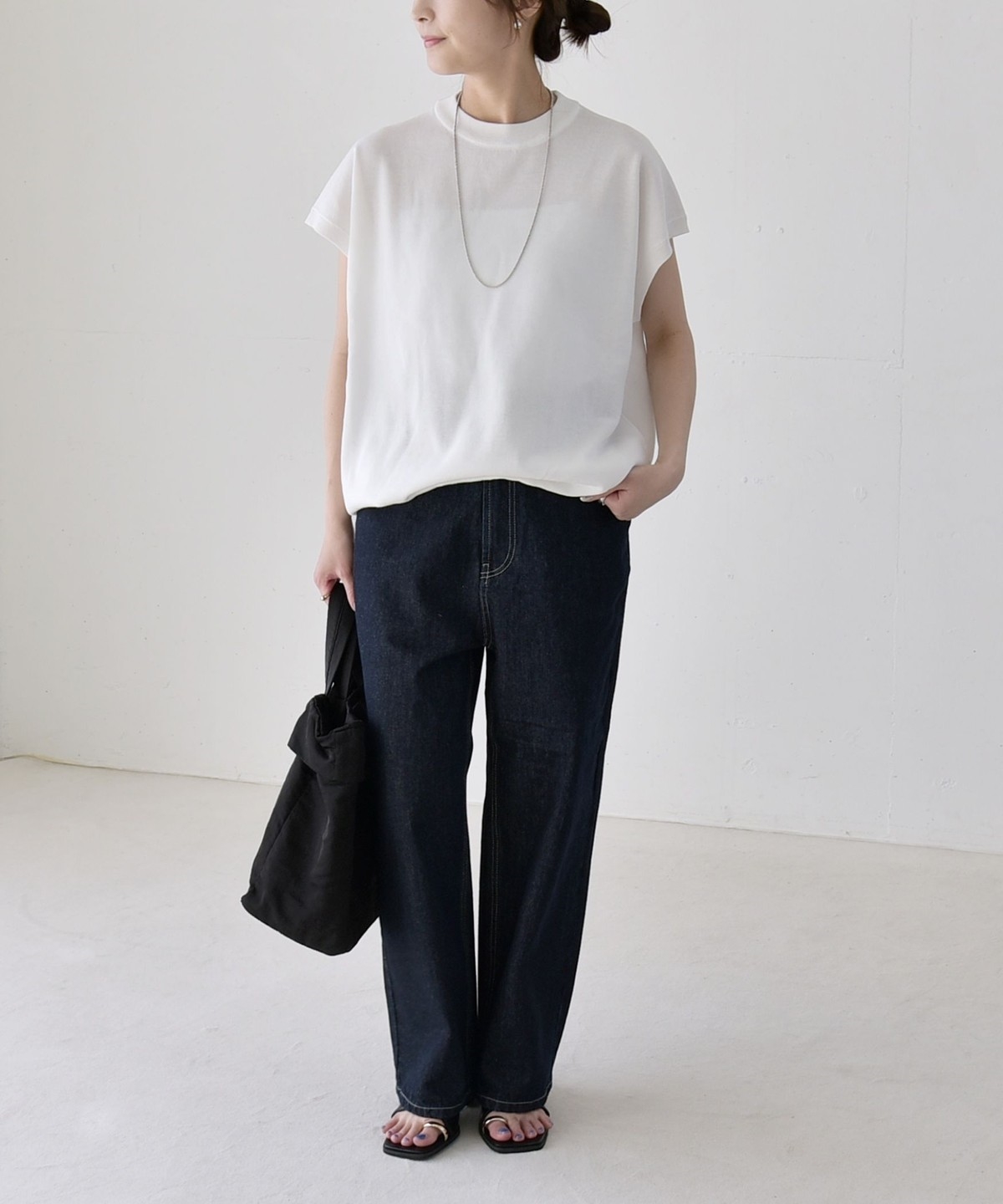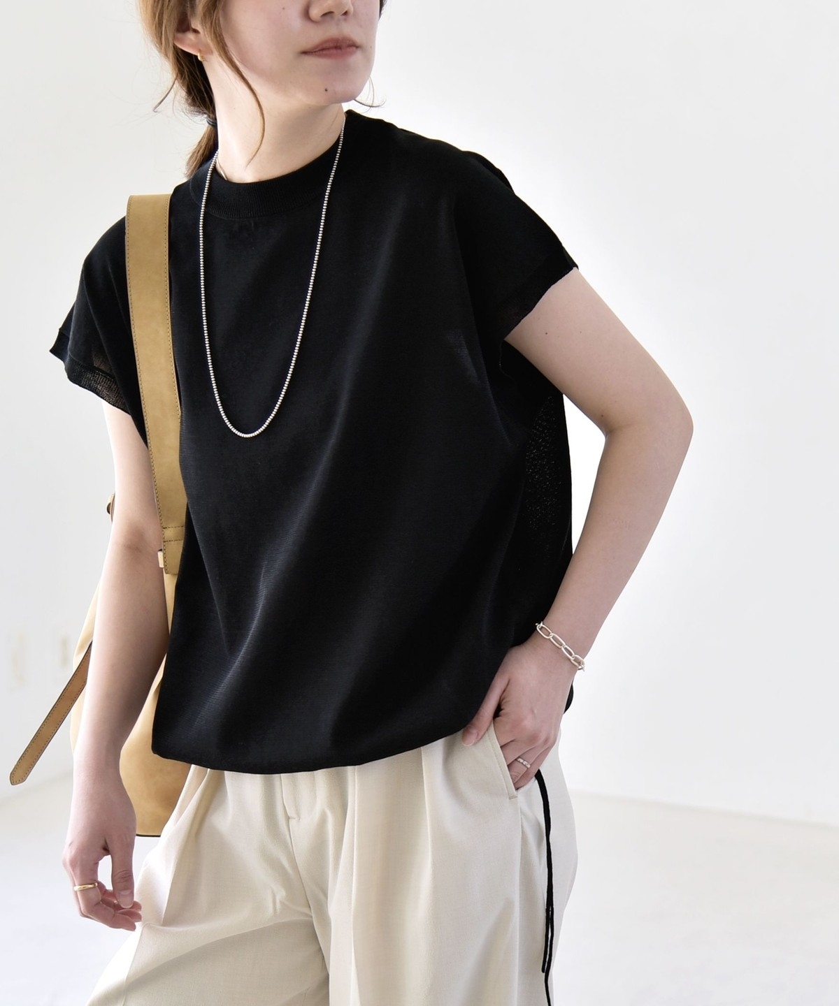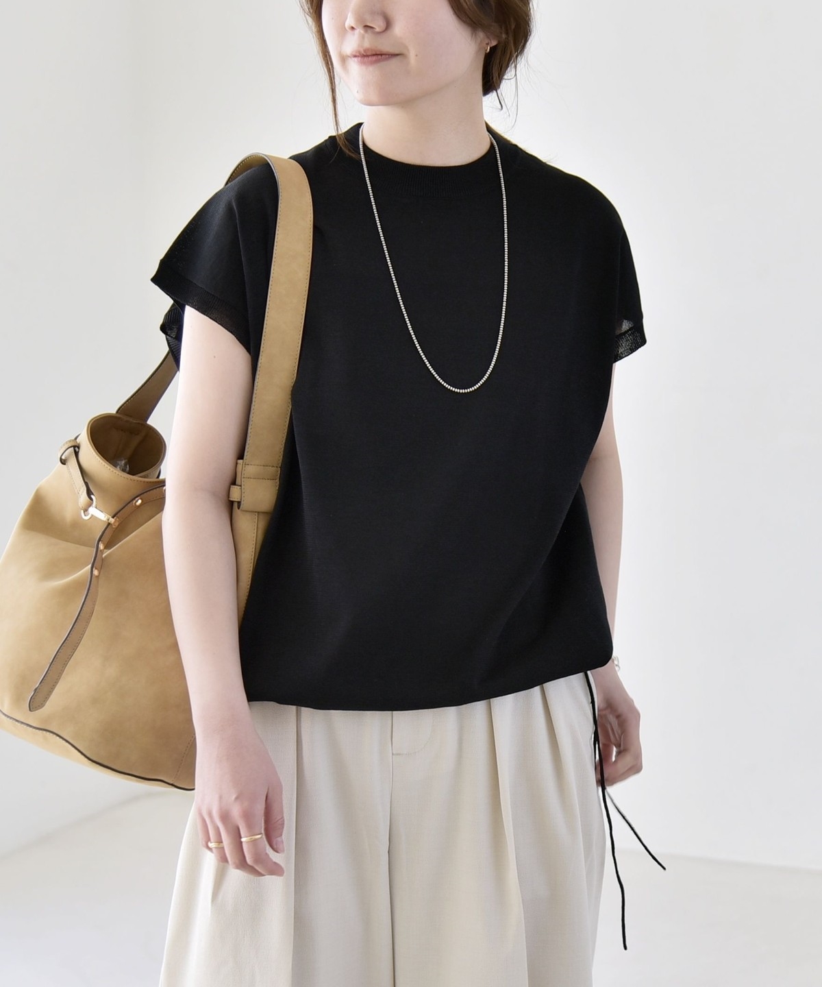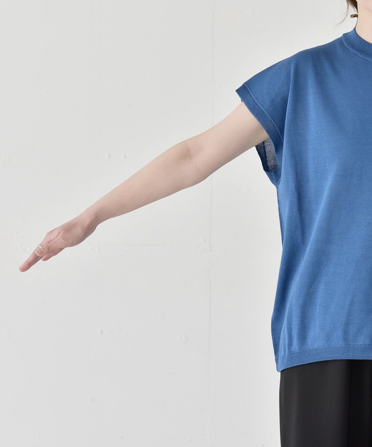 広めの肩幅で、気になる肩や二の腕周りをカバーしながら、暑い時期にも涼しく着用可能。