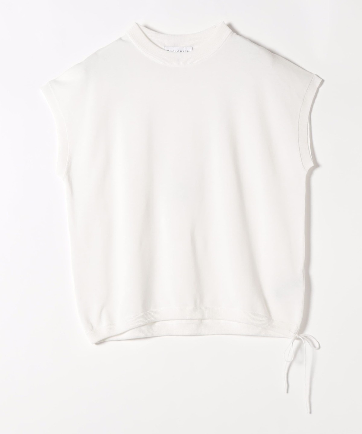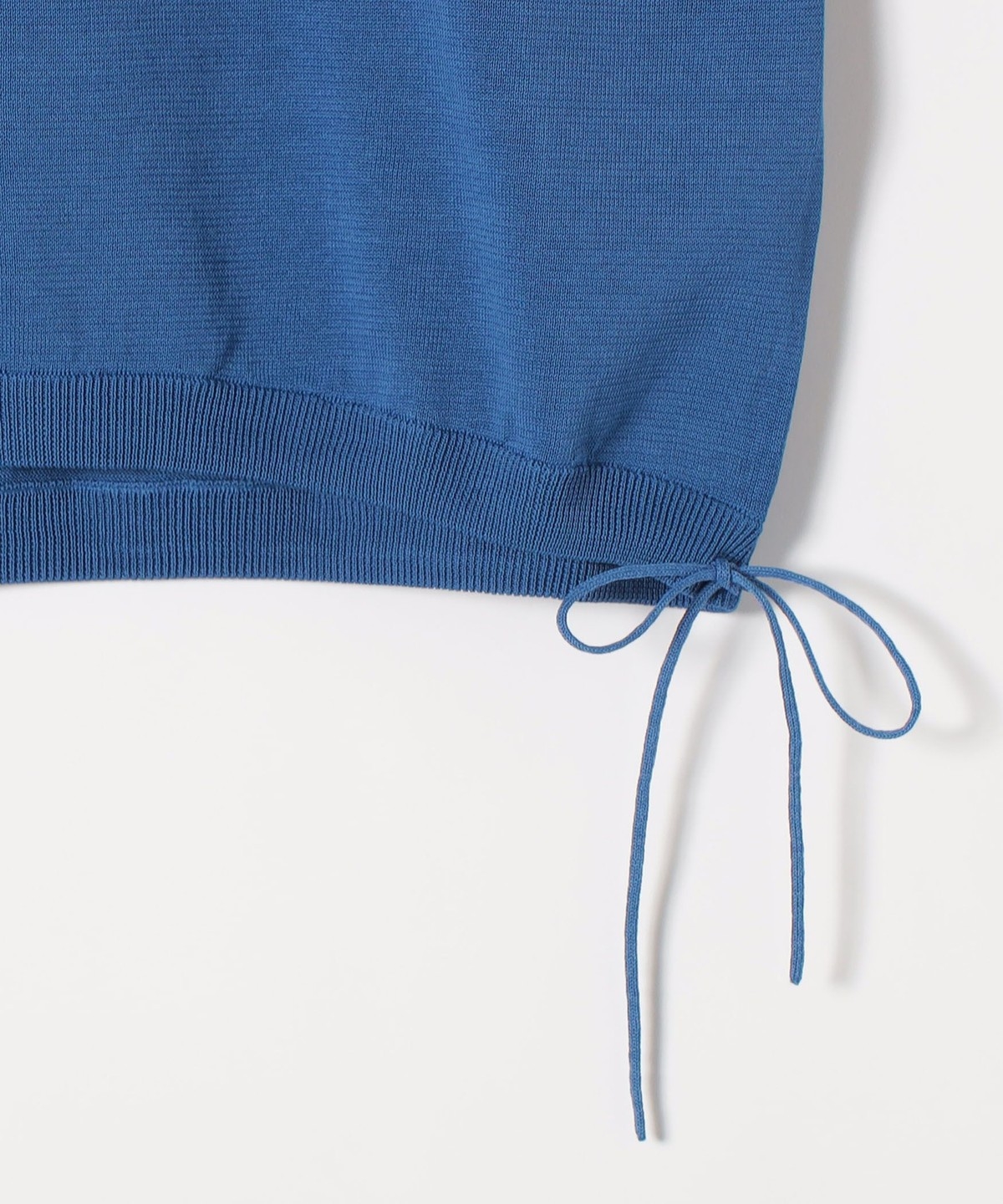 裾リブ部分にぐるっと紐が通っており、左脇の結び目で絞り具合の調整が可能。