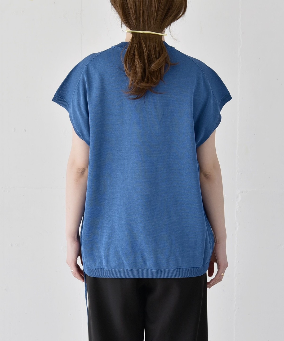 着心地:さっぱりとした肌触り。首に沿うネックラインが安心感があります。きゅっと結んだ時のサイドのリボンもポイントになって◎