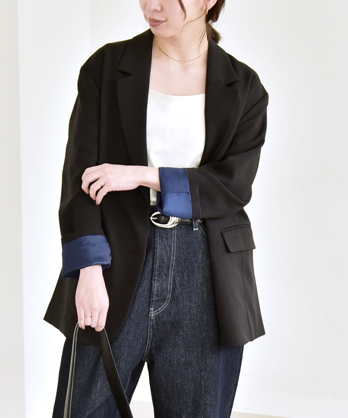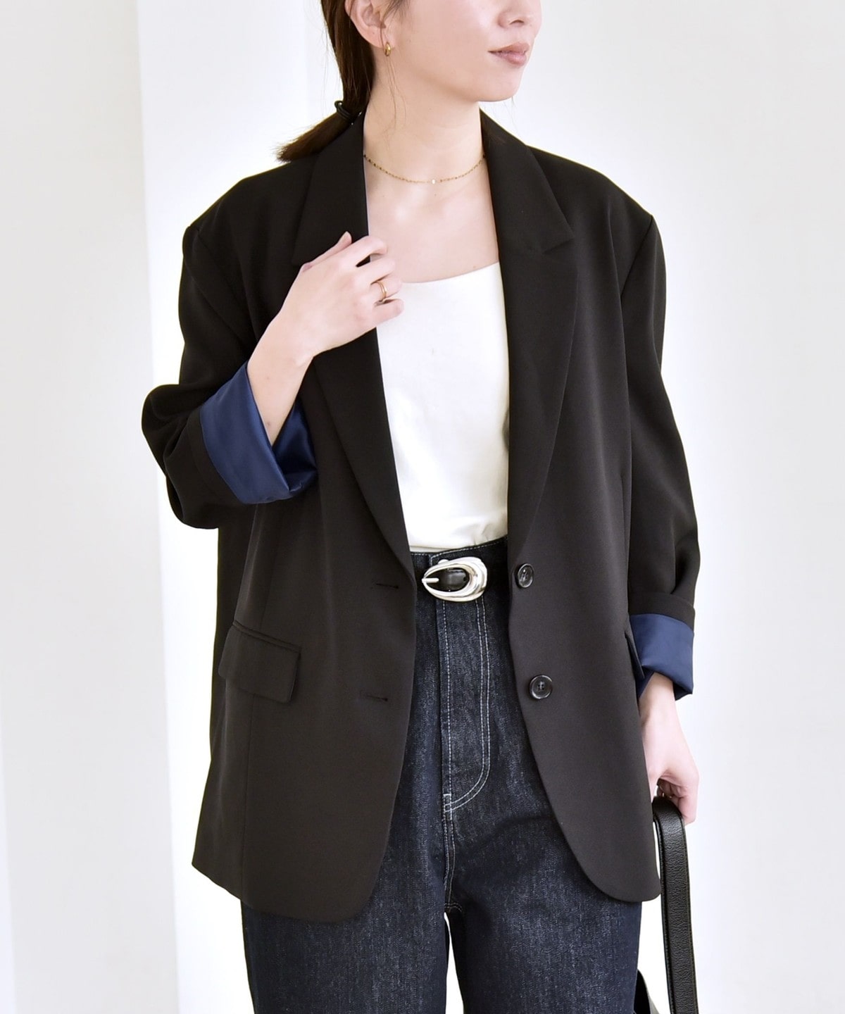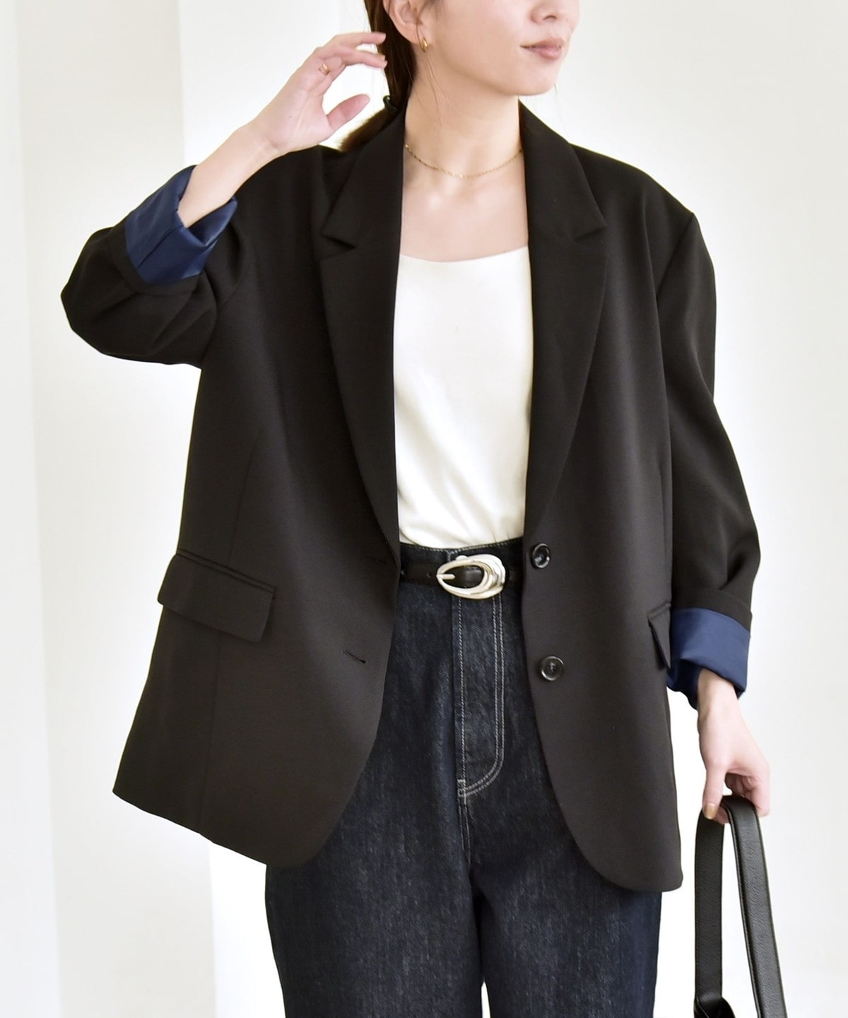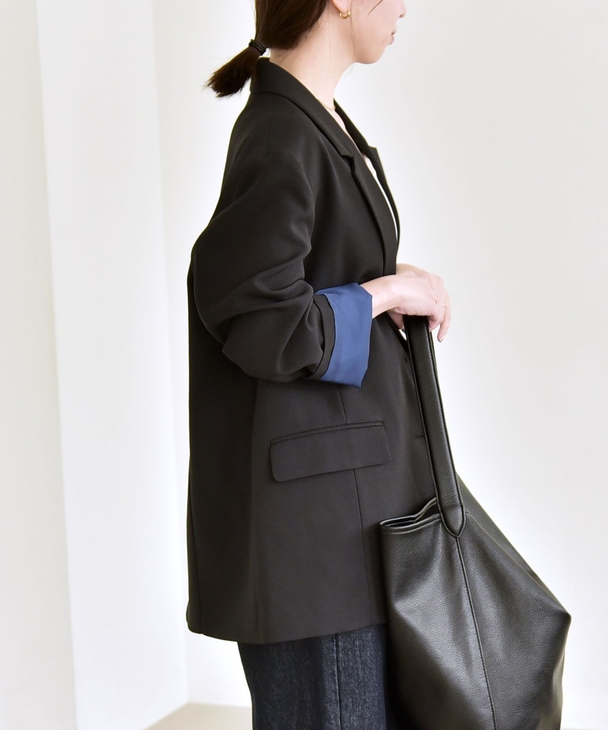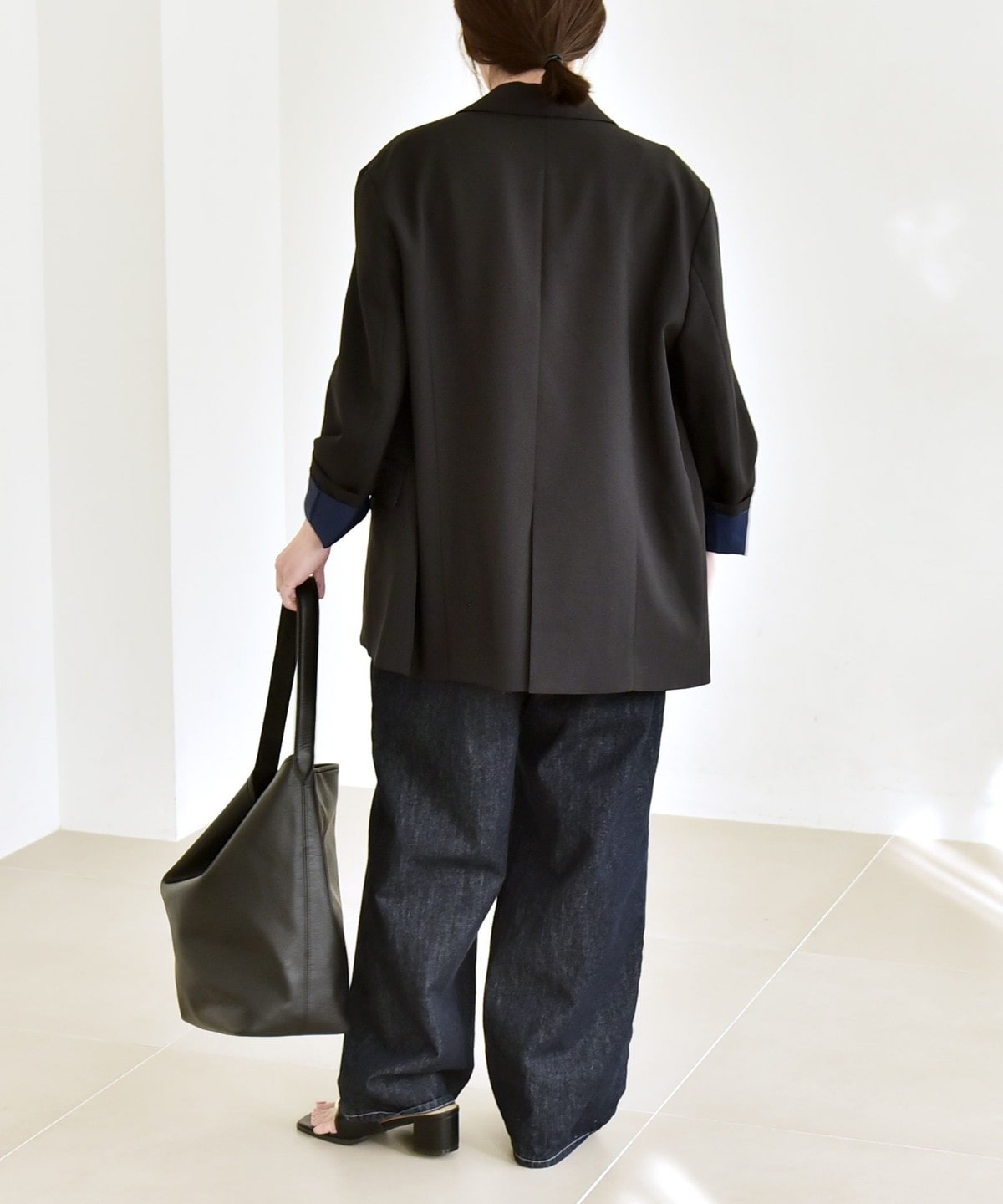 肩に適度な構築感を持たせつつ、身頃はゆったりとした直線的なラインで仕上げ、抜け感とモードさを兼ね備えた一枚。