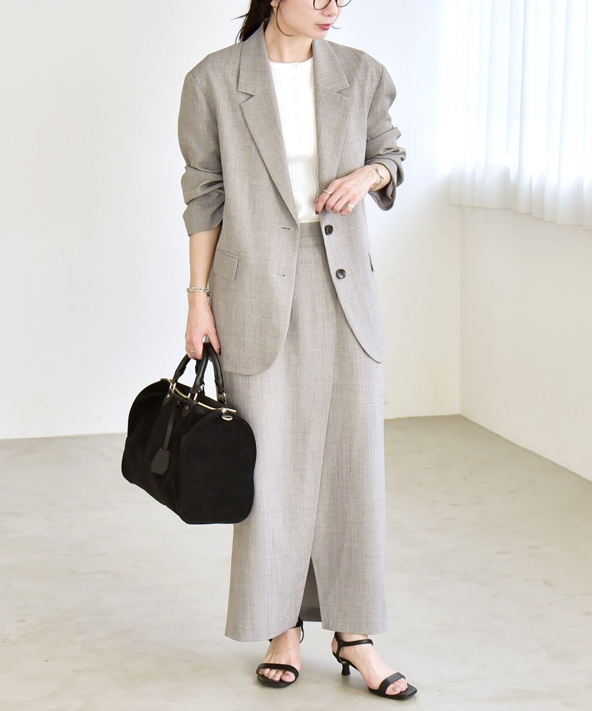 同素材のスカートと合わせればオフィススタイルにぴったり。