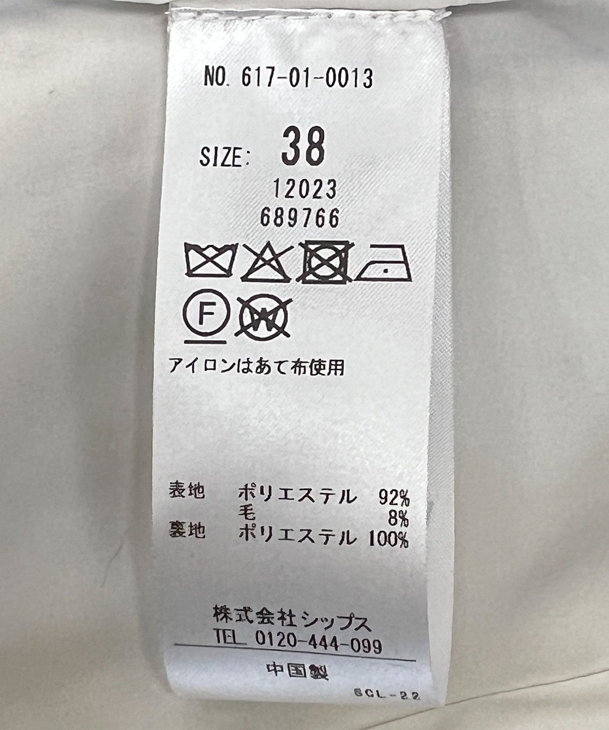 素材:表地: ポリエステル92%, 毛8%, 裏地: ポリエステル100%