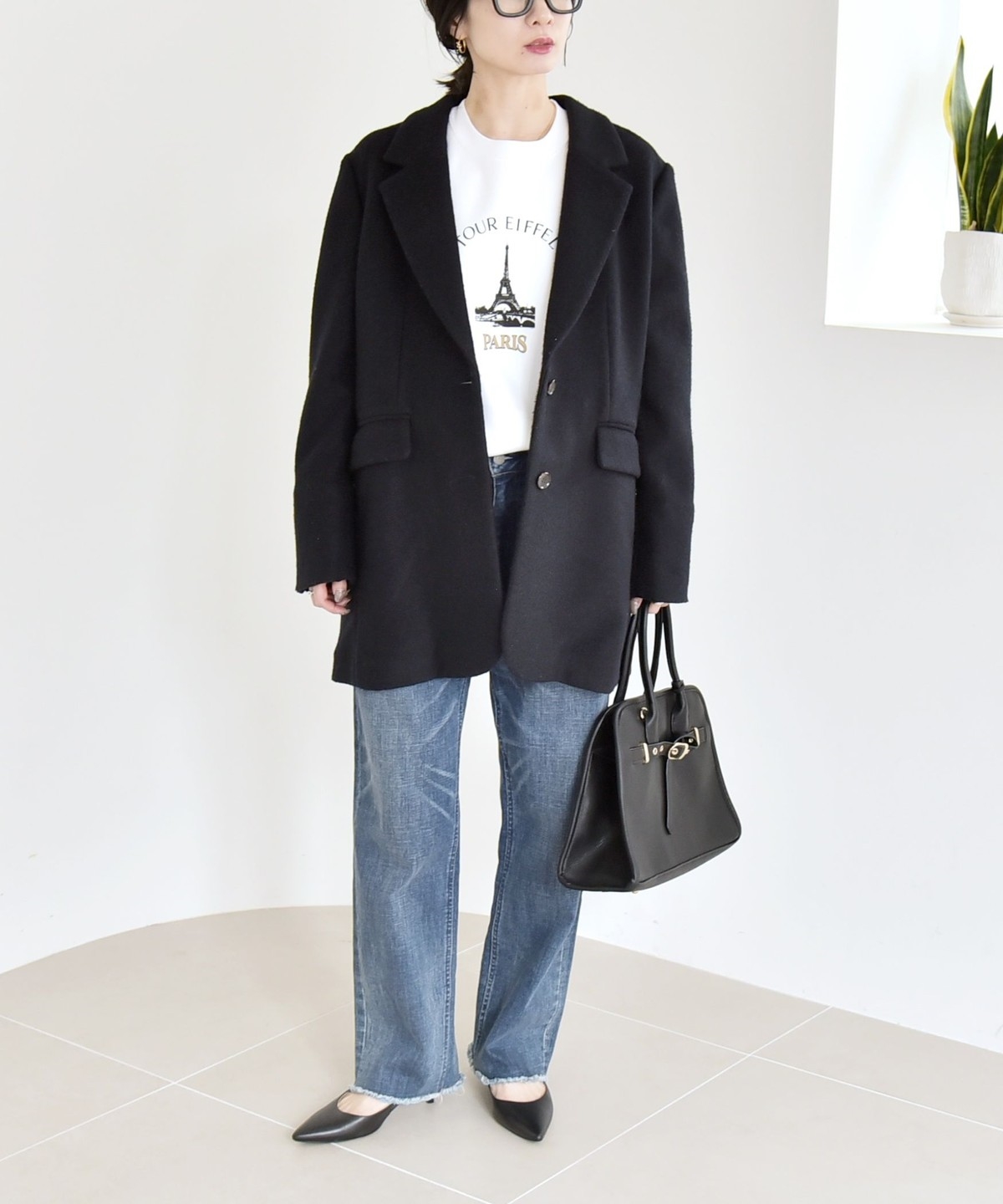 着心地:きちんと見えはしますが、かっちりしすぎてなくて◎ビッグジャケットのような感覚でさっと羽織れます。