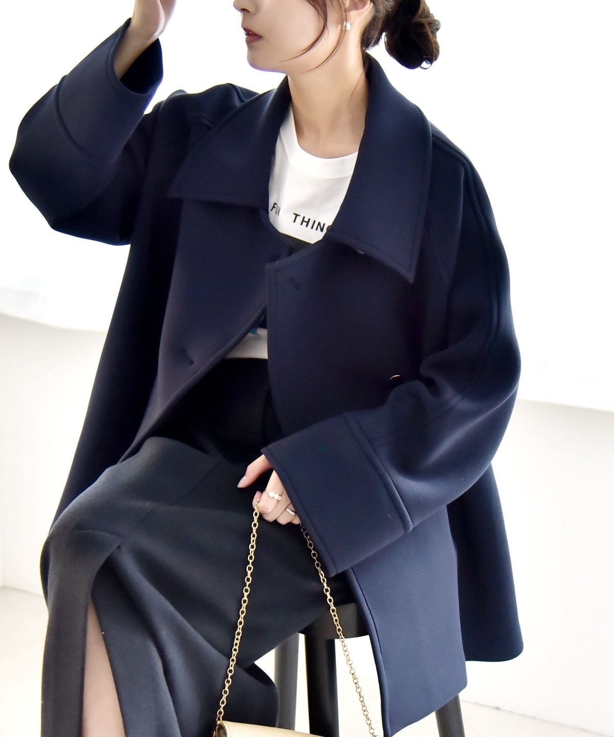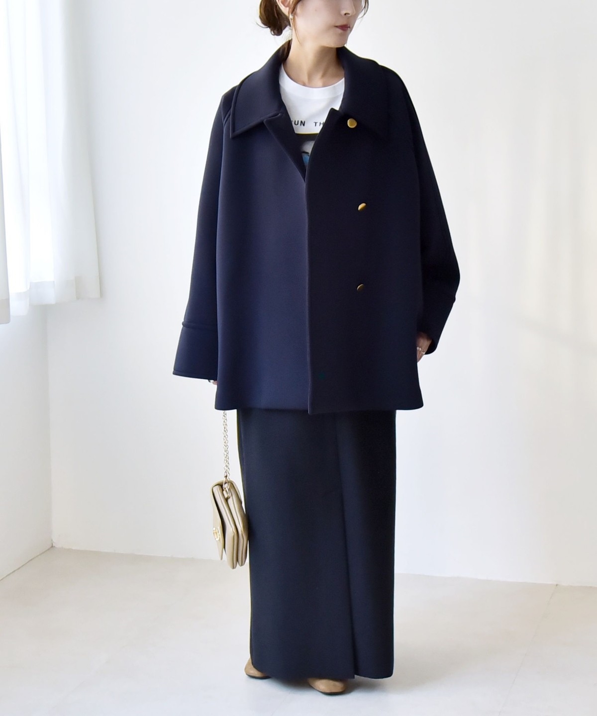 ミディ丈のアウターなので、ボトムを選ばず着回し力抜群のアイテムです。