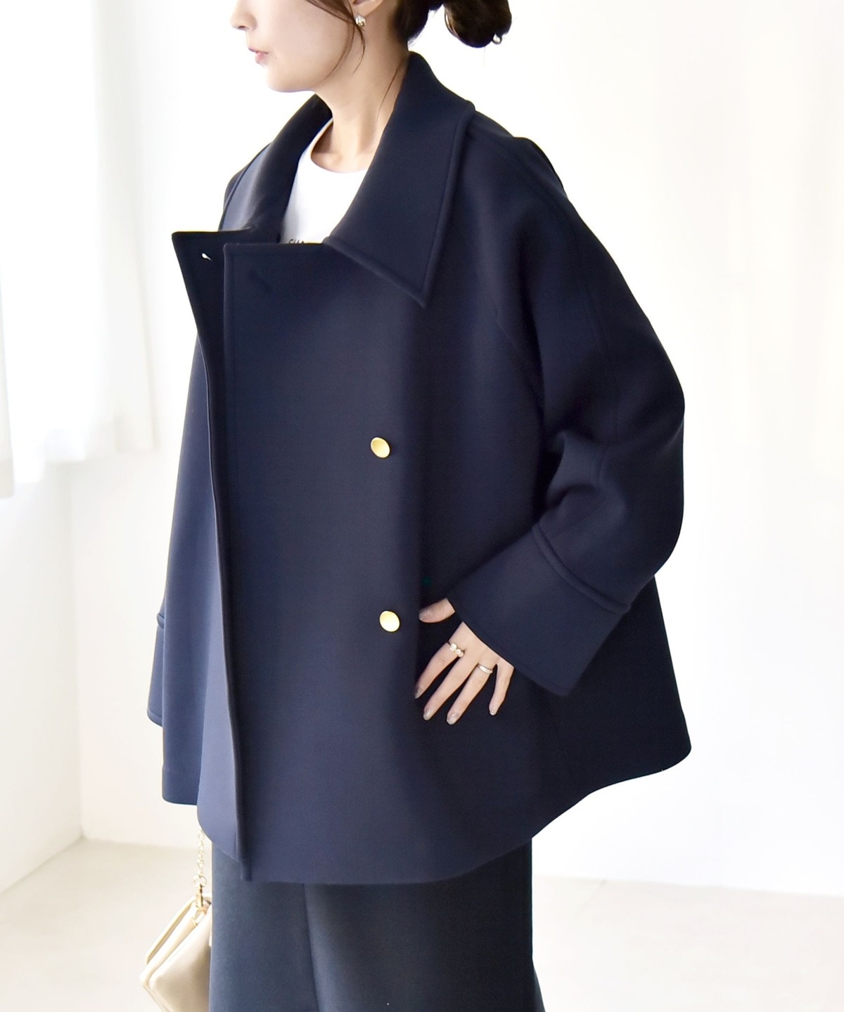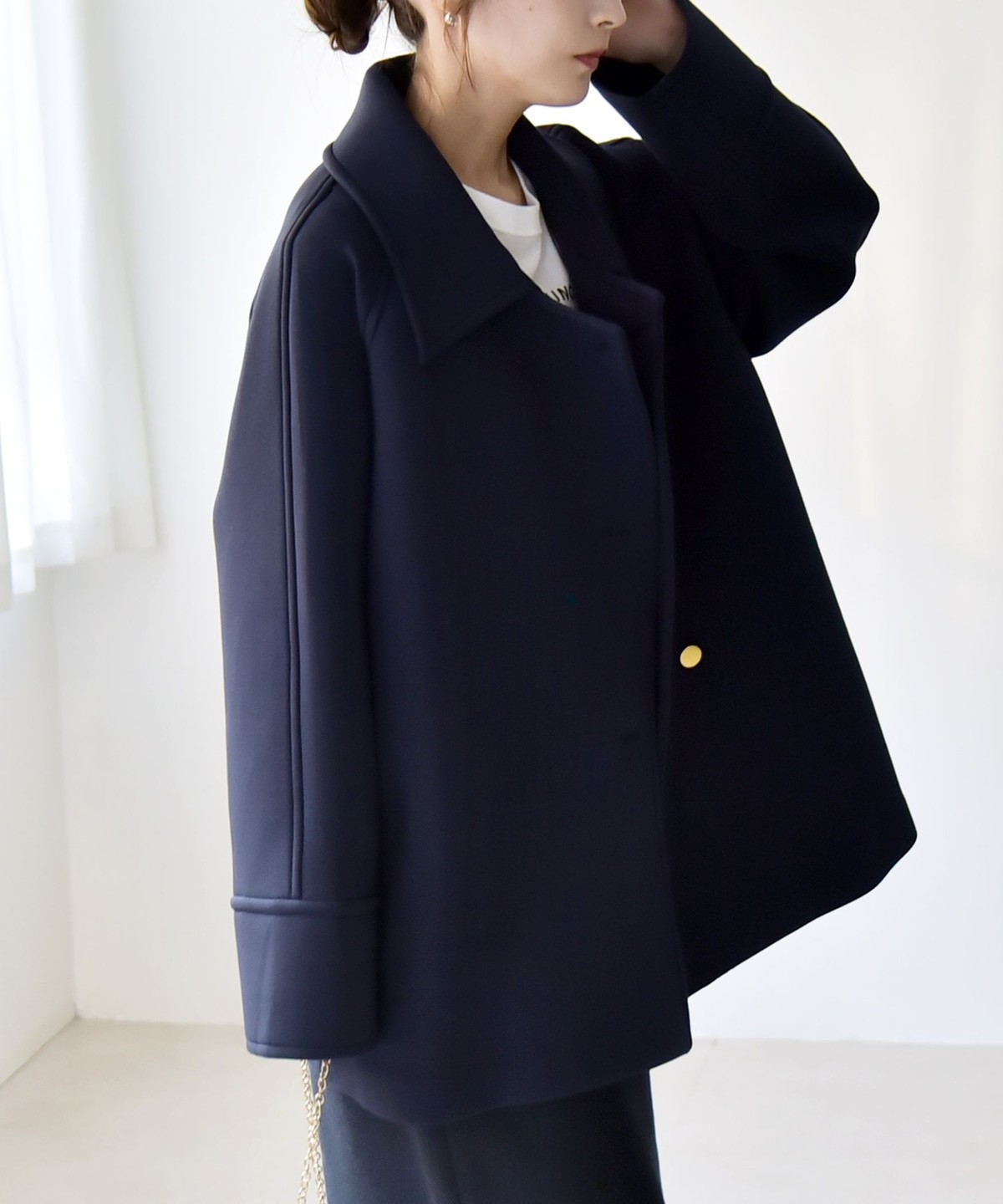 ジャケットとコートの中間くらいのアイテムなので、端境期にぴったりの1枚です。
