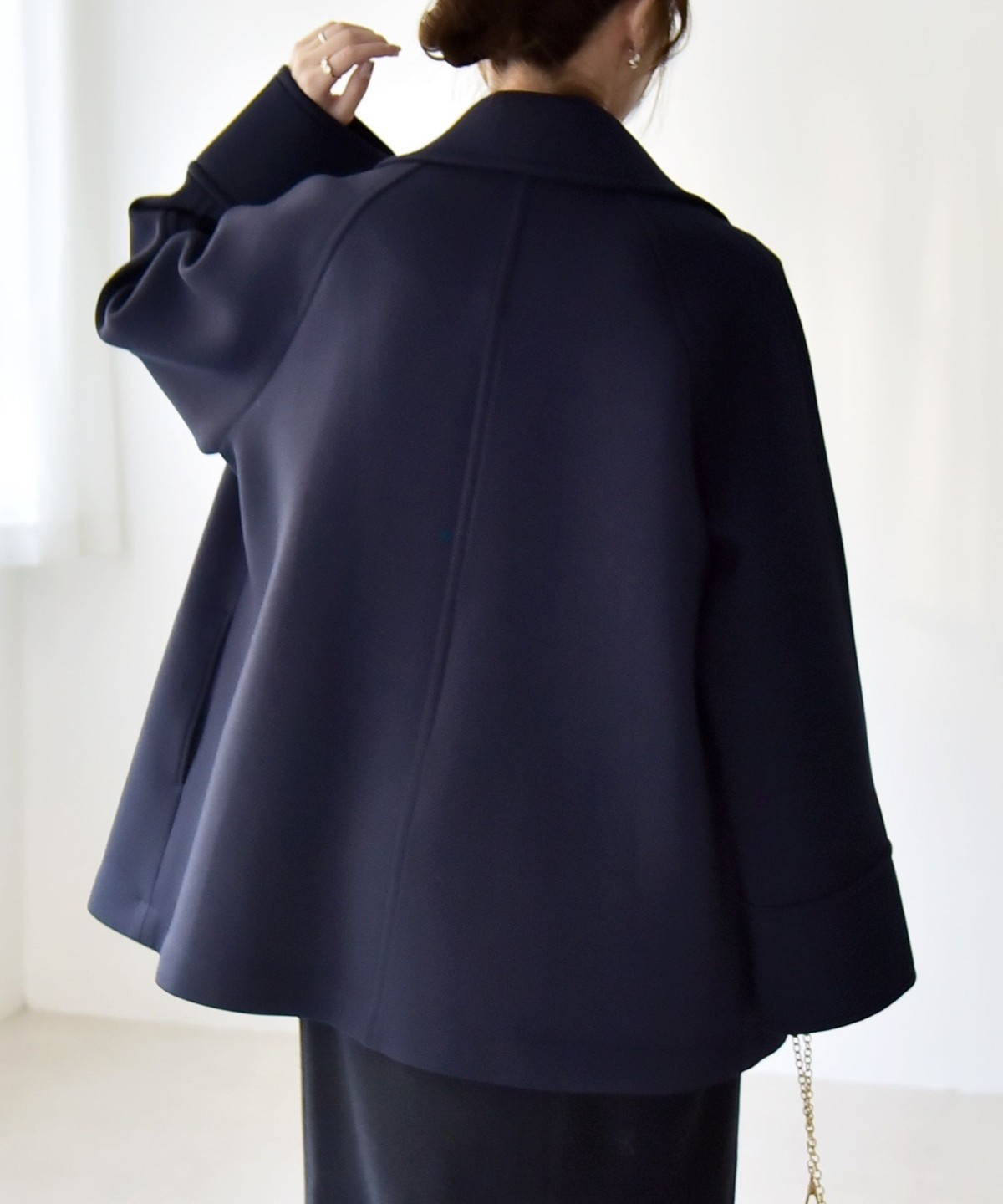 Aラインシルエットのアウターなので、ワンピースの上からさっと羽織っても◎