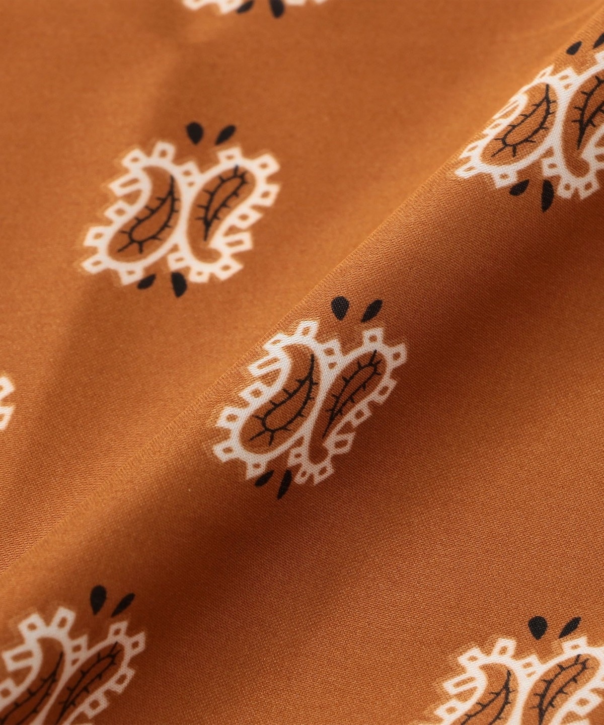 シックなカラーとペイズリー柄は、大人カジュアルなスタイルにピッタリです。