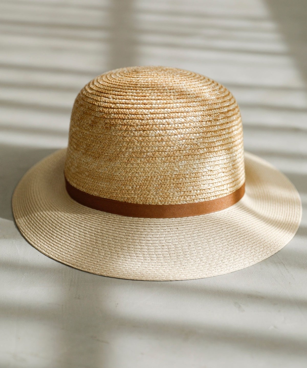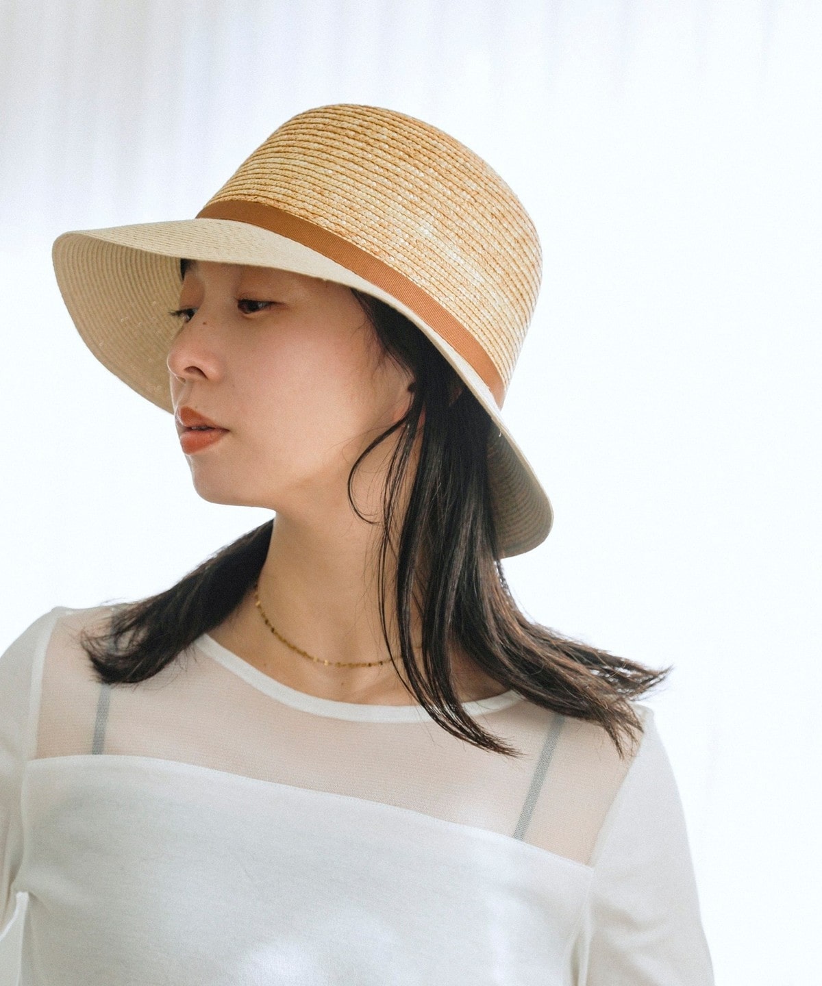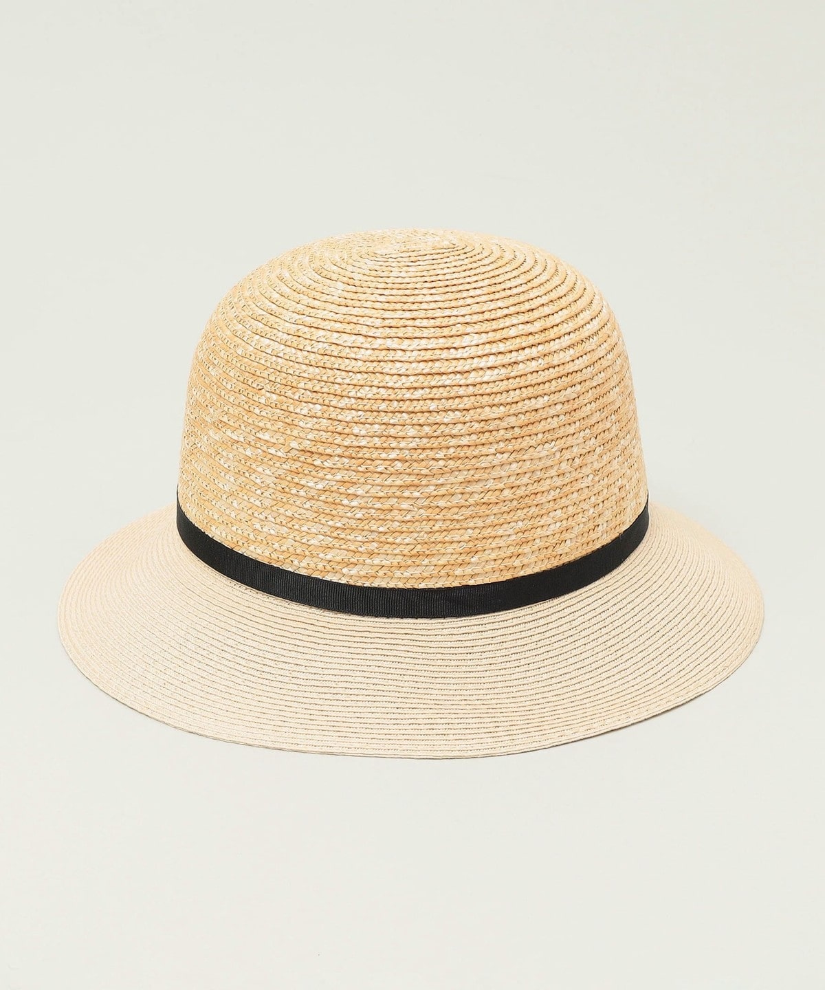 シンプルな形ながら、素材の切り替えや丸いシルエットでオシャレ感の出る麦わら帽子。