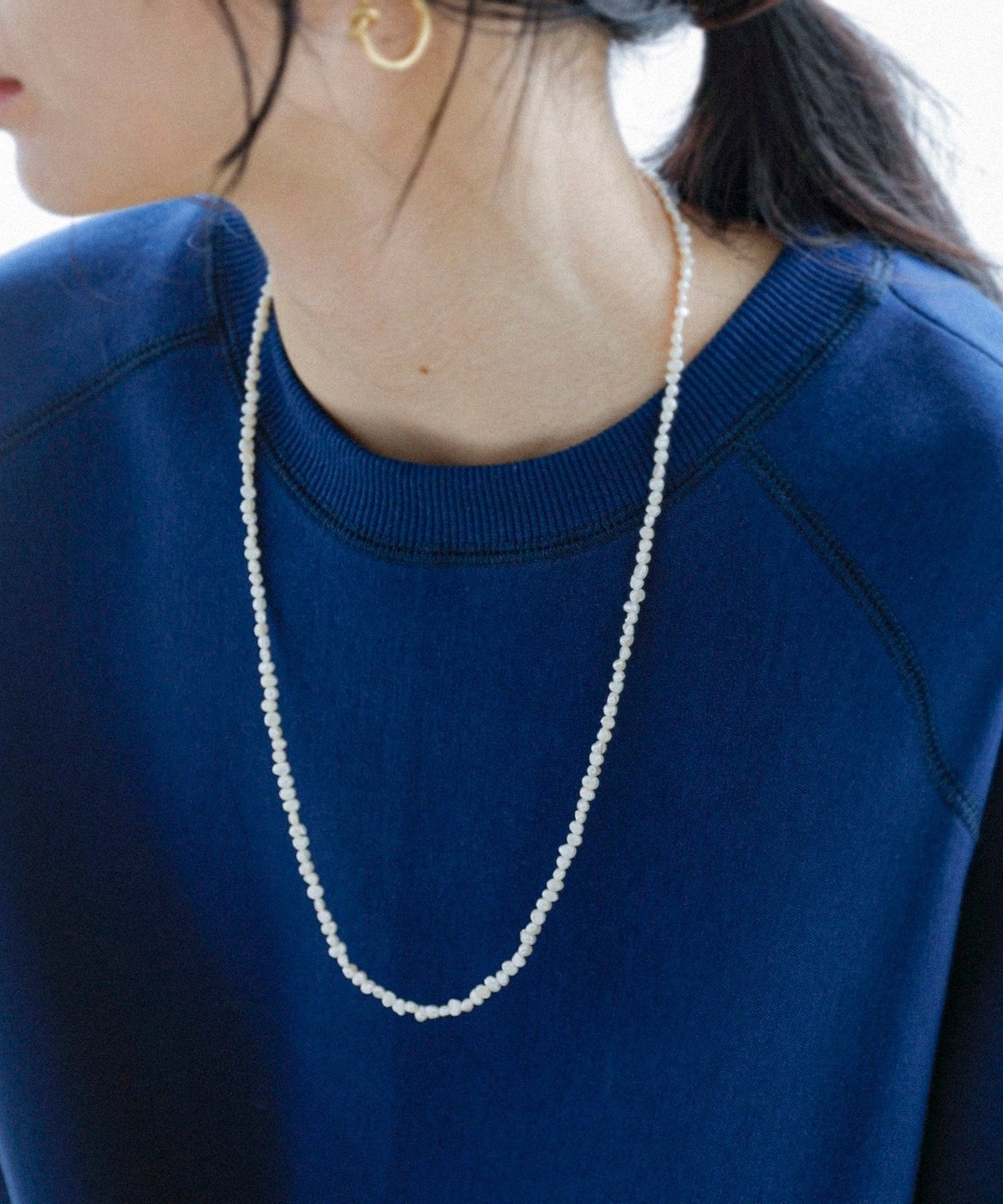 シーンを問わず、一つ持っておくと重宝するミニマルなデザインのパールネックレスです。