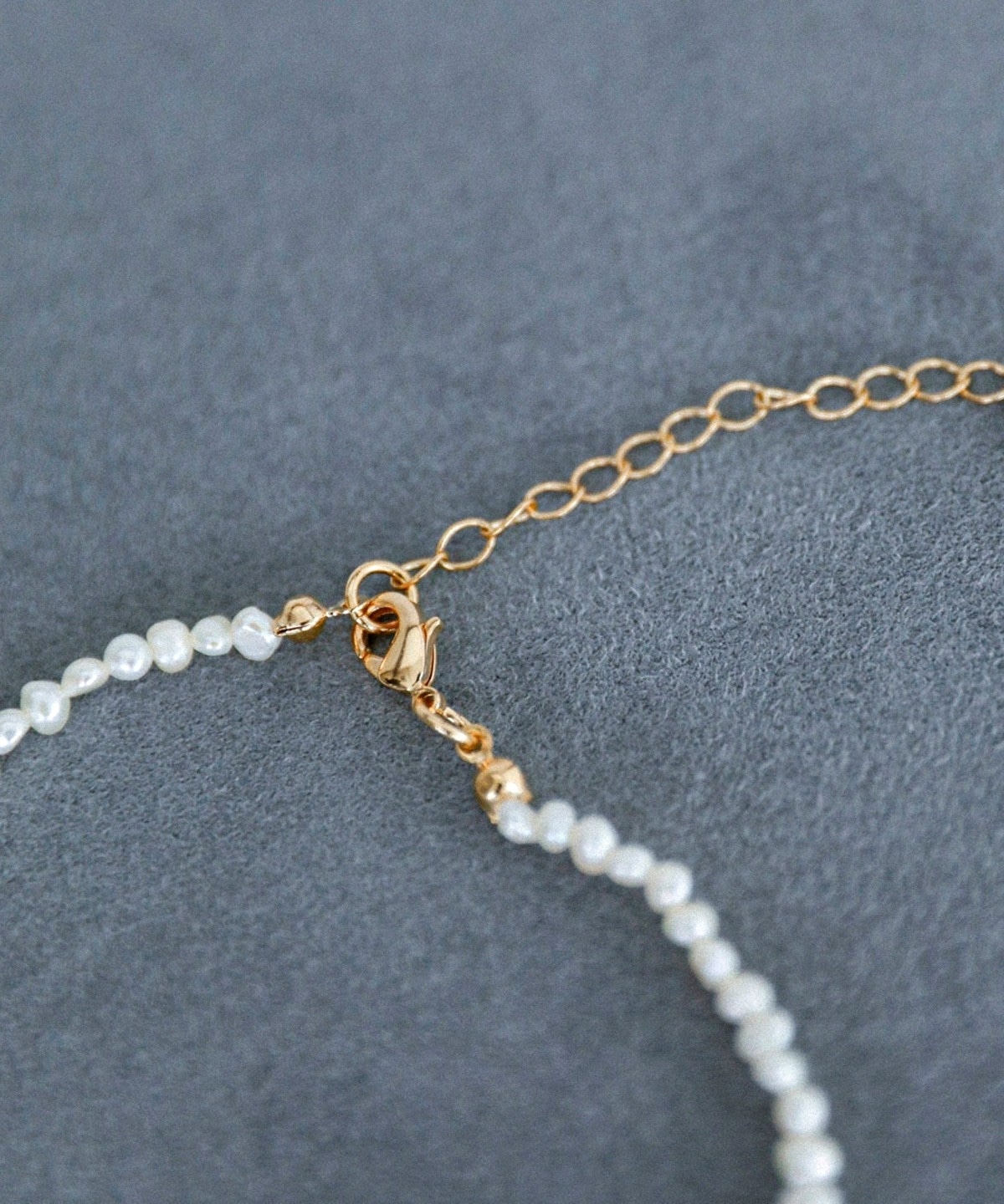 小ぶりな淡水パールがやわらかな光沢感を放ち、女性らしさを引き立ててくれます。