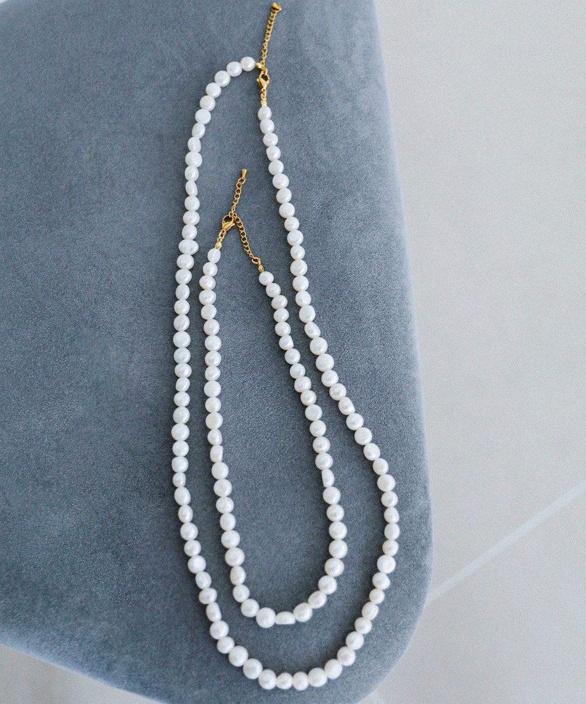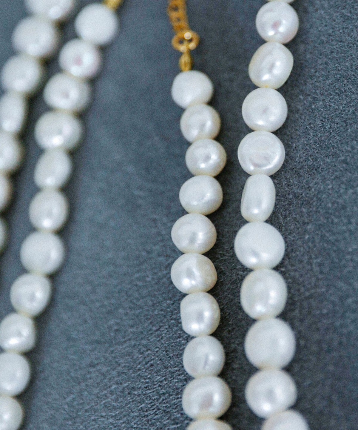 コーディネートを華やかに仕上げてくれる淡水パールネックレス。