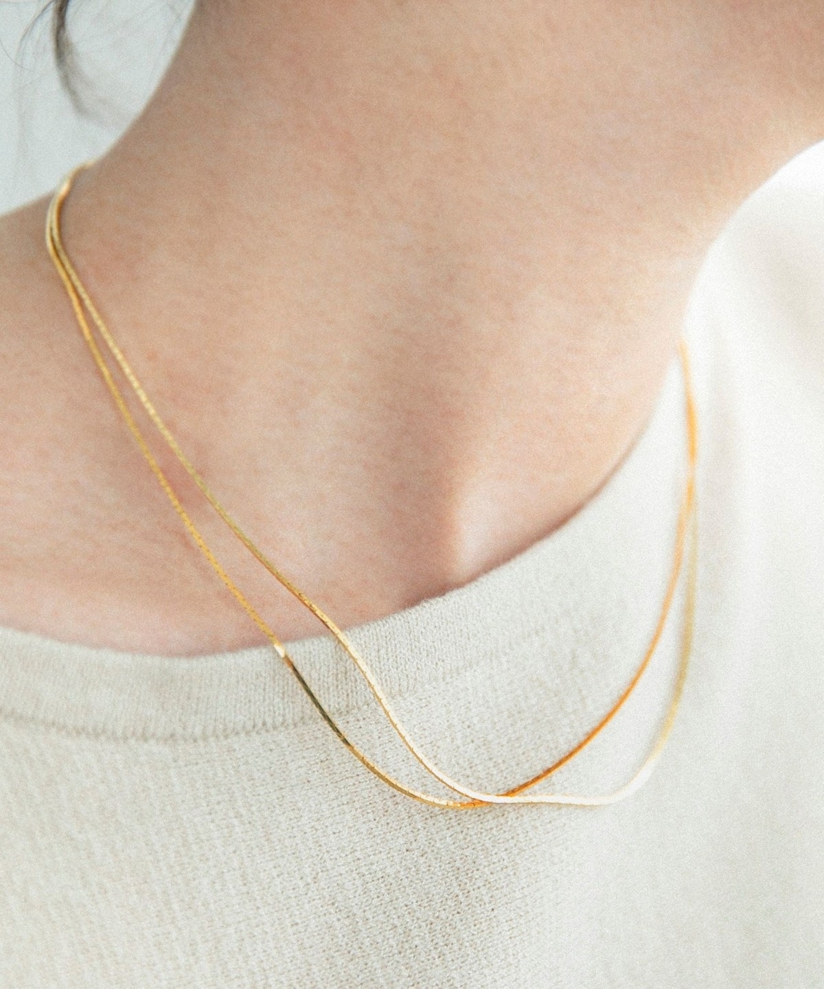 華奢なチェーンが女性らしい2連ネックレス。