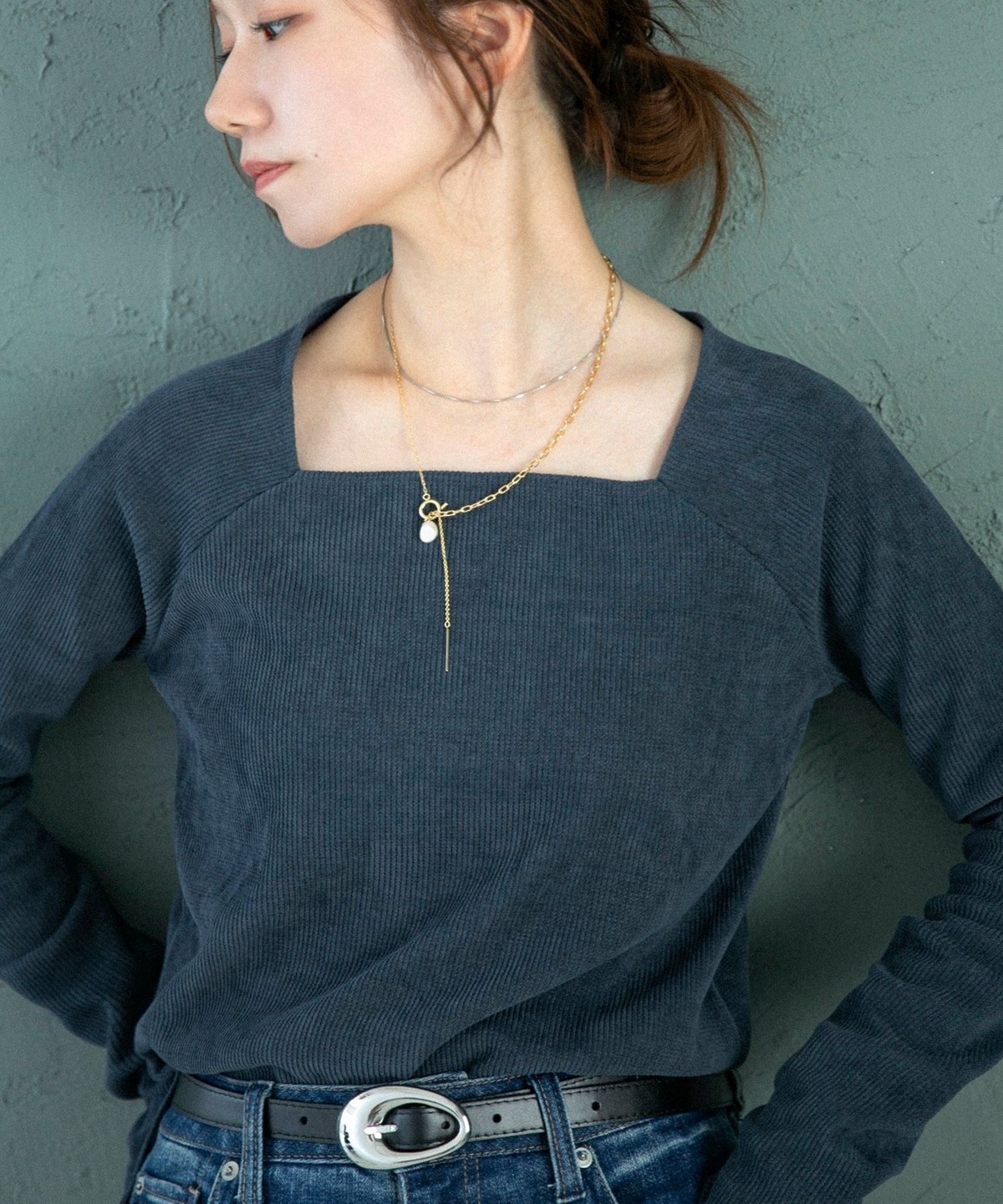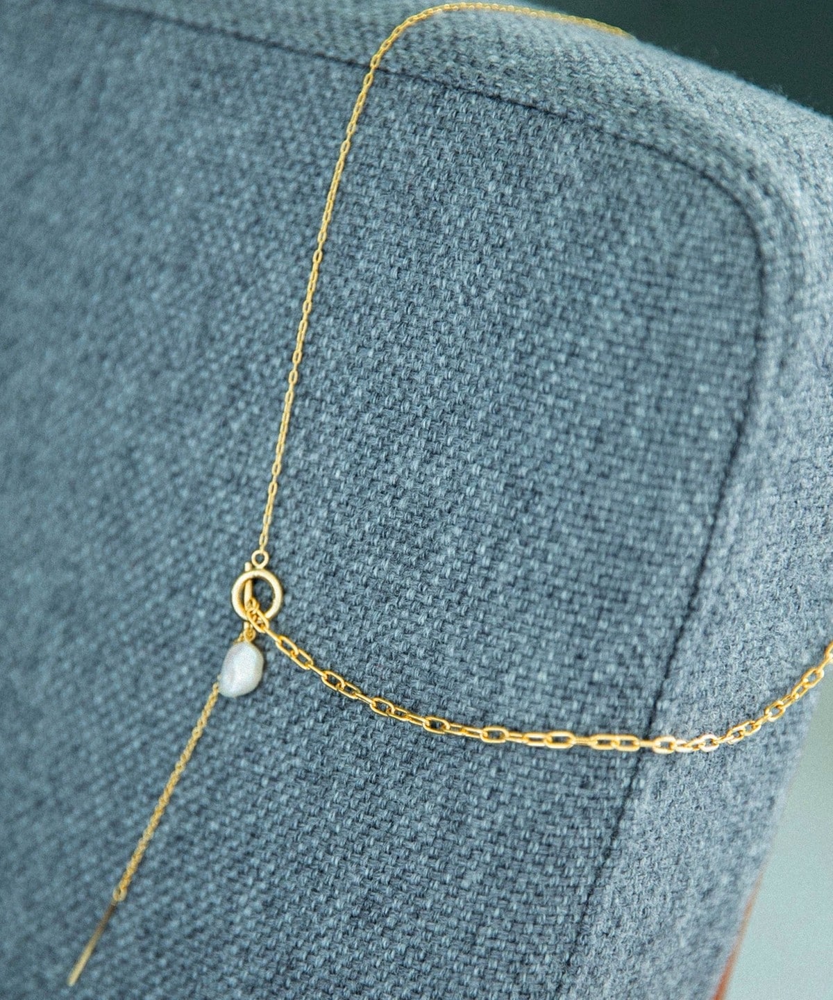 長さのあるネックレスなので、シンプルなニットやブラウスにも映えるアイテム。