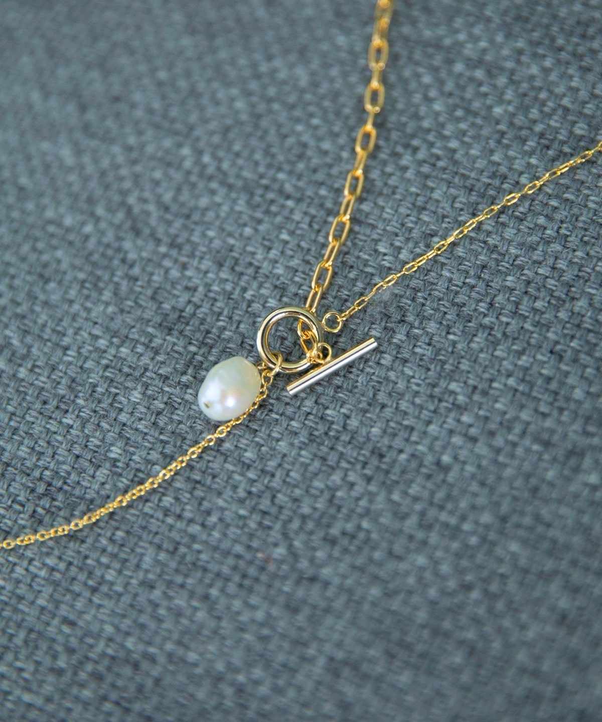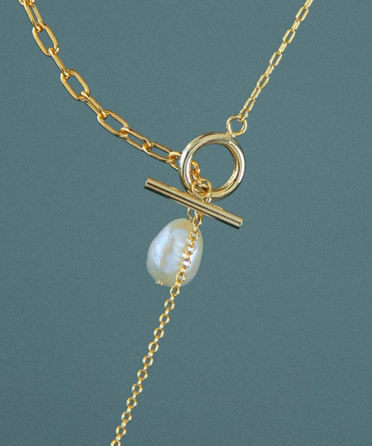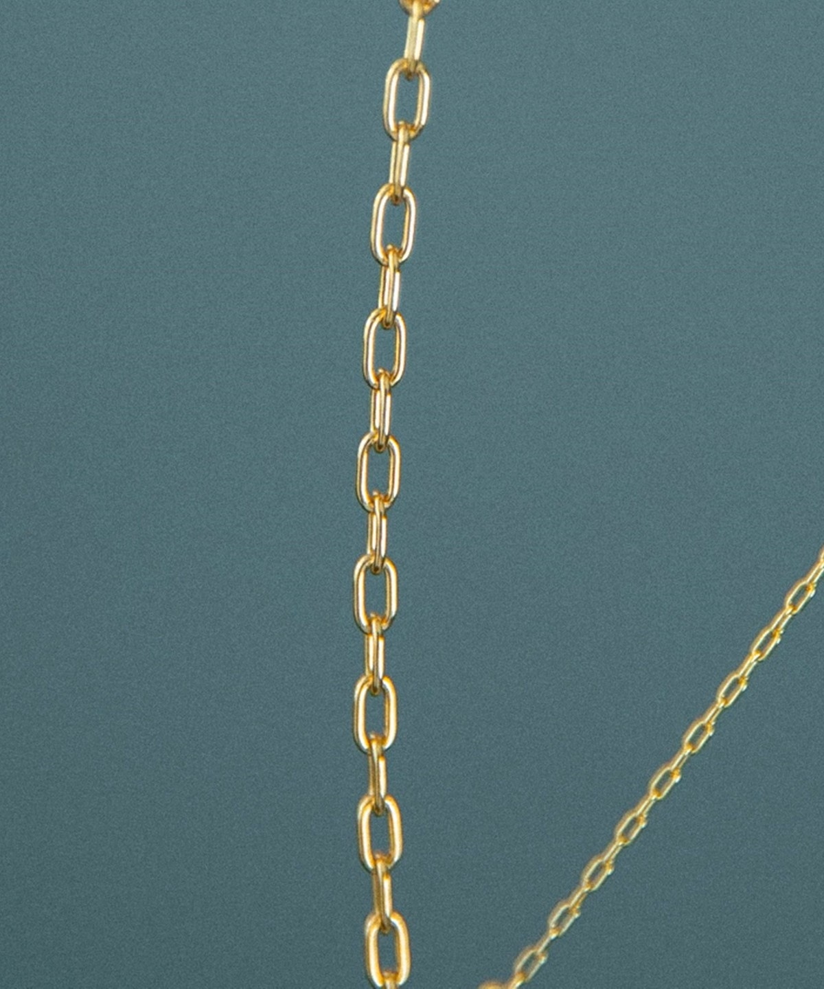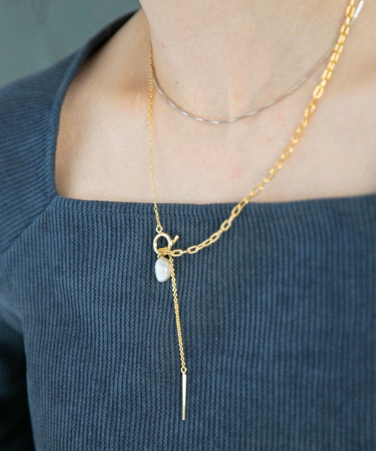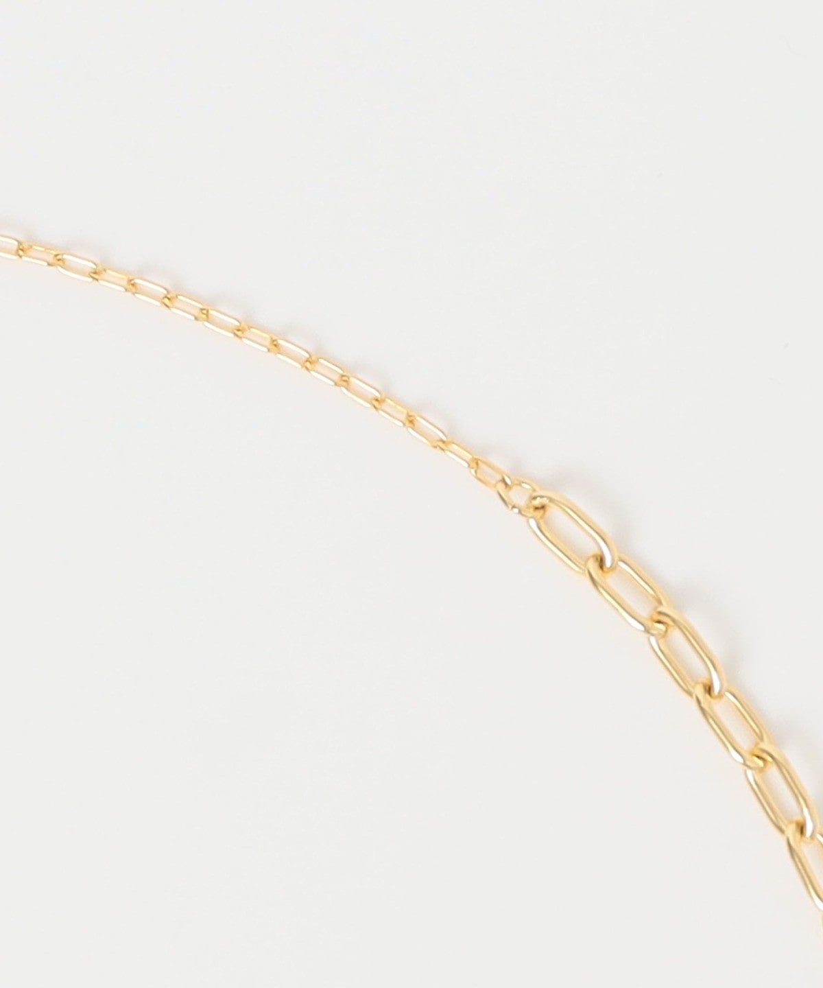 異なるチェーンを繋げたデザインがさりげないアクセントに。
