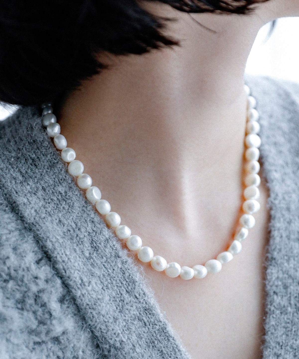 コーディネートを華やかに仕上げてくれる淡水パールネックレス。