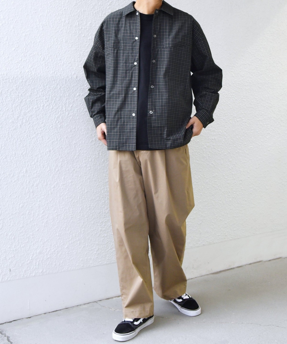 ハリ感のあるシャツ地ですので、扱いやすさがポイント。