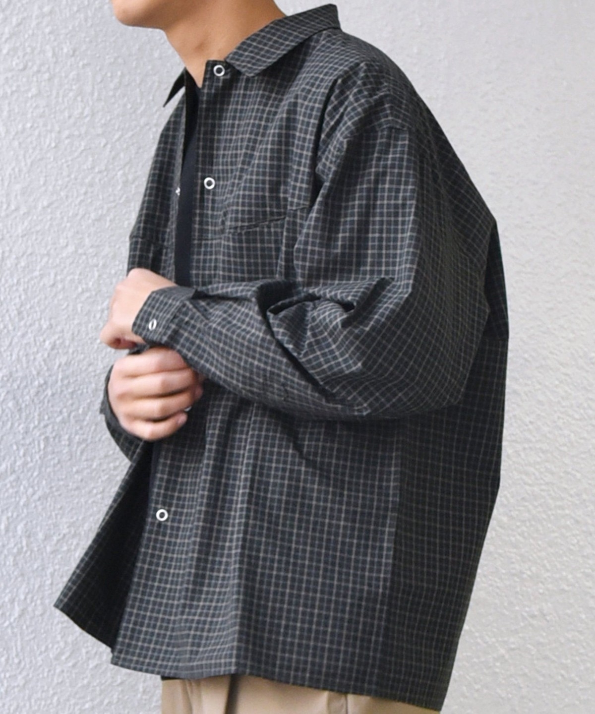 SHIPS any:〈洗濯機可能〉マイクロ チェック リング スナップボタン コーチ シャツ◆