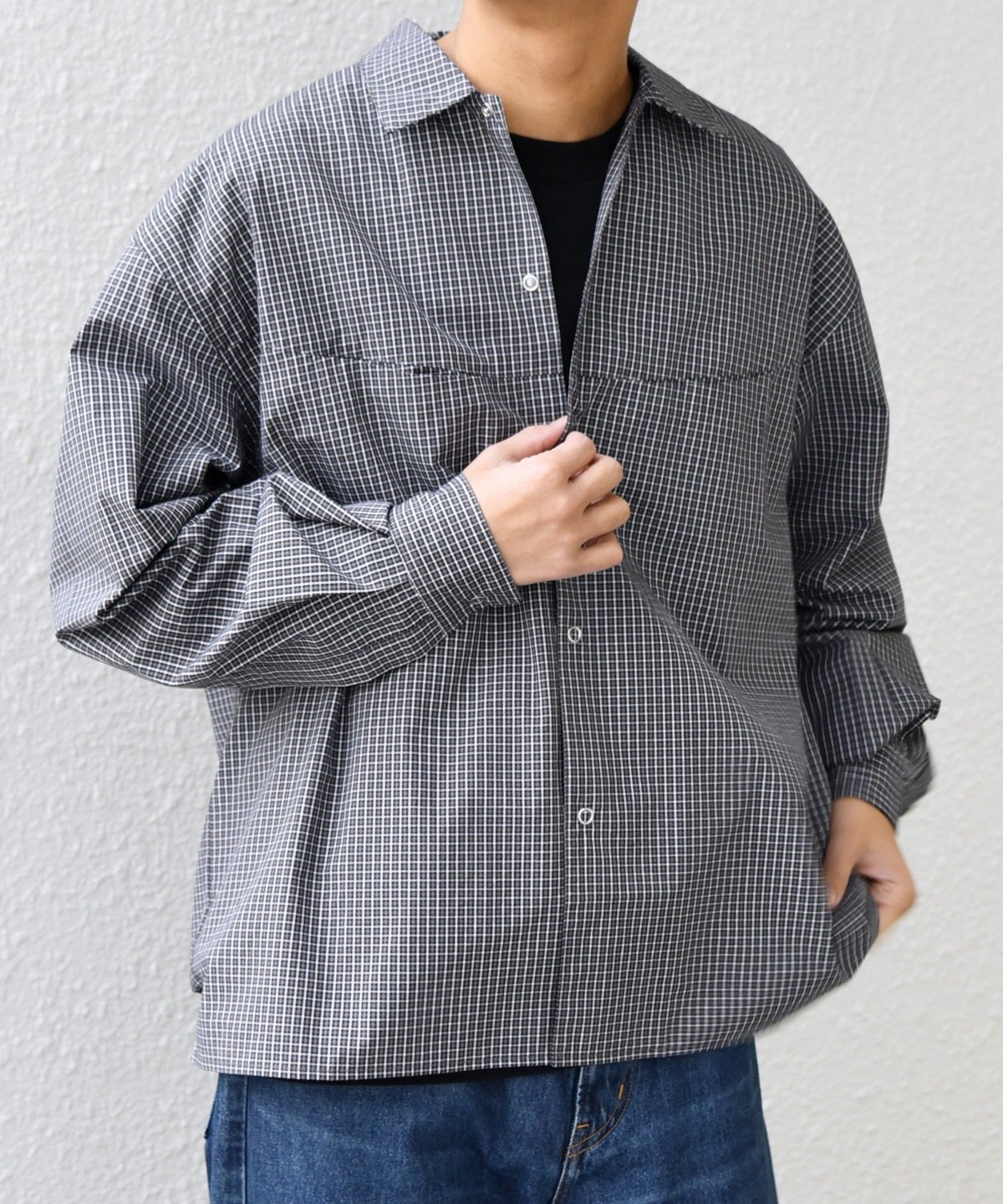 細かなチェック柄を採用した、カジュアルな印象のコーチシャツ。