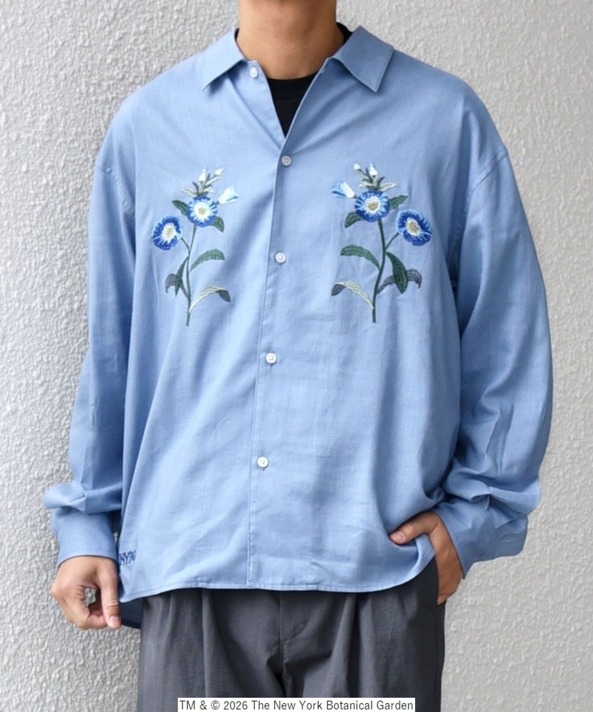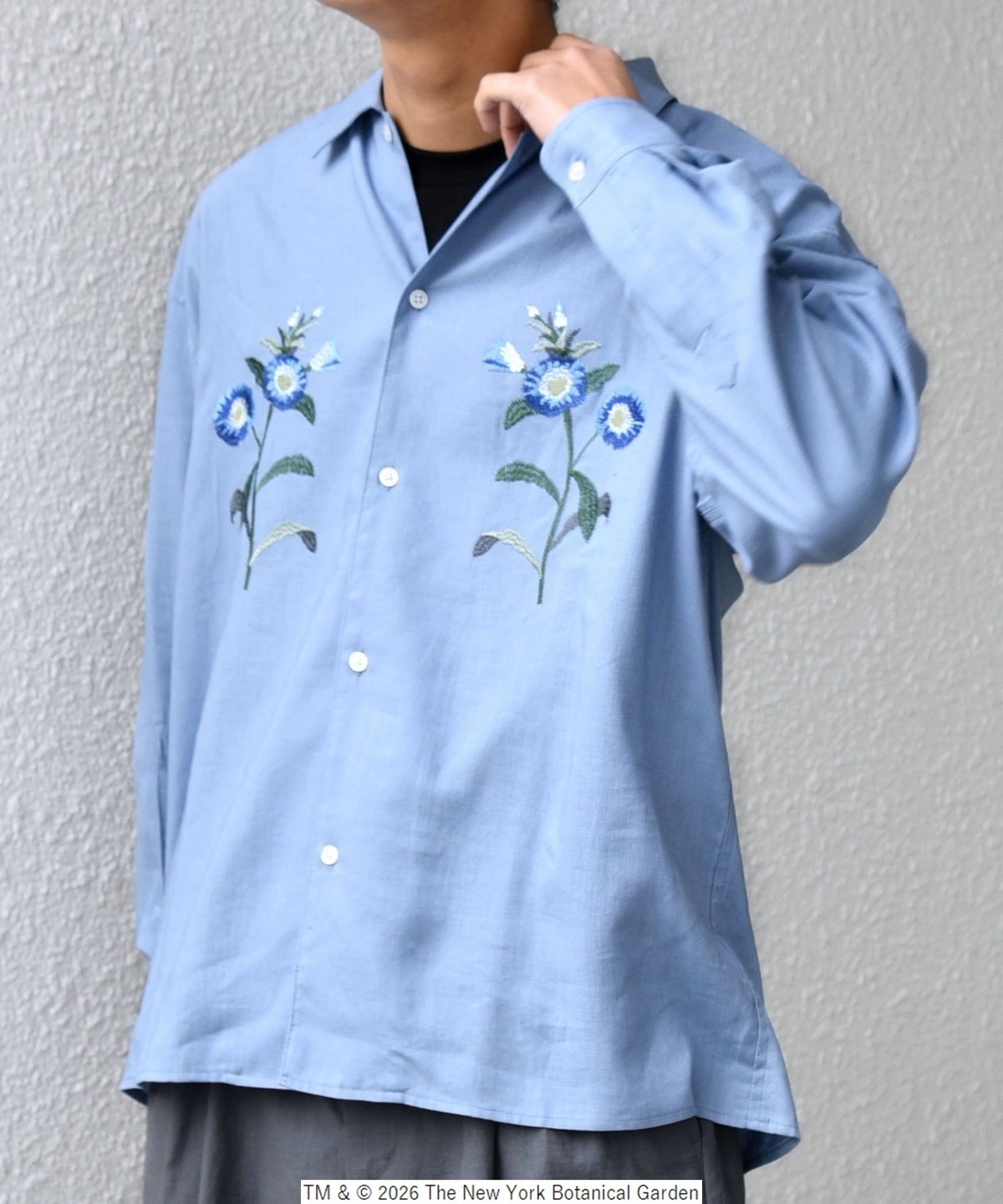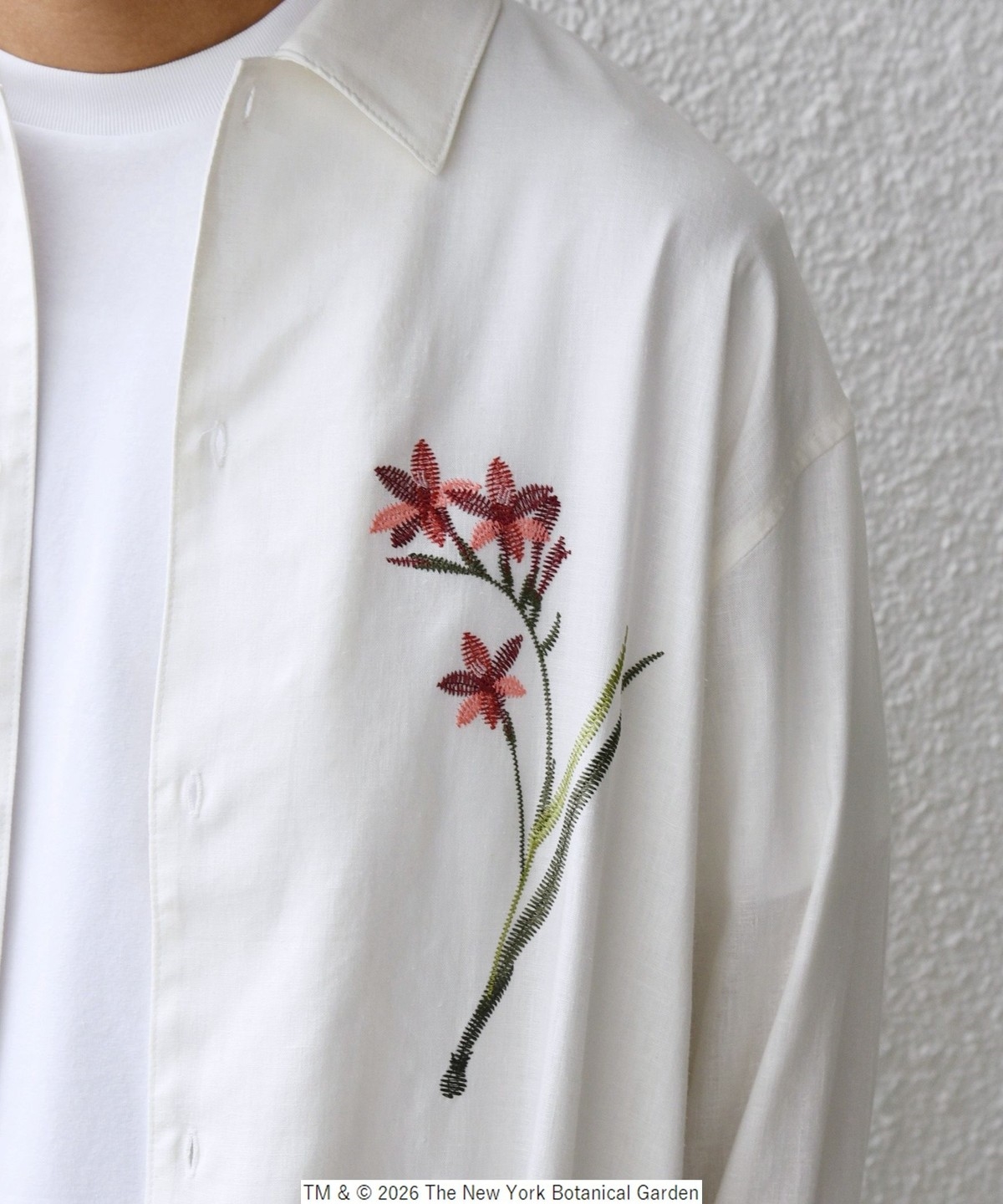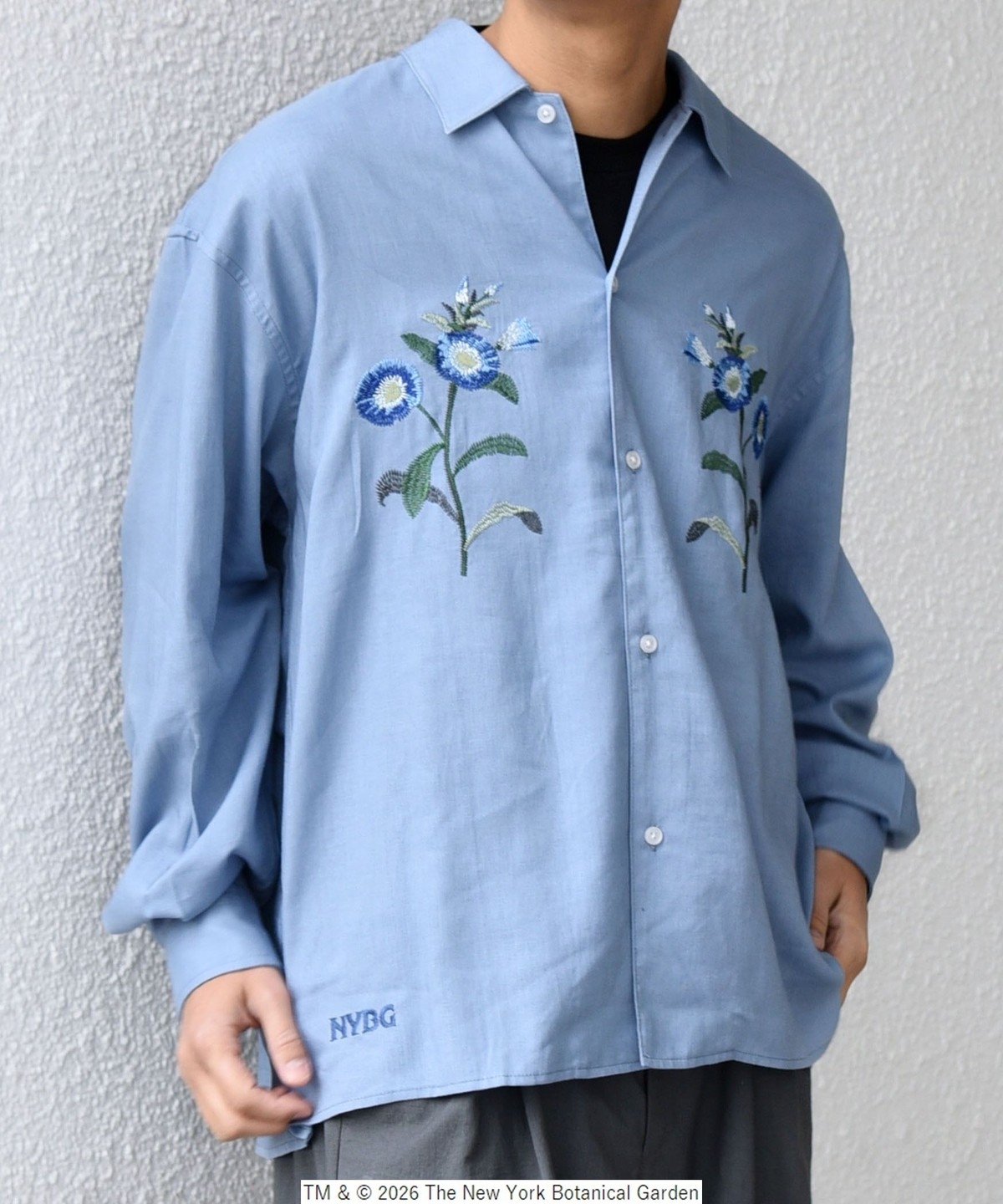 NYBG(The New York Botanical Garden)に別注した、フラワーモチーフの刺繍がポイントのシャツ