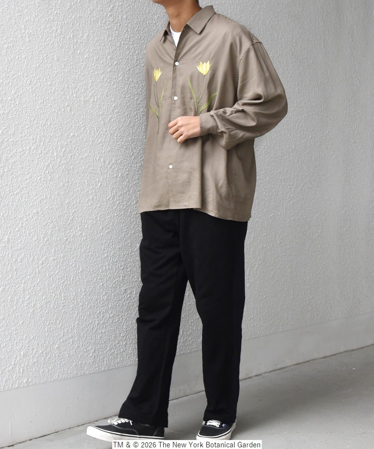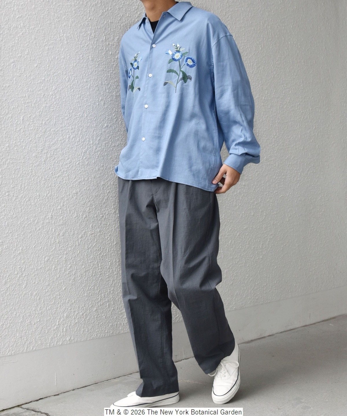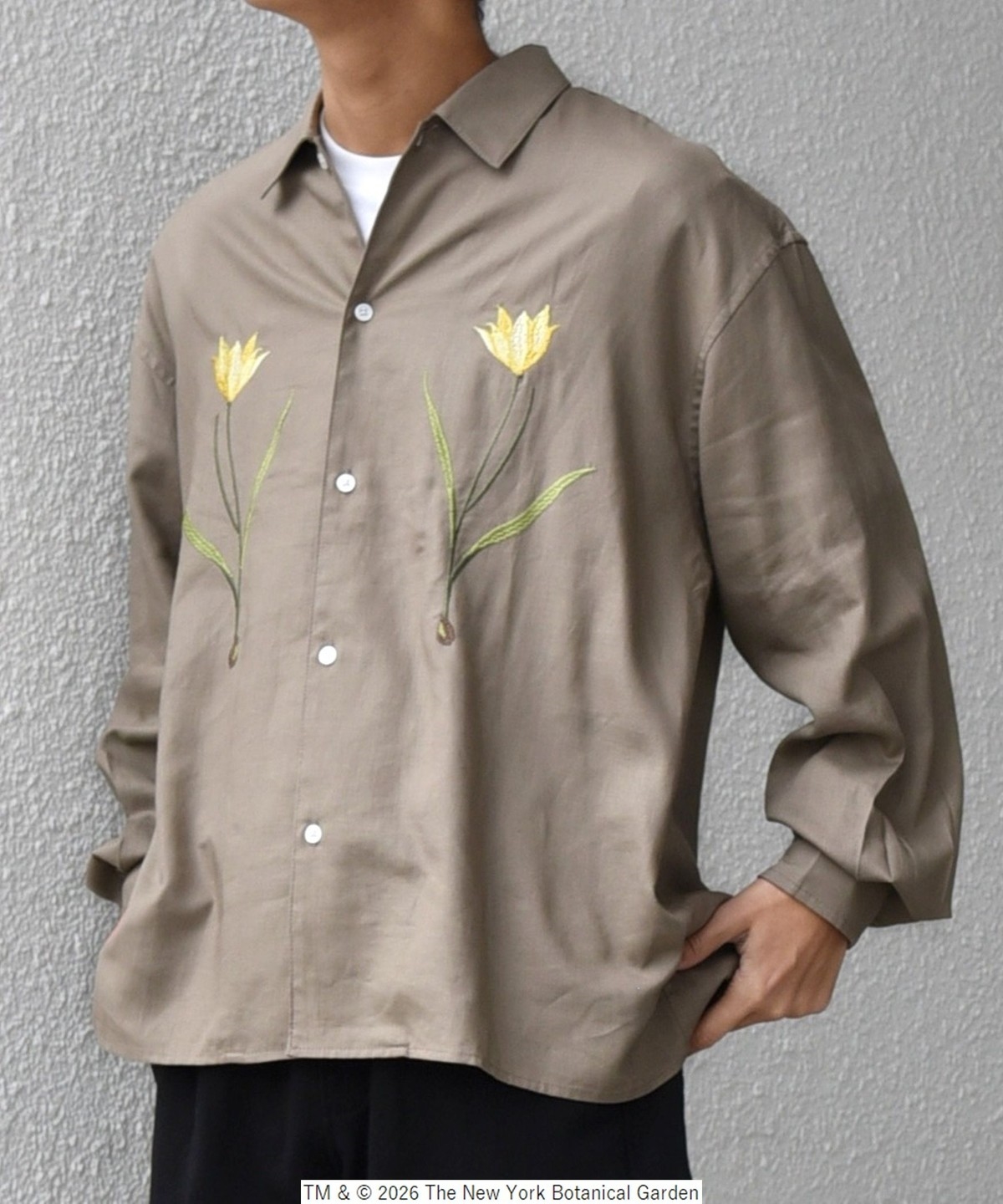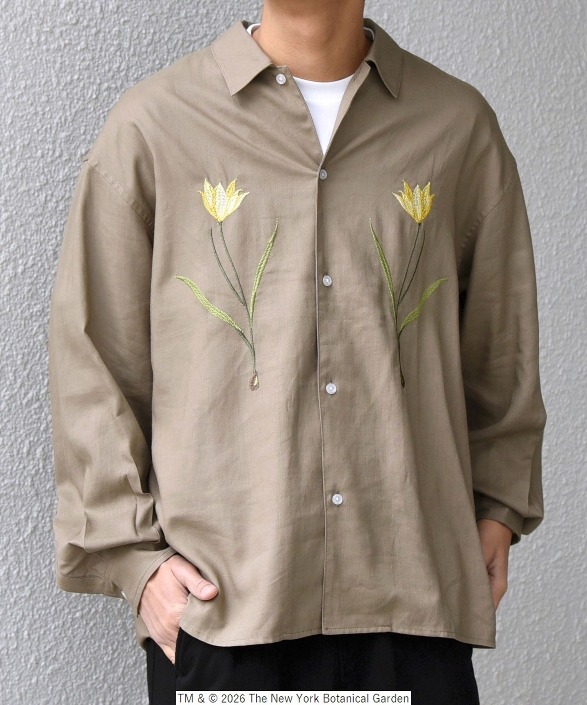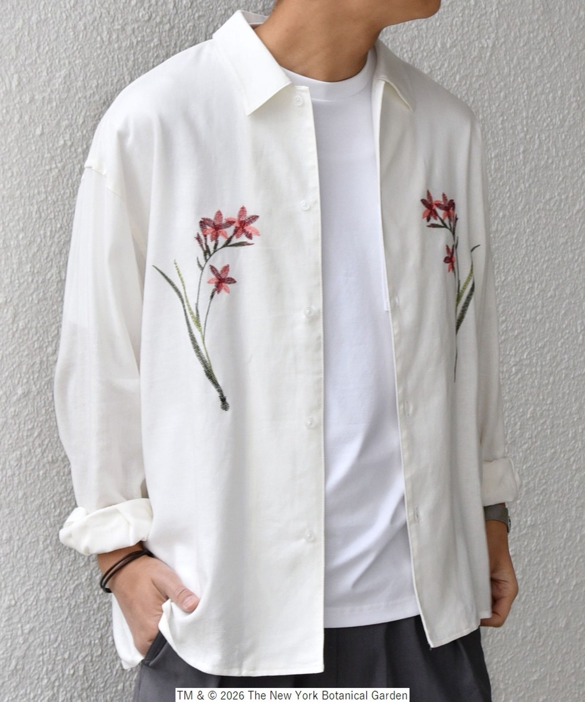 NYBG(The New York Botanical Garden)に別注した、フラワーモチーフの刺繍がポイントのシャツ
