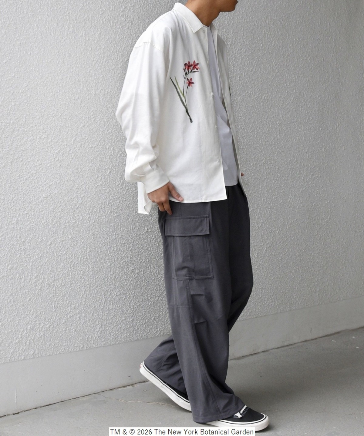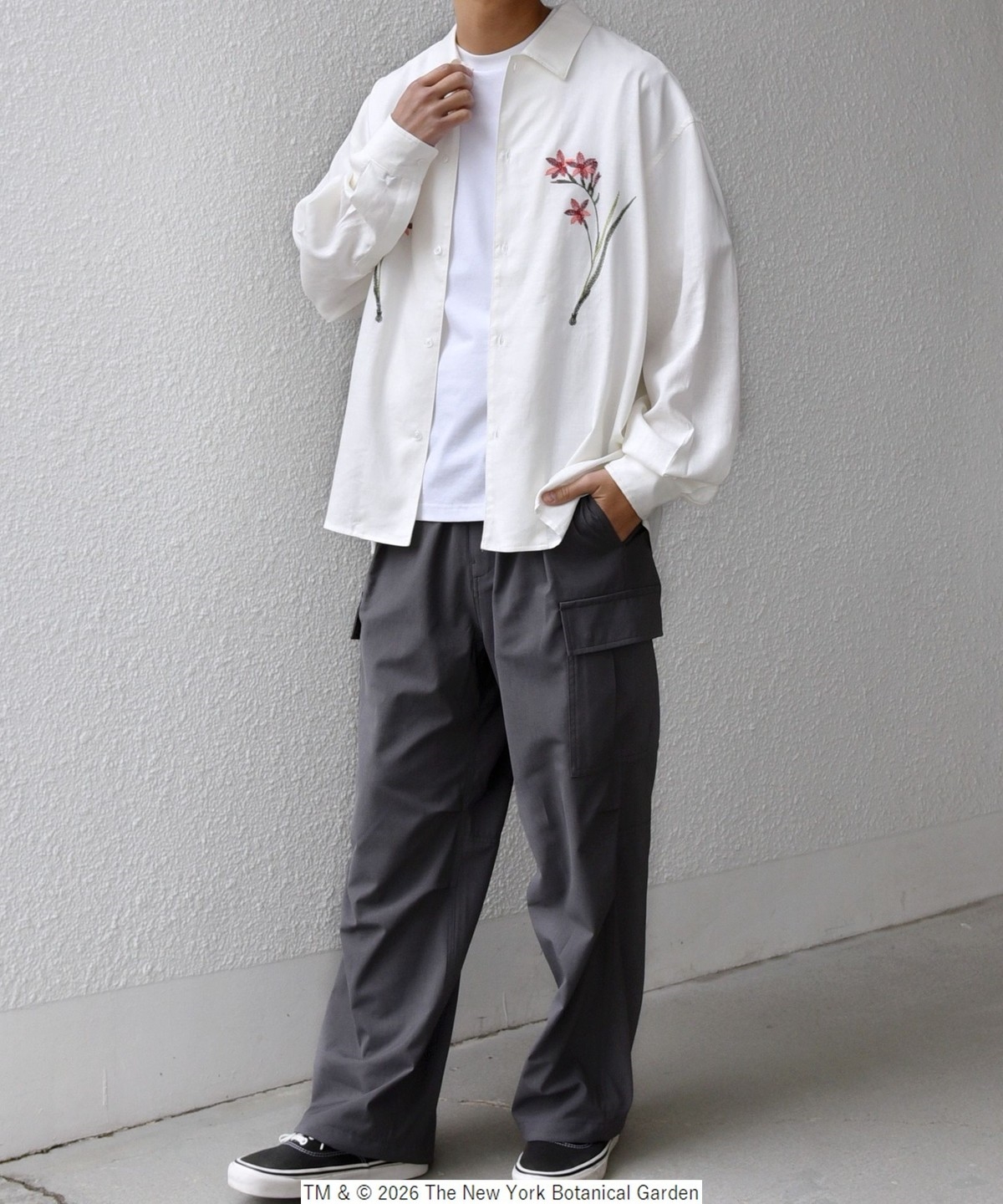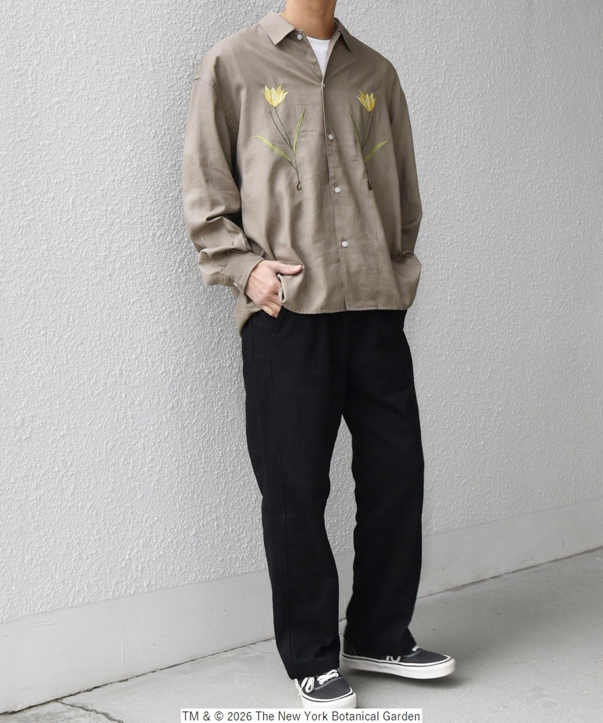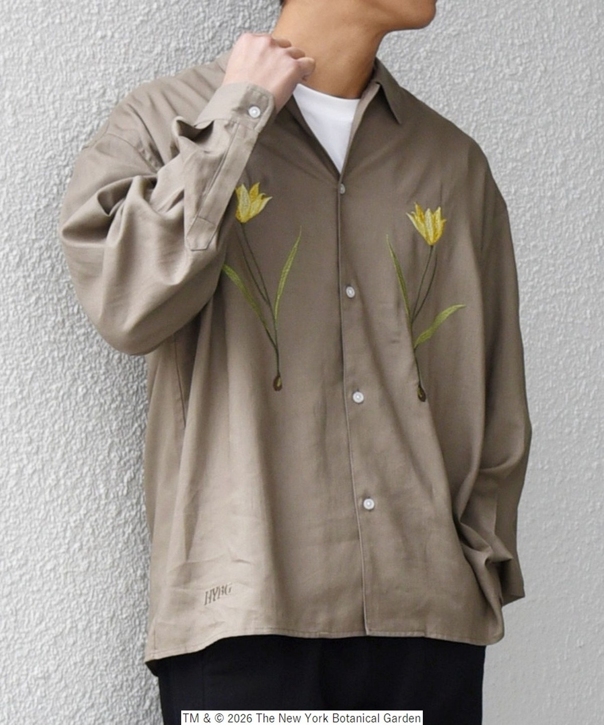 NYBG(The New York Botanical Garden)に別注した、フラワーモチーフの刺繍がポイントのシャツ